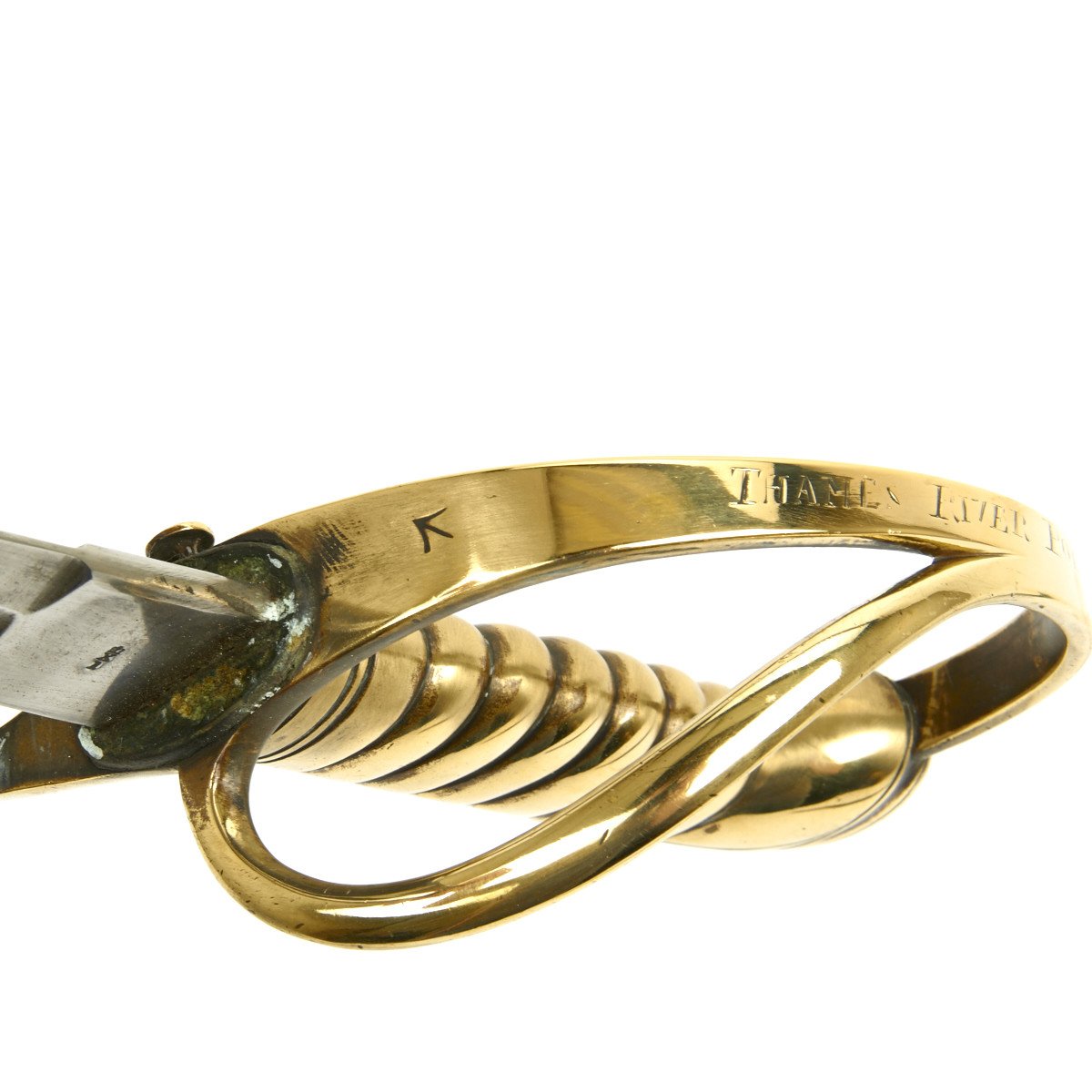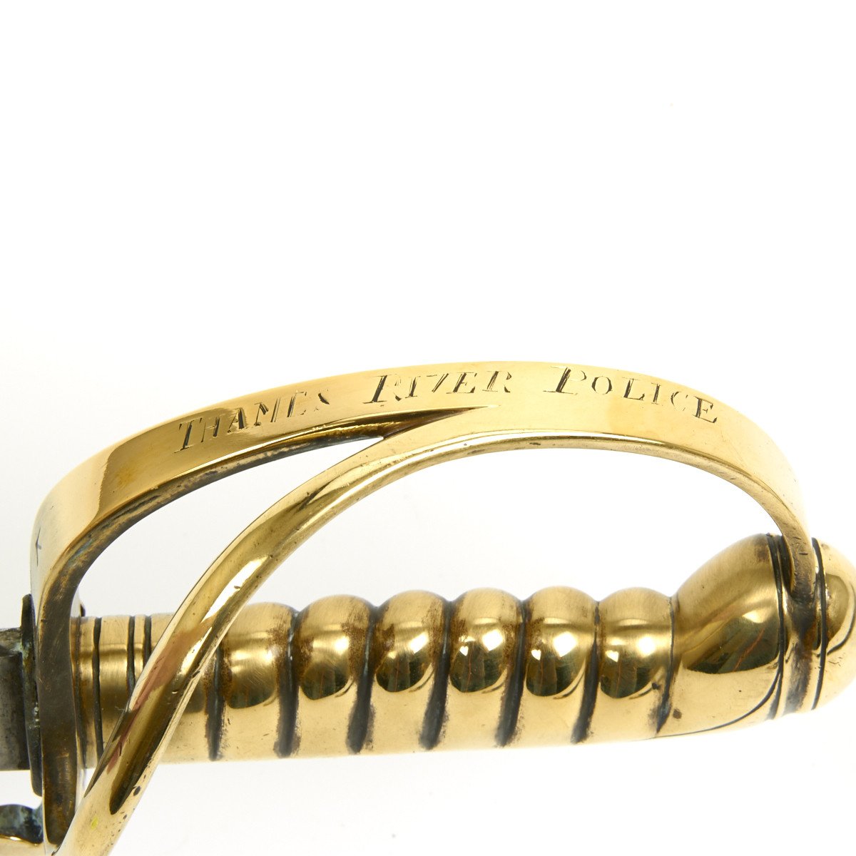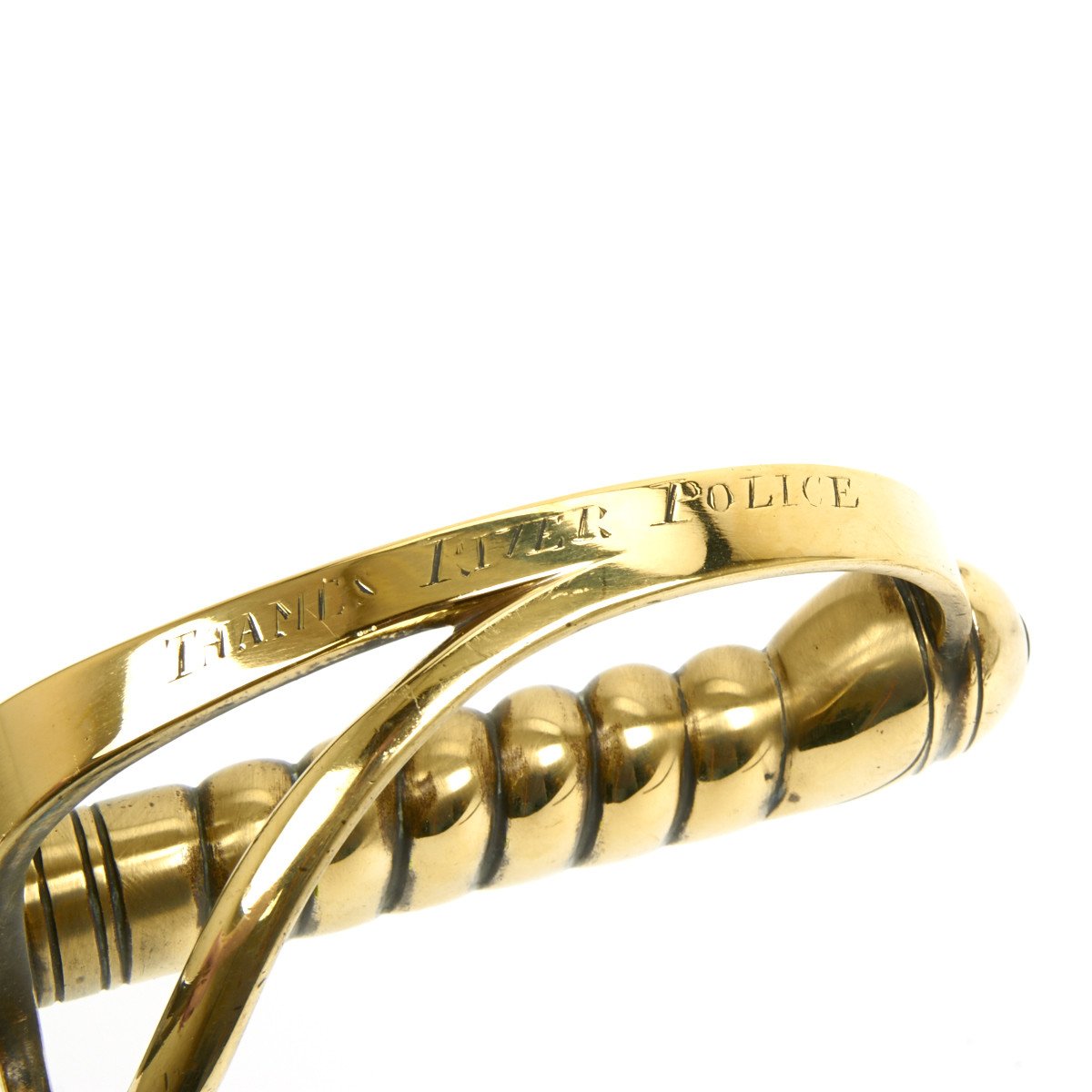 Original Item: Only One Available. This is magnificent and has just arrived from a police collection in England. This is the regulation sidearm carried by the river police at the close of the Victorian era (1837-1901). Full brass hilt with two bar guard and integral bass grip engraved on the bow THAMES RIVER POLICE.