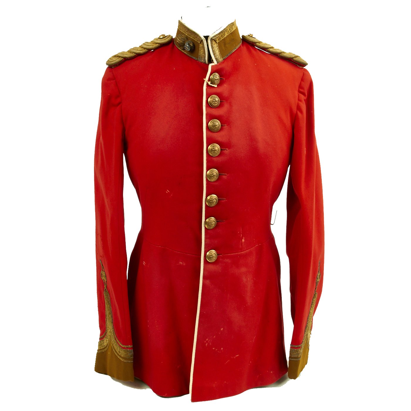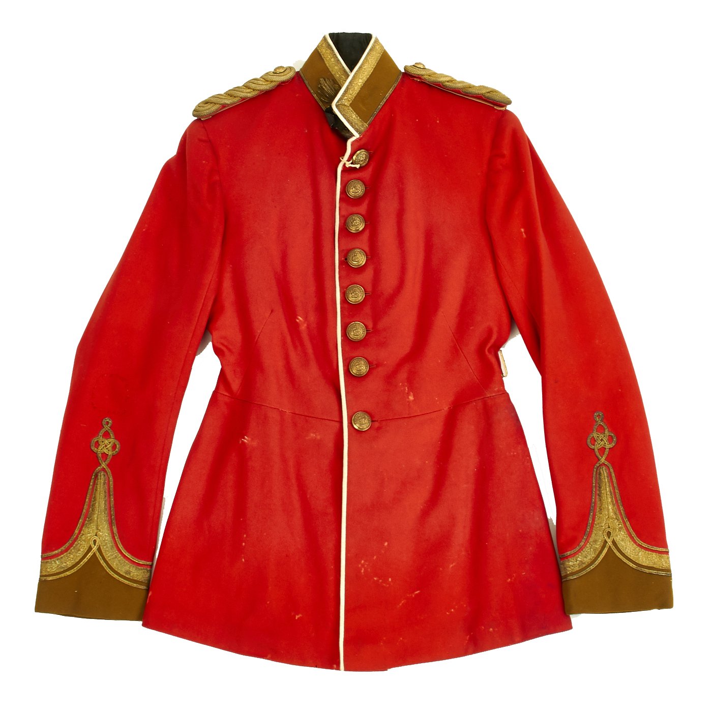 Original Item: Only One Available. Dating between 1881-1902 this fine tunic is in very good condition and features original gilt Northumberland Fusiliers buttons. Front of tunic has 8 buttons, epaulets are gilt braid. Wonderfully detailed Lieutenant cuff braiding. Interior lined and shows wear.