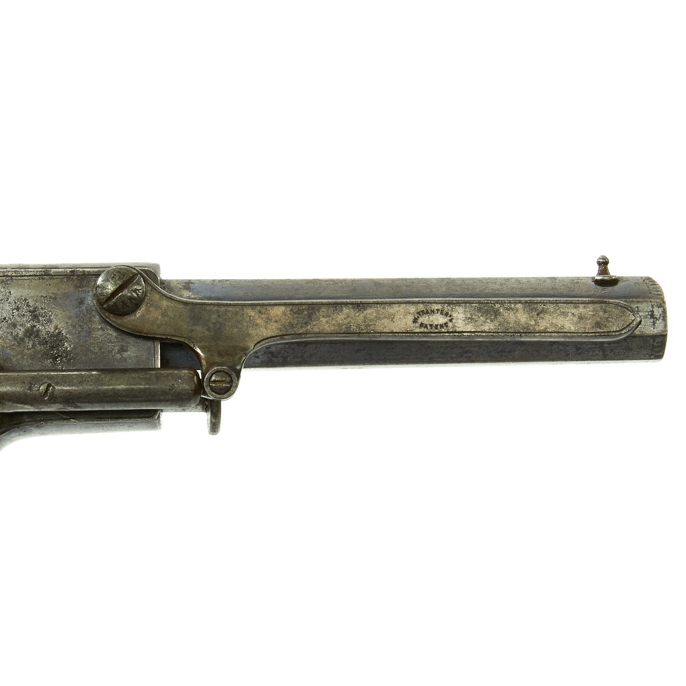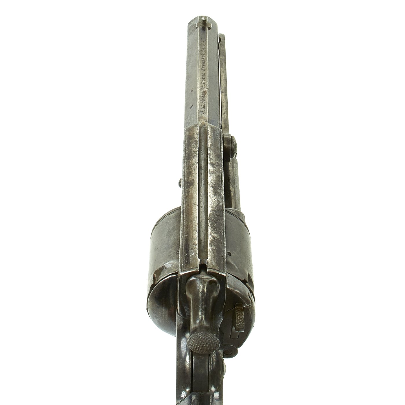 William Tranter was a major Birmingham gun maker who made many private purchase weapons at his factory until his retirement in 1885. The patent marking is also present on other parts of the revolver. The basic design of his revolvers was originally developed for cap and ball percussion, but was easily adapted for later Rimfire and Centerfire cartrdges.
