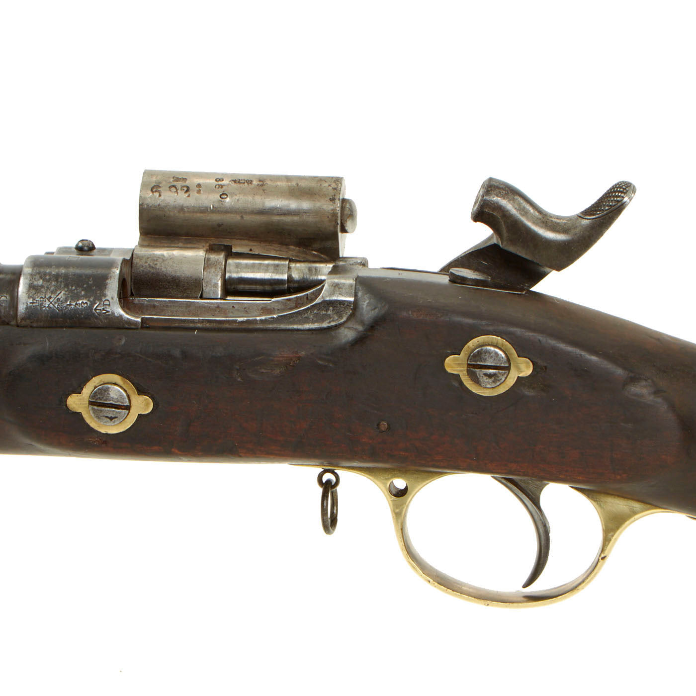 Original item: Only one Available. We just received this very nice example from the estate of a longtime customer. This is a very nice late production Two Band Snider Short rifle. The barrel measures 26 1/2" overall and was made smoothbore especially for prison service. The fixed back sight is the tell tale giveaway of this having been a prison service weapon, which was used more as a shotgun than a rifle.