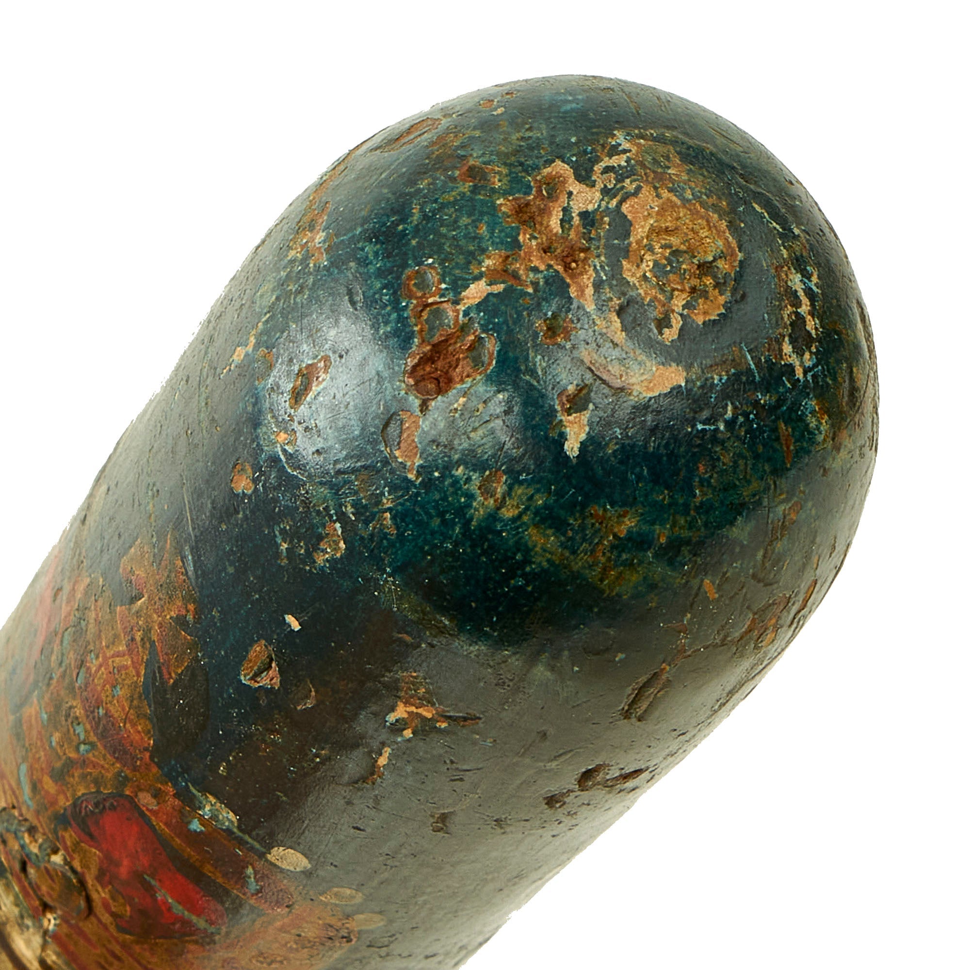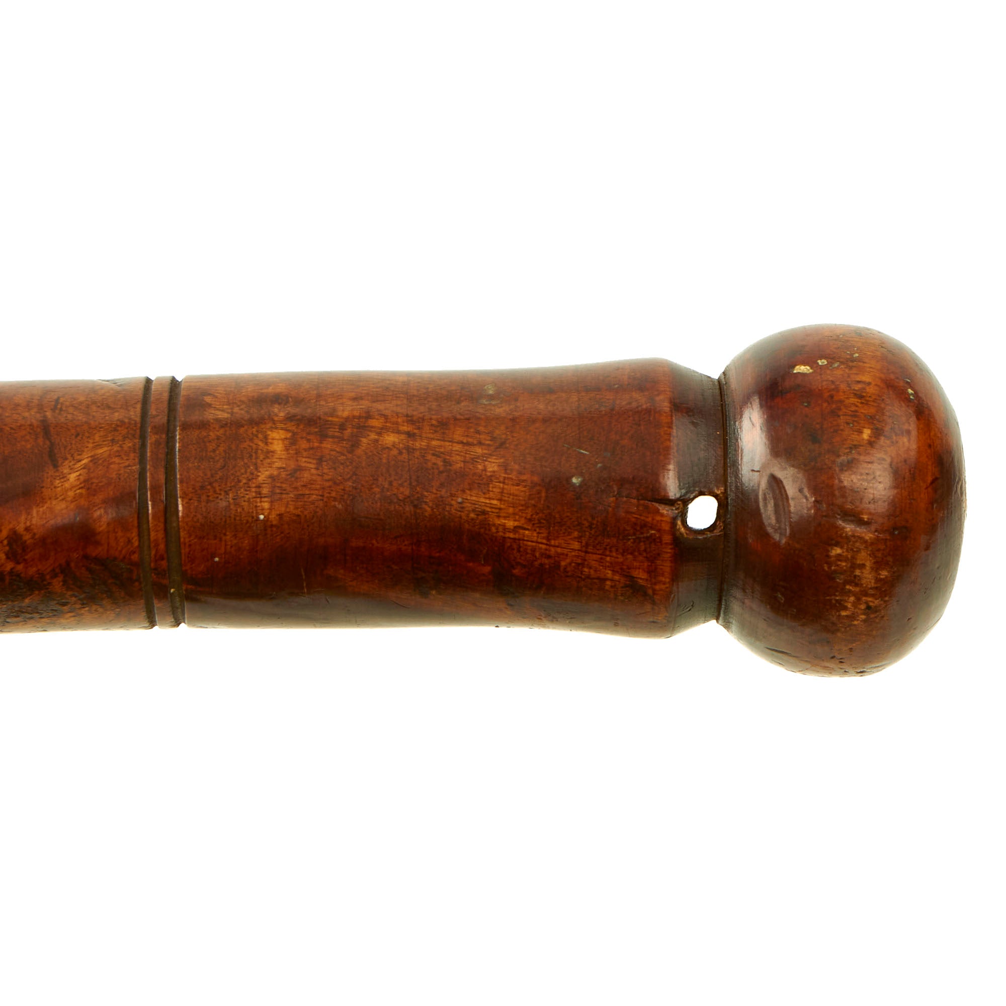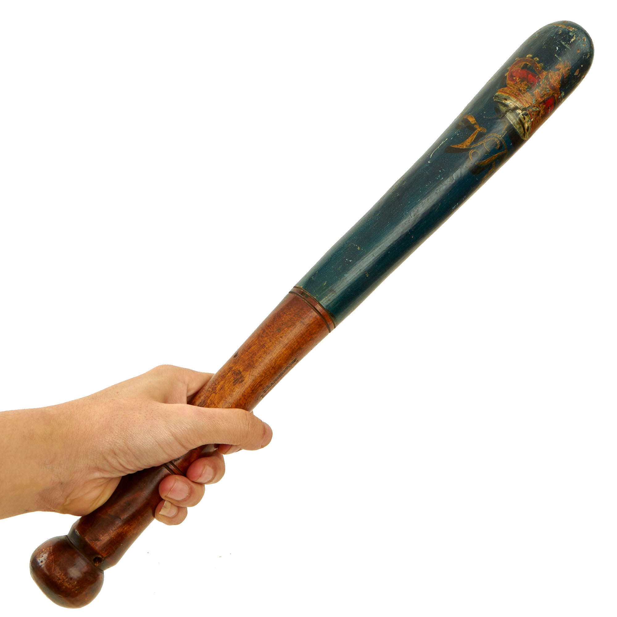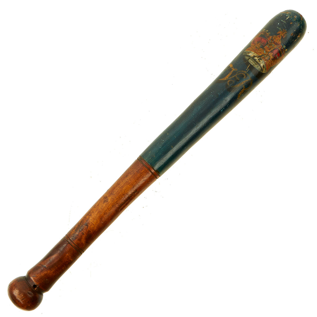 Original Item: One Only. In lovely matured condition this measures 16 ¾ inches in overall length and dates to the 1860s/1870s Victorian England. Painted truncheons are rare, as after 1900 the decorative painting was abandoned, however the Bobby on the beat in England even today carries a wood truncheon in a specially designed inside pocket in his uniform trousers.