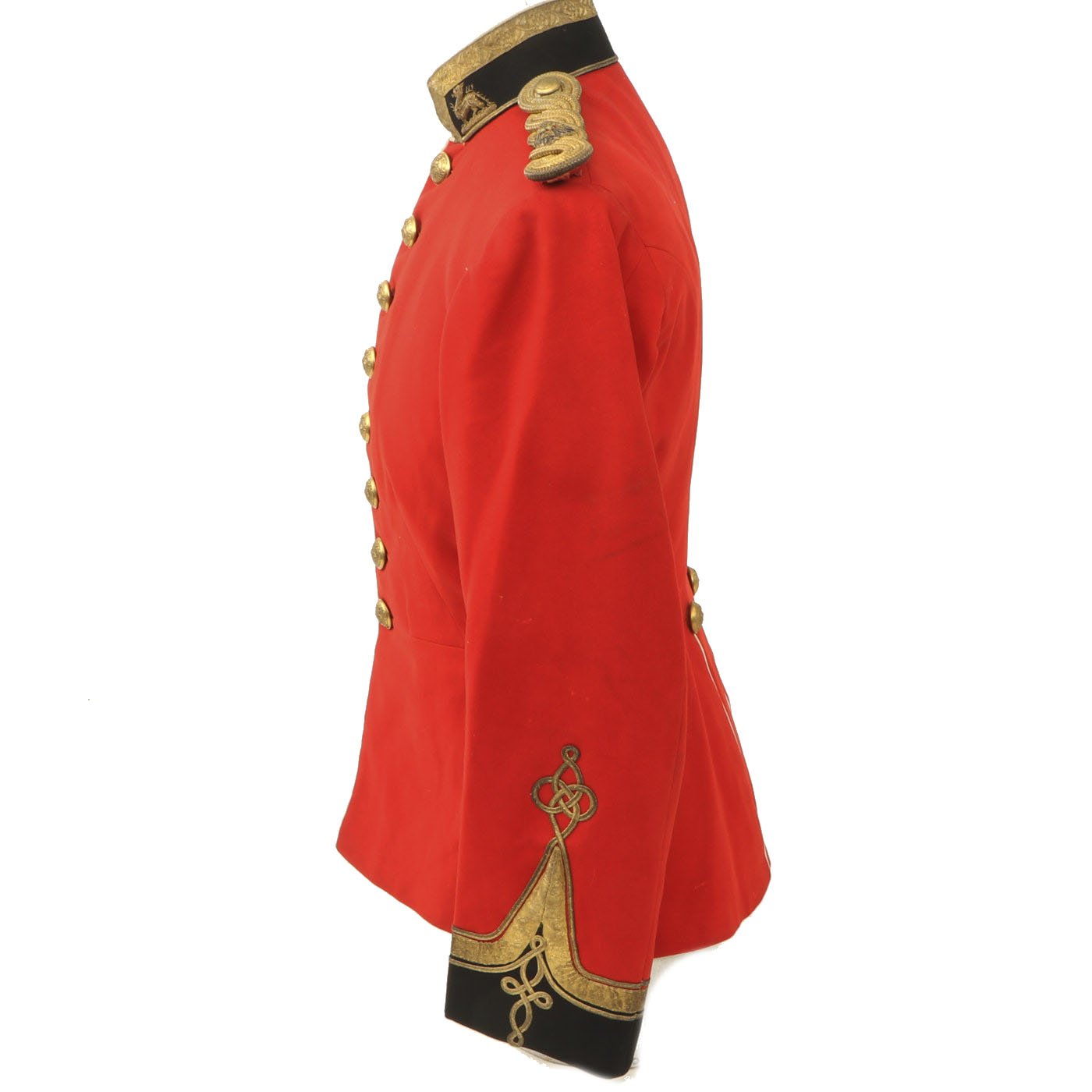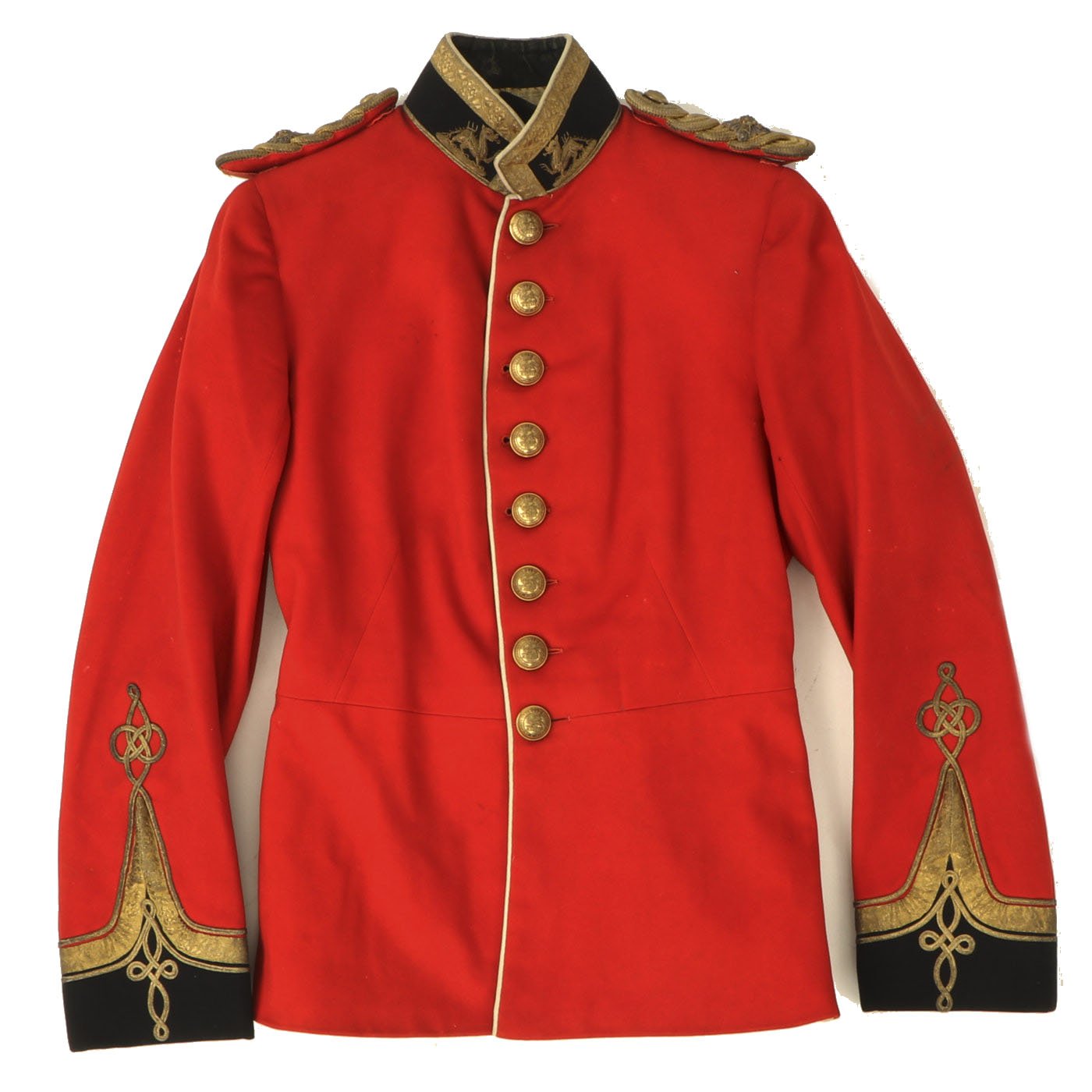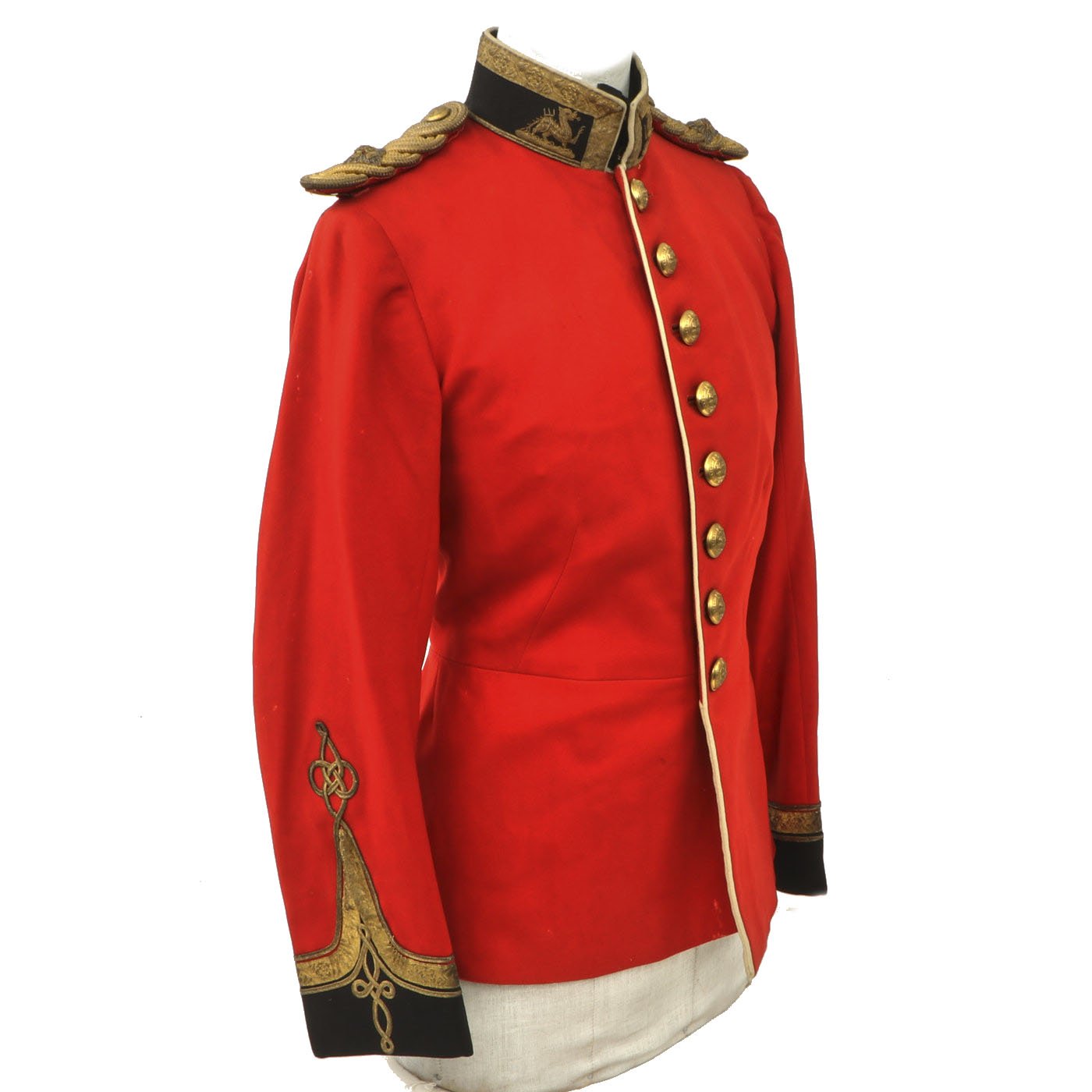 Original Item: Only One Available. Dating before 1902 this fine tunic is in very good condition and features original gilt bullion embroidered Royal Berkshire Regiment (Princess Charlotte of Wale's) Dragons on the collar. The 8 front HAWKES & Co. buttons all show Queen's Crown dating this tunic before 1902 during the reign of Queen Victoria. We suspect it dates between 1890-1901. Epaulets are gilt braided with one pip indicating rank of Lieutenant. Wonderfully detailed Lieutenant cuff braiding. Interior lined and has worn tailor's label in the neck from Piccadilly, London.