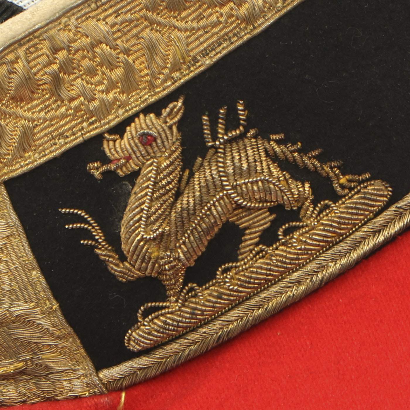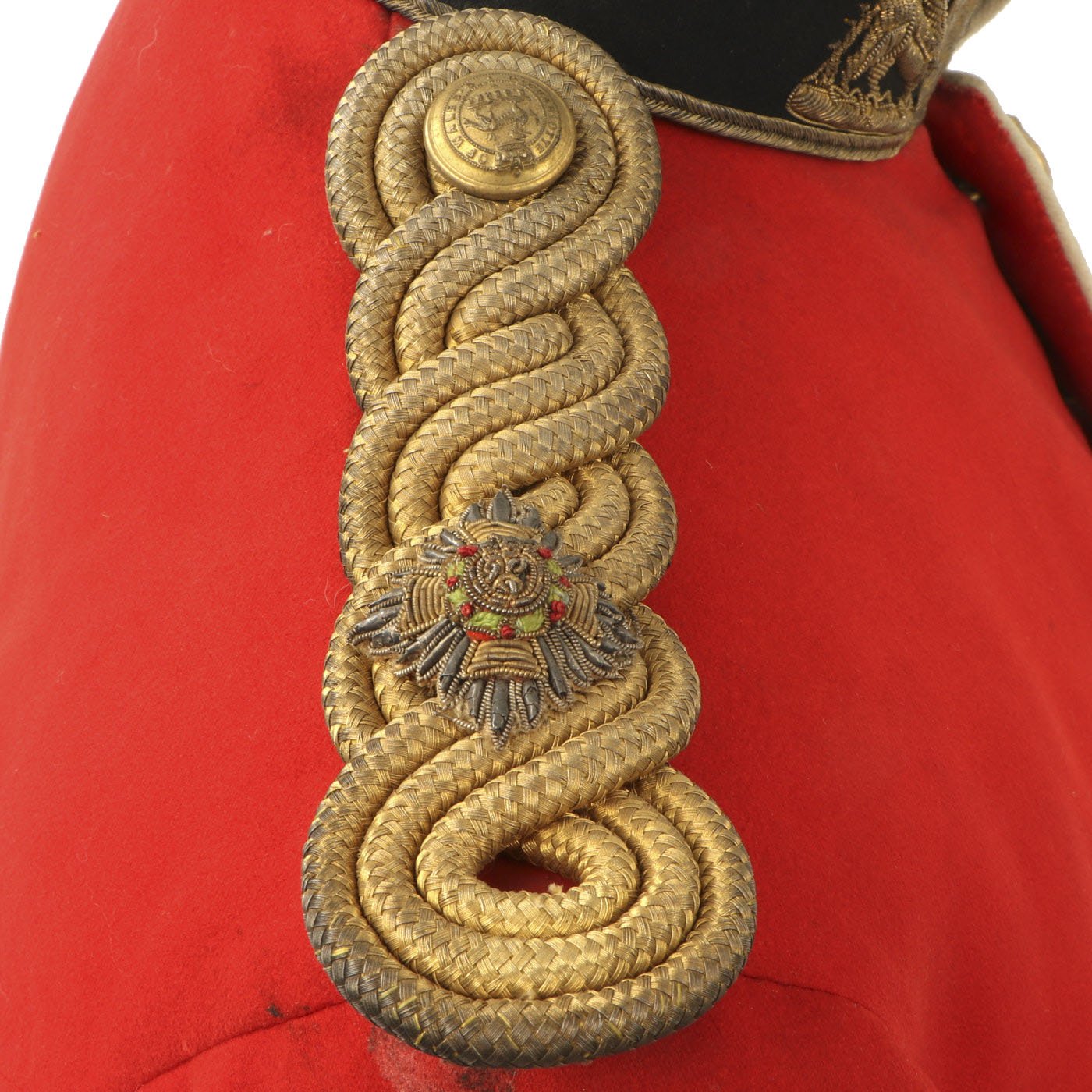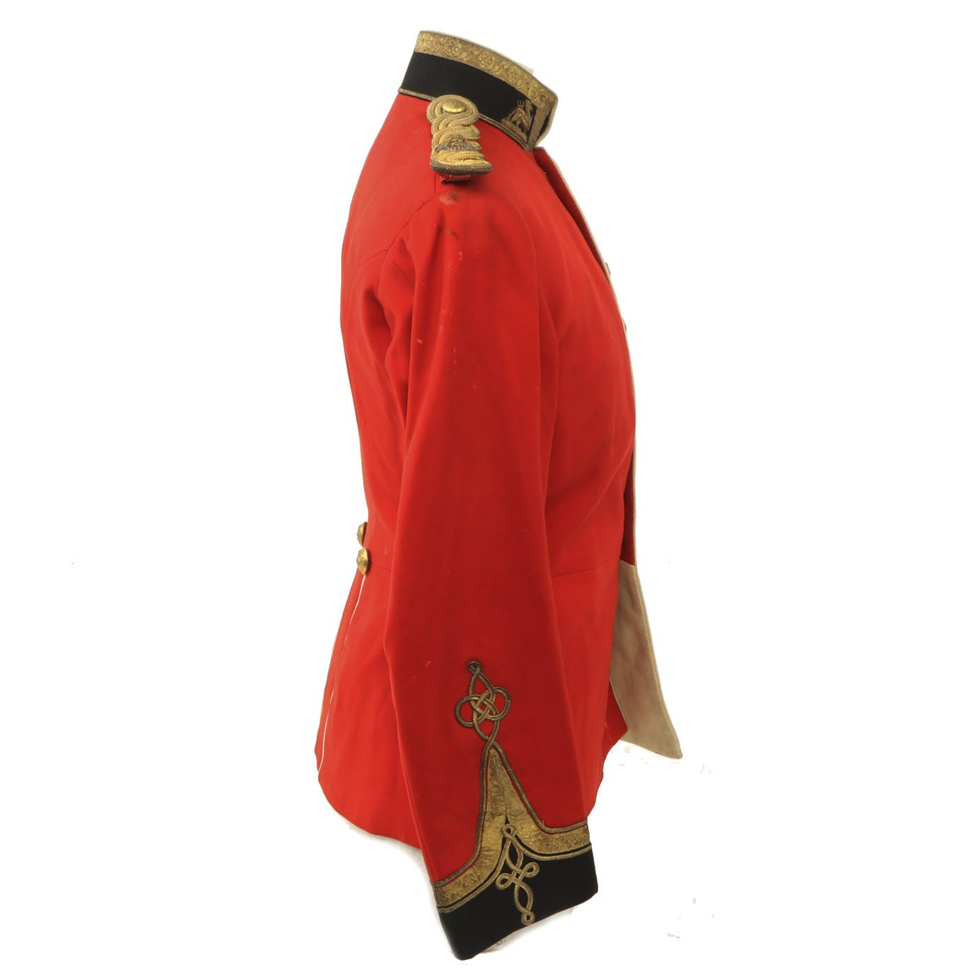 Original Item: Only One Available. Dating before 1902 this fine tunic is in very good condition and features original gilt bullion embroidered Royal Berkshire Regiment (Princess Charlotte of Wale's) Dragons on the collar. The 8 front HAWKES & Co. buttons all show Queen's Crown dating this tunic before 1902 during the reign of Queen Victoria. We suspect it dates between 1890-1901. Epaulets are gilt braided with one pip indicating rank of Lieutenant. Wonderfully detailed Lieutenant cuff braiding. Interior lined and has worn tailor's label in the neck from Piccadilly, London.