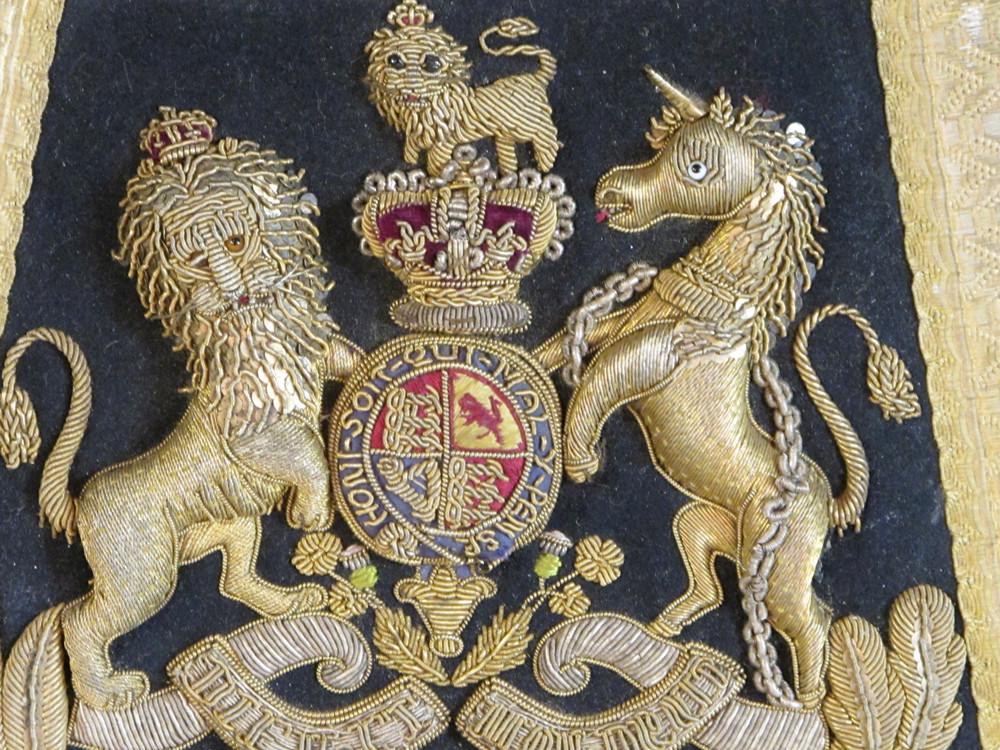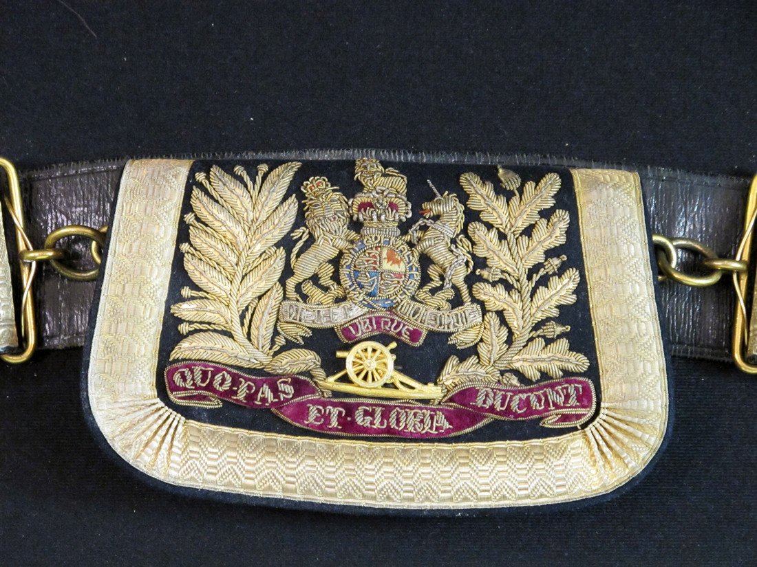 The second framed display includes his officer's embroidered waist belt, his embroidered cross belt with message pouch and his document SABRETACHE, meaning a large Officers Document Pouch that is suspended from his Sword Belt. All bearing the regimental coat of arms. No expense was spared with the gold and silver wire embroidery work for Victorian Officers. In addition included is a magnificent 15" x 12" framed photographic portrait hand colored again showing Lieutenant McLaughlin in full uniform holding his busby and sword with sword knot. On the rear of the frame there is the Victorian trade label of "J.HAWKE, Photographer, 8 George Street, Plymouth."