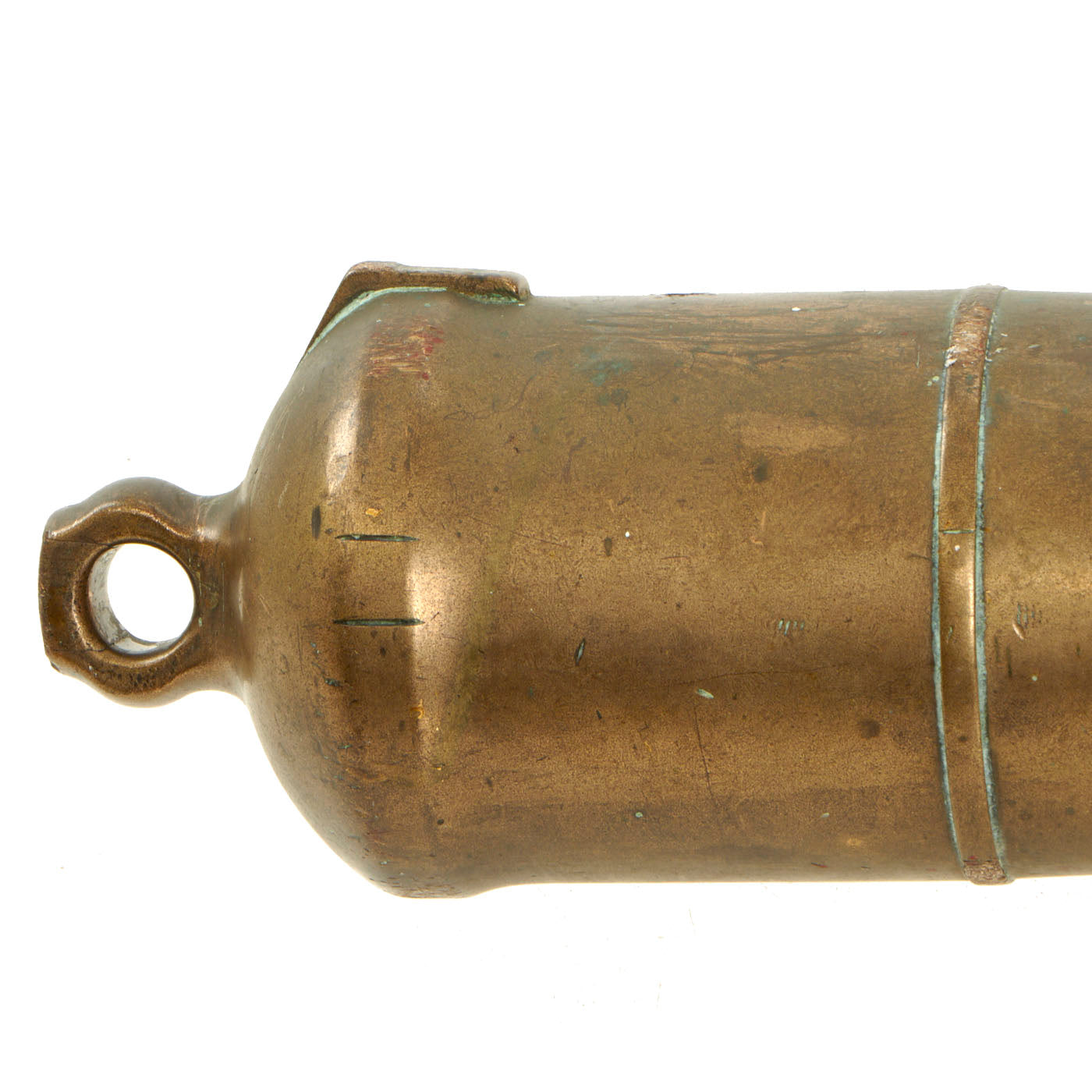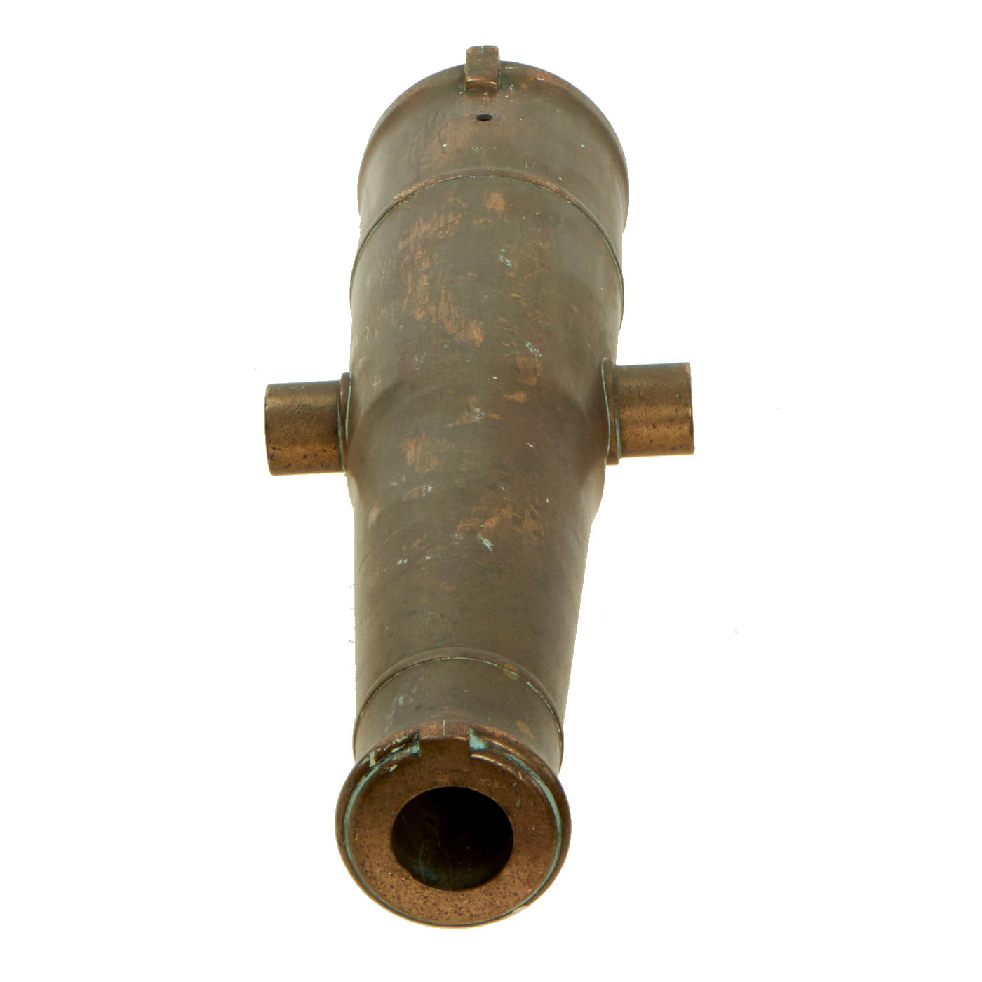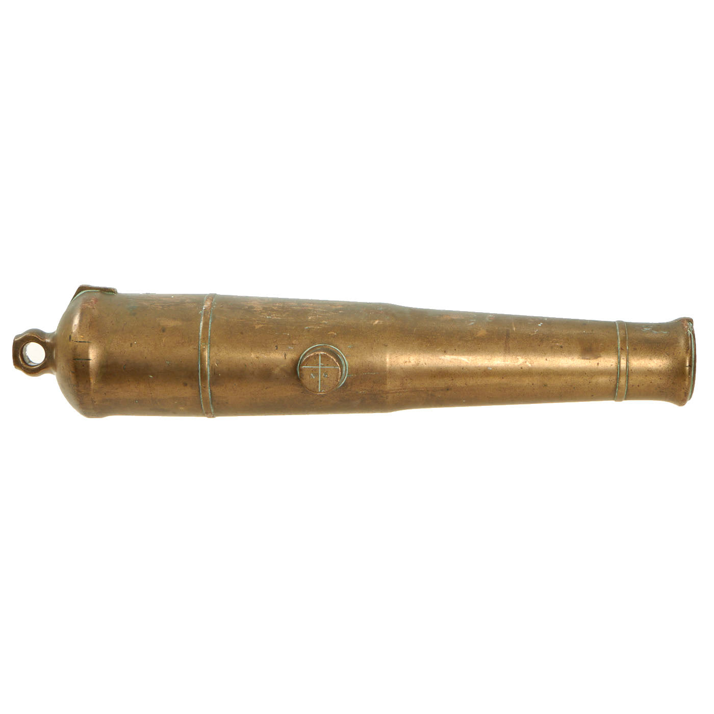 Original Item: One of a Kind. This is a very nice Victorian Era British Royal Navy bronze swivel cannon barrel, dated 1863 by the touch hole. The 20 1/2 inch long barrel features a 1 5 1/6" smooth bore and measures 5 1/2" across trunnions. These cannons were usually used on iron swivel mounts, often mounted to a ship's rail. Really nice and surprisingly heavy. Aside from the date, there is a British Broad Arrow inspection stamp above the touch hole. It is also marked R. G. F. on the end of the left trunnion, with No. 9 on the other. There also is a cross mark on the right trunnion, to help aim it.