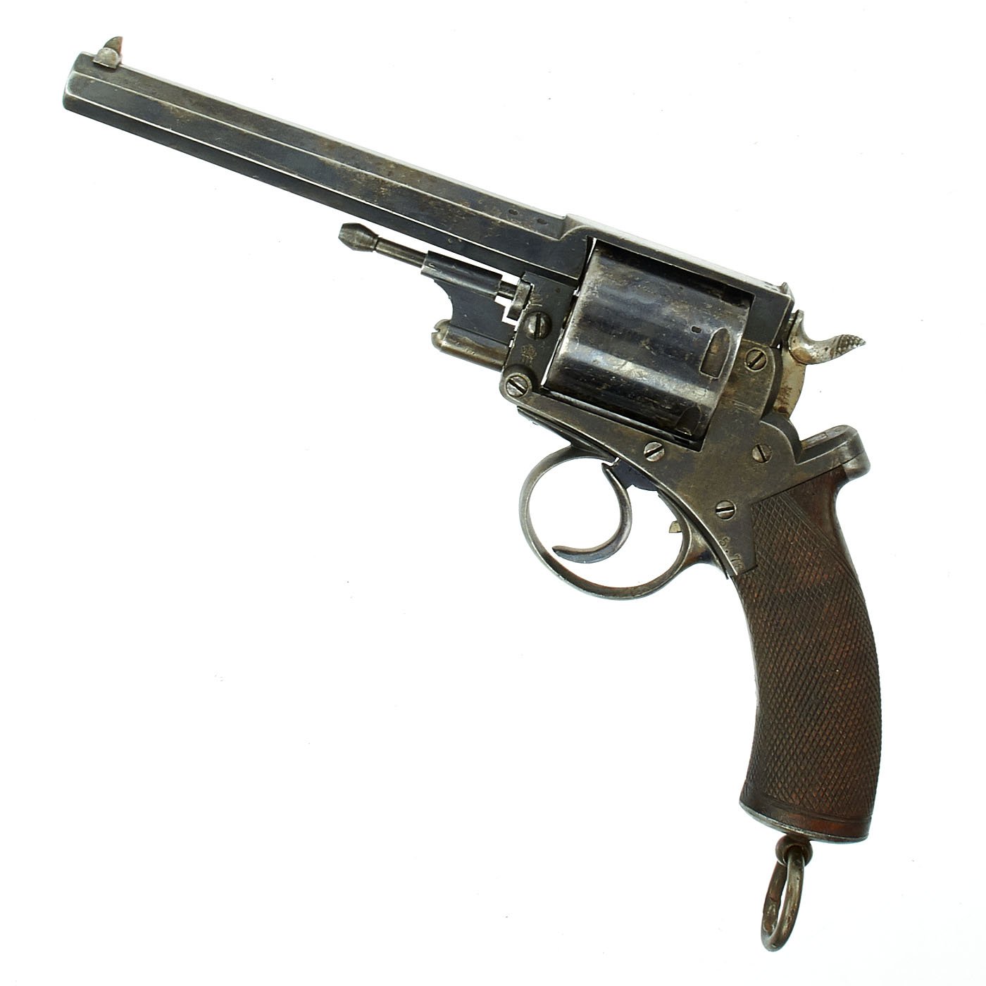 In February of 1872, the Mk.II was introduced, and it was not a conversion from previous designs, but one purpose made as a breech loader, with a two piece frame. It still had the same fixed side-mounted ejector, which was replaced with a patented swivel ejector on the Mk.III version, adopted afterwards in August 1872. The very brief List of Changes entry for this pattern simply states: "It differs from the previous pattern, Mark II (L.o.C. 2227) in having a more efficient extractor." This model was the most widely produced, however to find them in this nice condition is extremely rare.