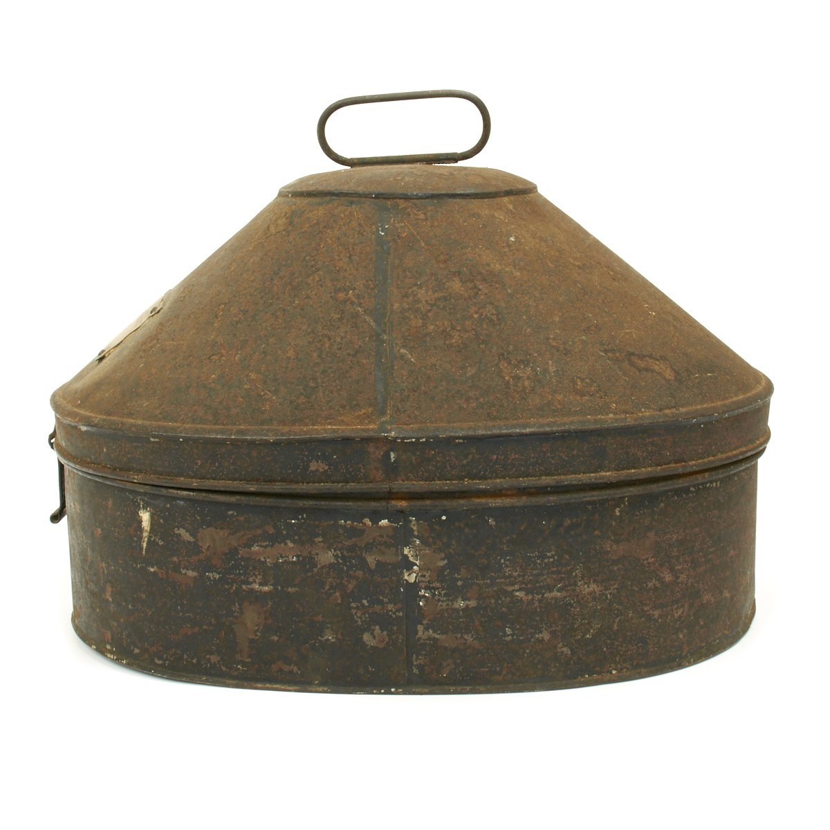 LONDON, W.The helmet bears a brass Royal Cypher Coat of Arms helmet plate, and comes complete with leather sweat band and green internal lining. It is kept in its original steel transit tin bearing an engraved brass plaque that reads: