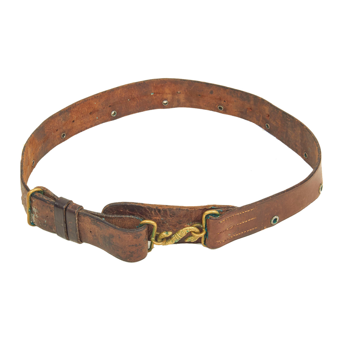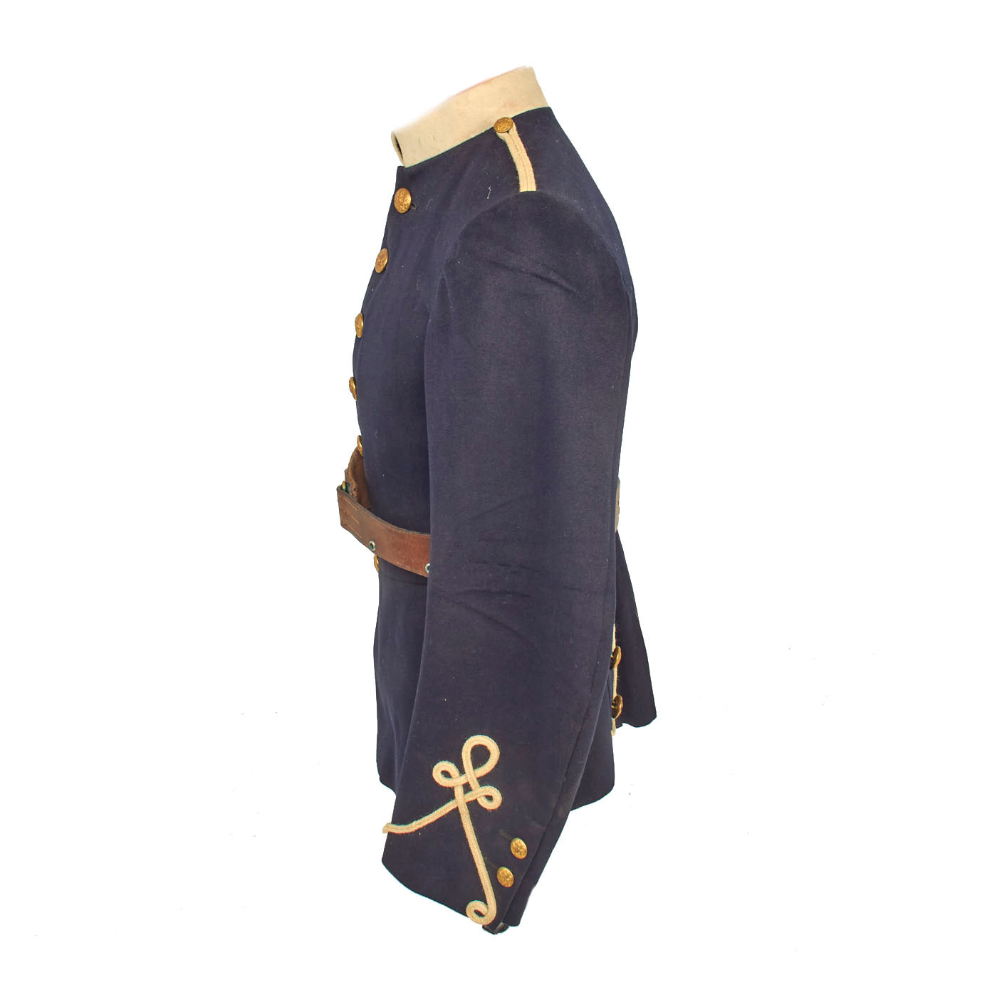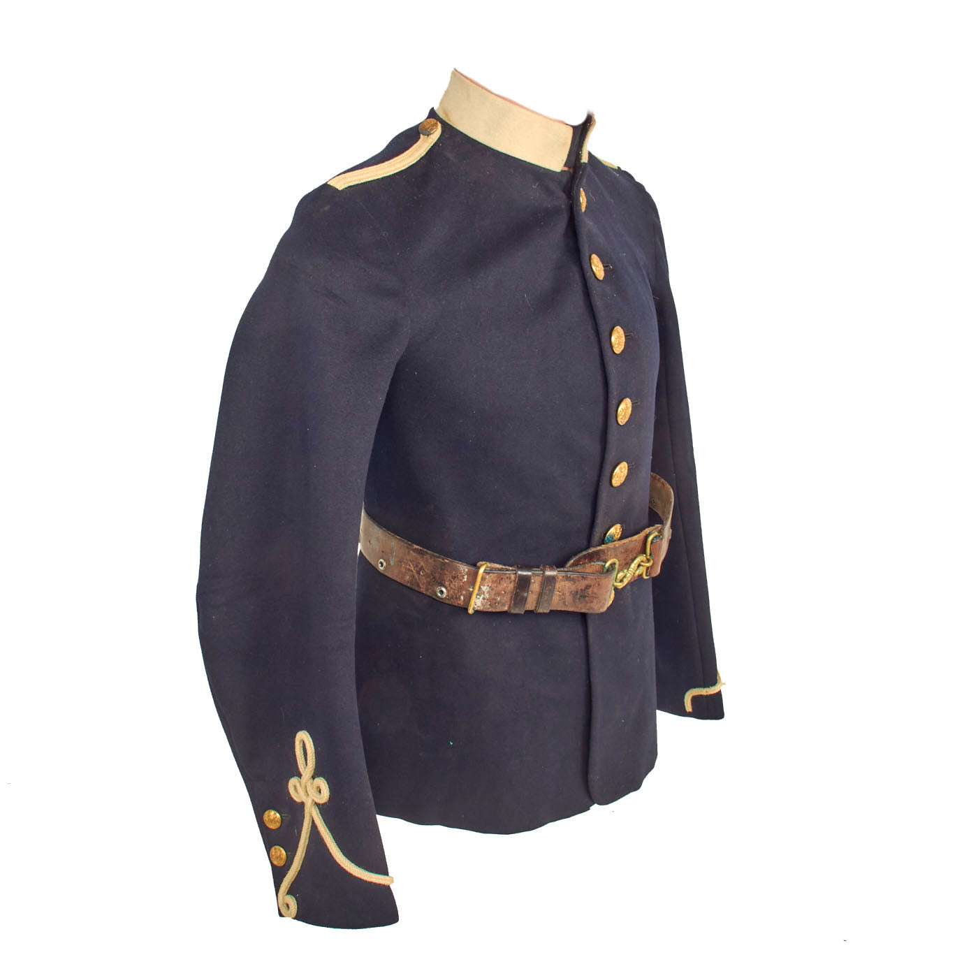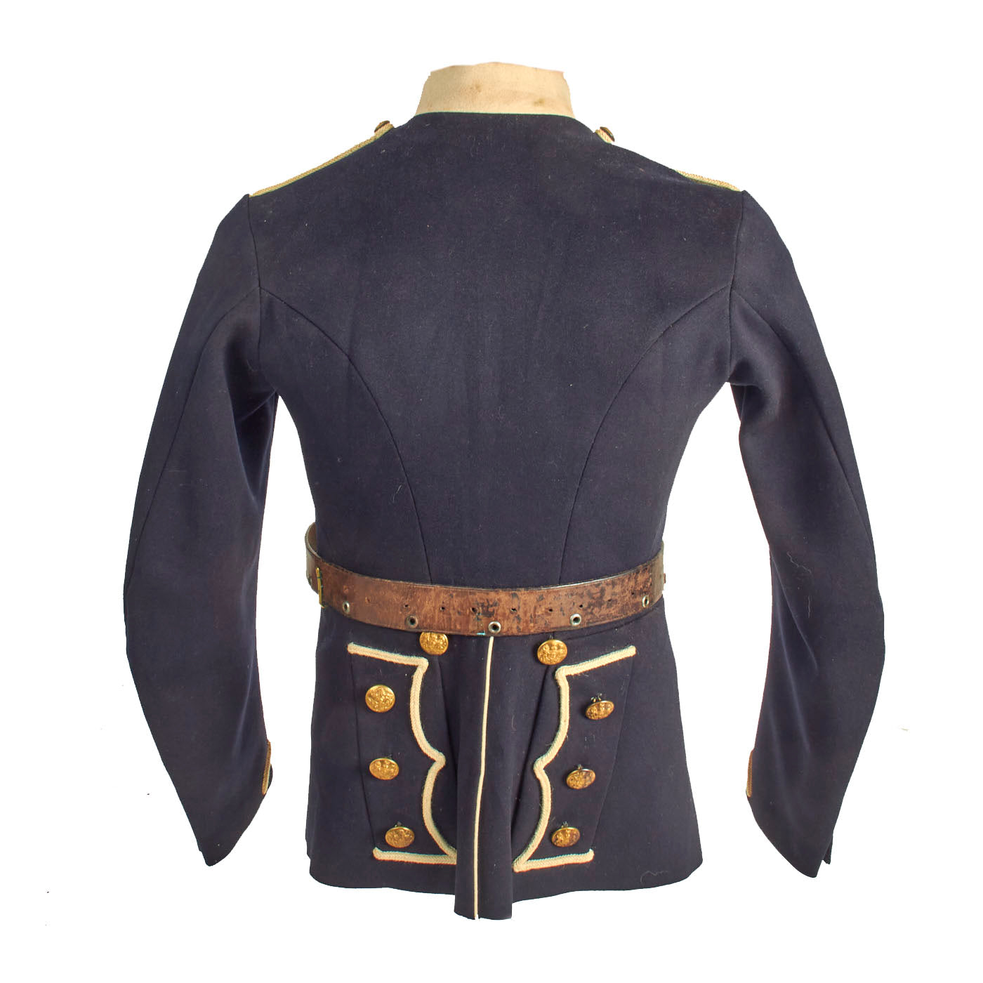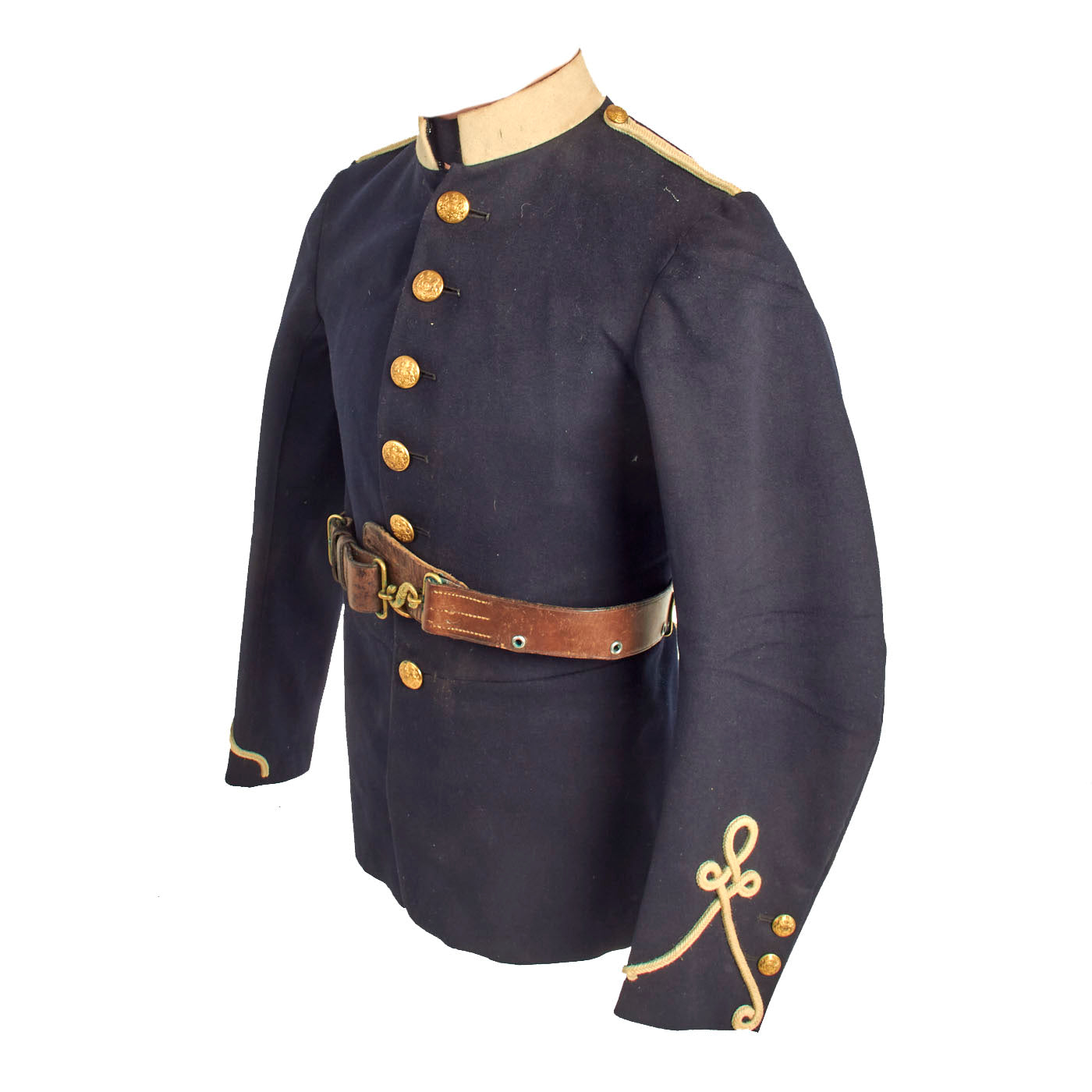 This uniform set is in wonderful condition and even retains original paper tags on both the tunic and trousers which has a date of 1914 and size information. All buttons appear to be present on both items and the leather belt has the lovely snake S closure in the center.