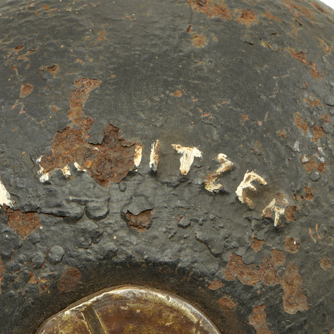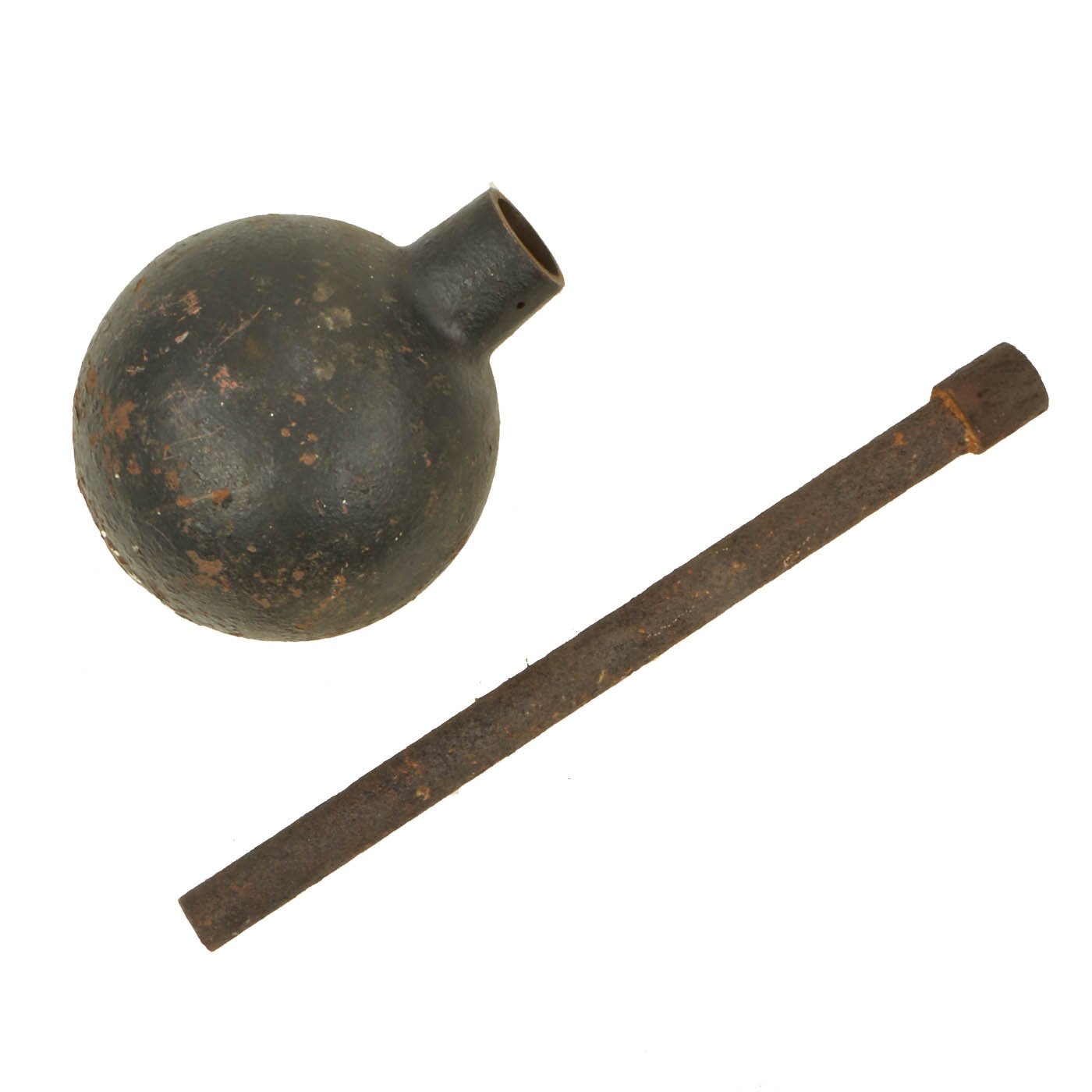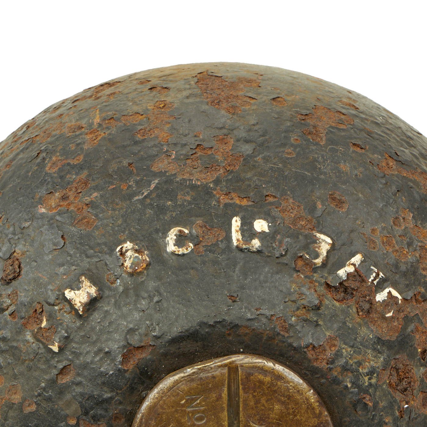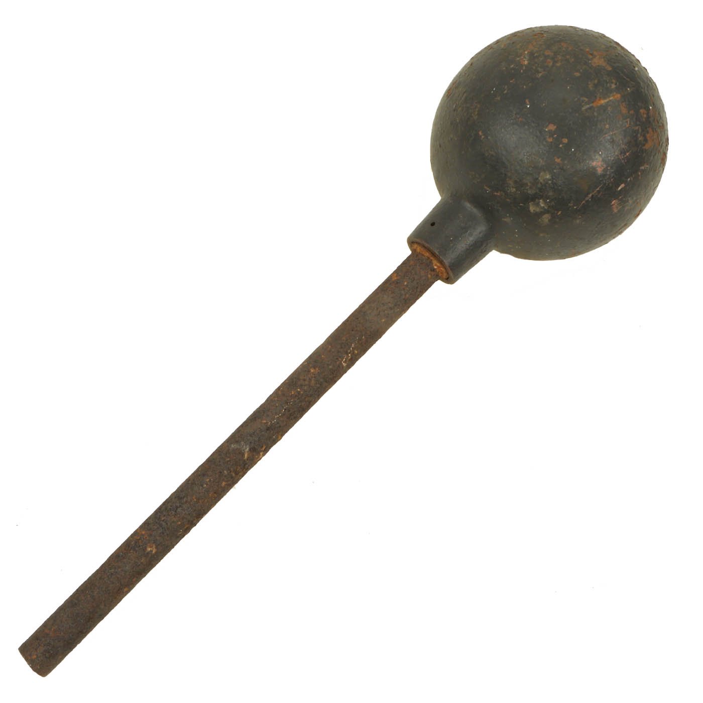 Original Item: This is an original WW1 2" Medium Trench Mortar, also known as the 2-inch Howitzer, and nicknamed the "Toffee Apple" or "Plum Pudding" mortar. This bomb has been deactivated and is totally inert. It is offered in good condition complete with brass fuse cap and cast lettering on the side. The markings are partly broken away, and the rest have been white painted, so they are somewhat legible, reading IN.? 2 TRENCH HOWITZER on one side, and what looks to be H.M. & Co ?? Ltd. on the other. The Ball is 9" in diameter, overall length 34 inches and weight of a whopping 40 pounds!