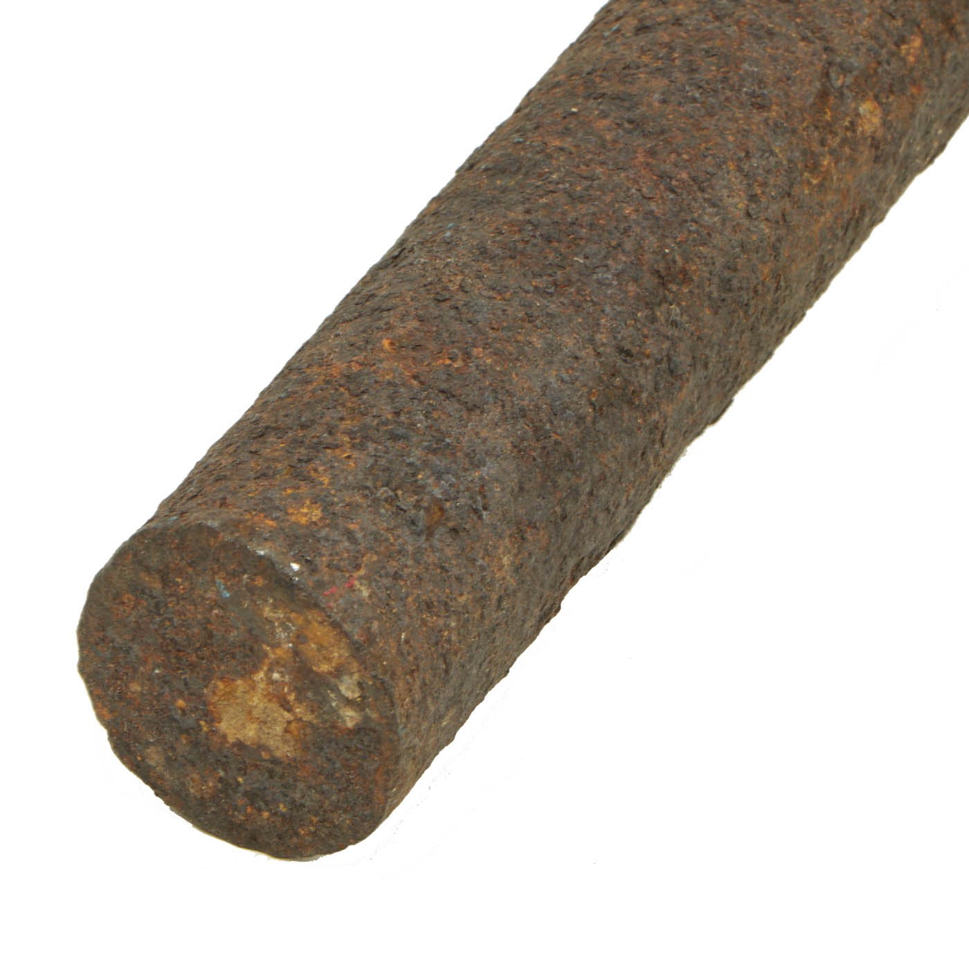 The mortar round has definitely experienced rust damage over the years, so the surface is a bit delicate. The warhead was painted black, but the "stick" has not. The cross pin that holds the stick in place has rusted out, so the stick can actually be removed if desired.