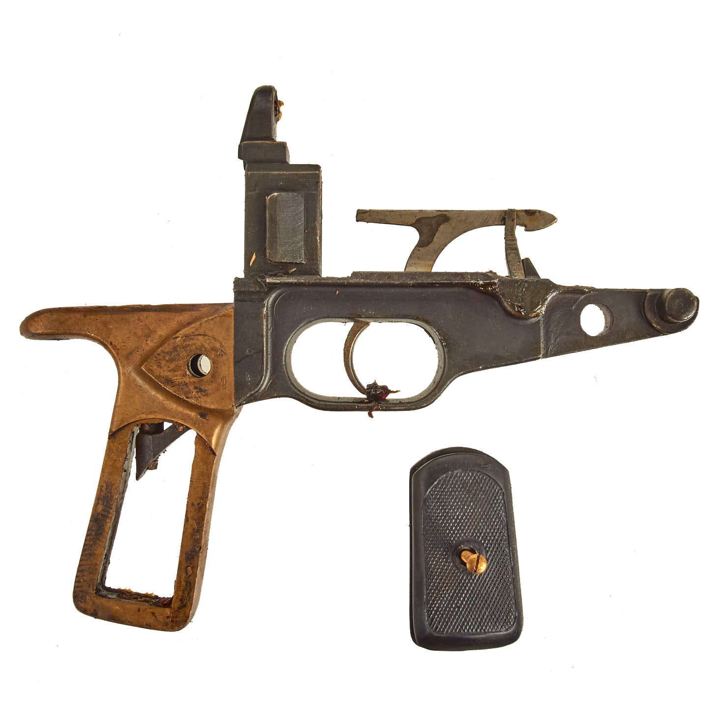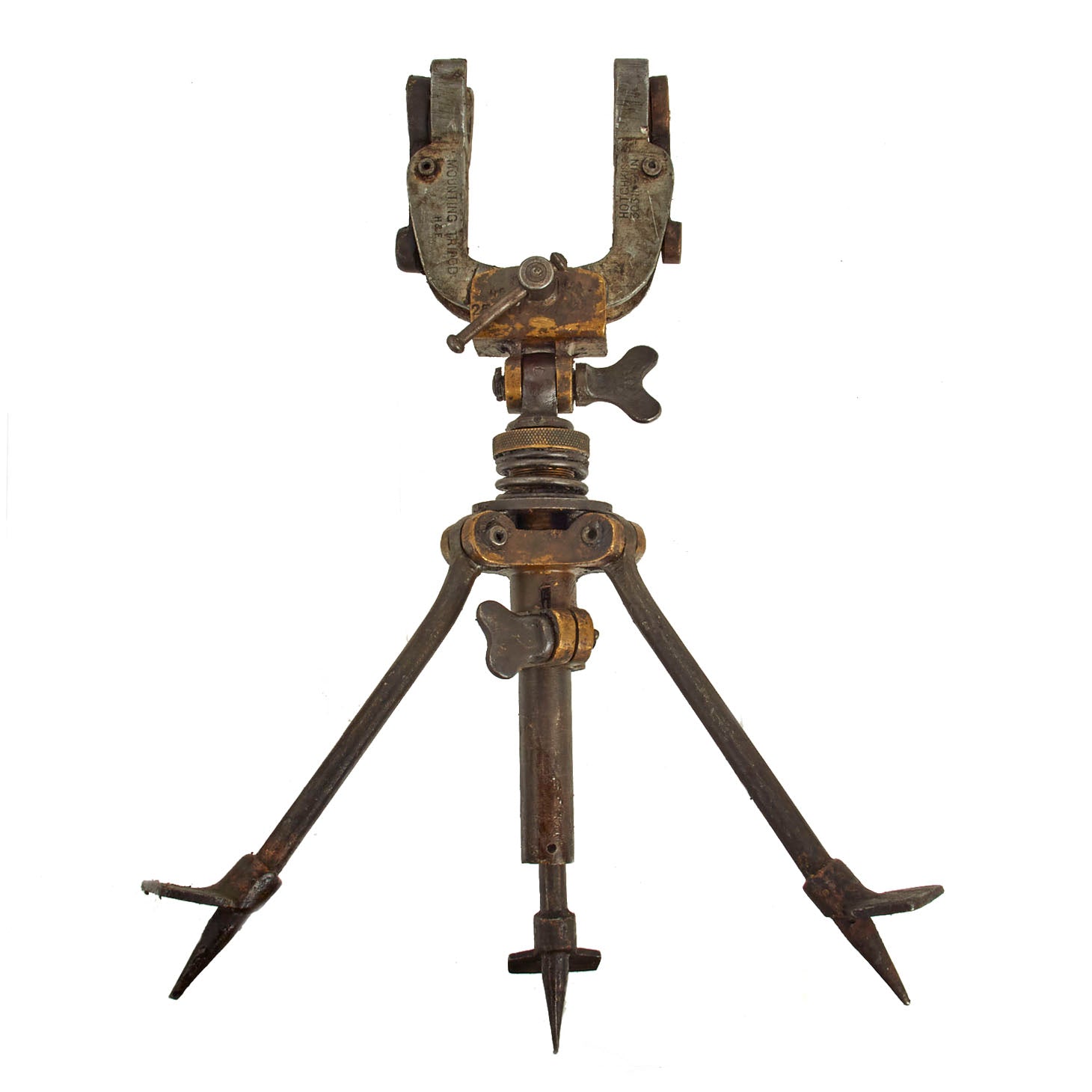Original Item: Dating from the WWI era these British Hotchkiss Pattern machine guns were designated as cavalry guns and became known as the Portative. Issued for field use on a small crow's foot tripod these were also installed in WWI tanks. In .303 cal. they were fed using metal feed strips. Each set comes with its tripod and detachable shoulder stock. All parts included (except receiver). An extremely RARE and unusual WWI machine gun parts set offered in very good condition.