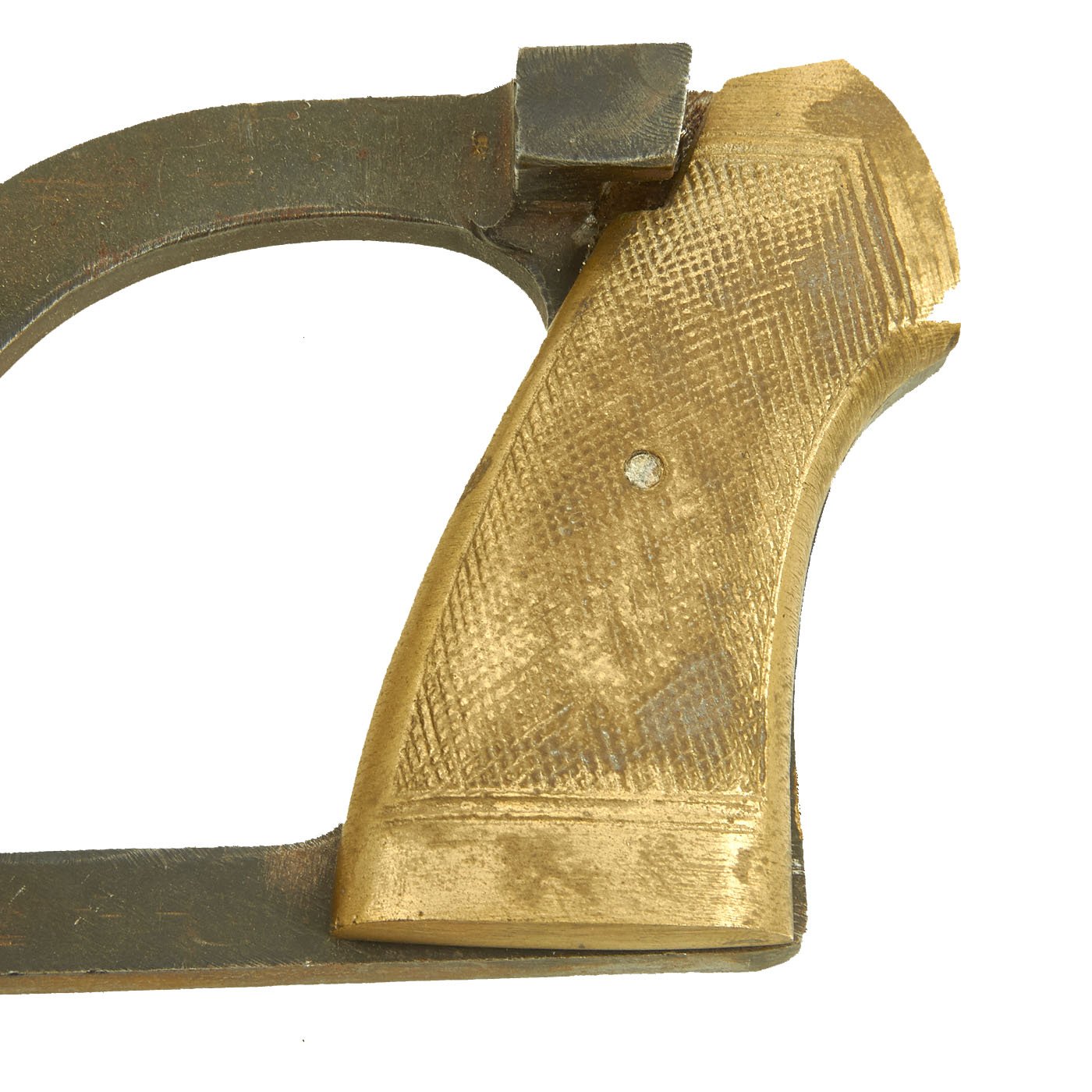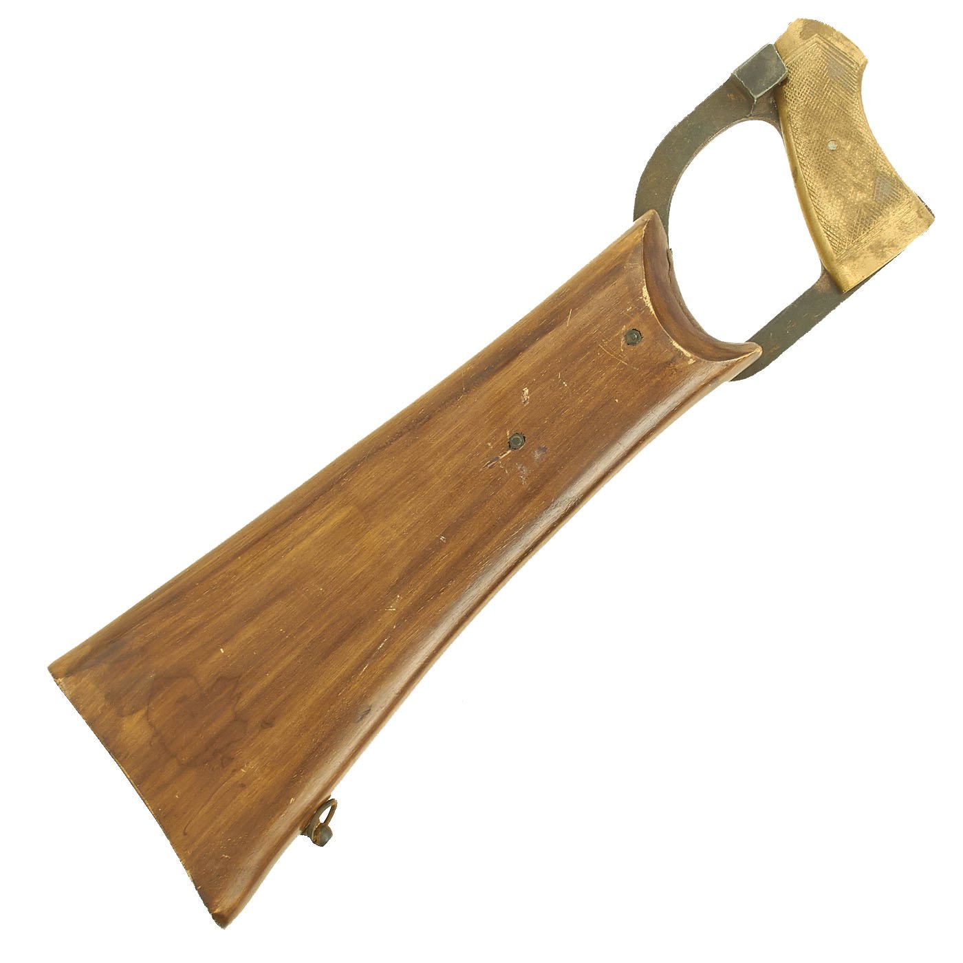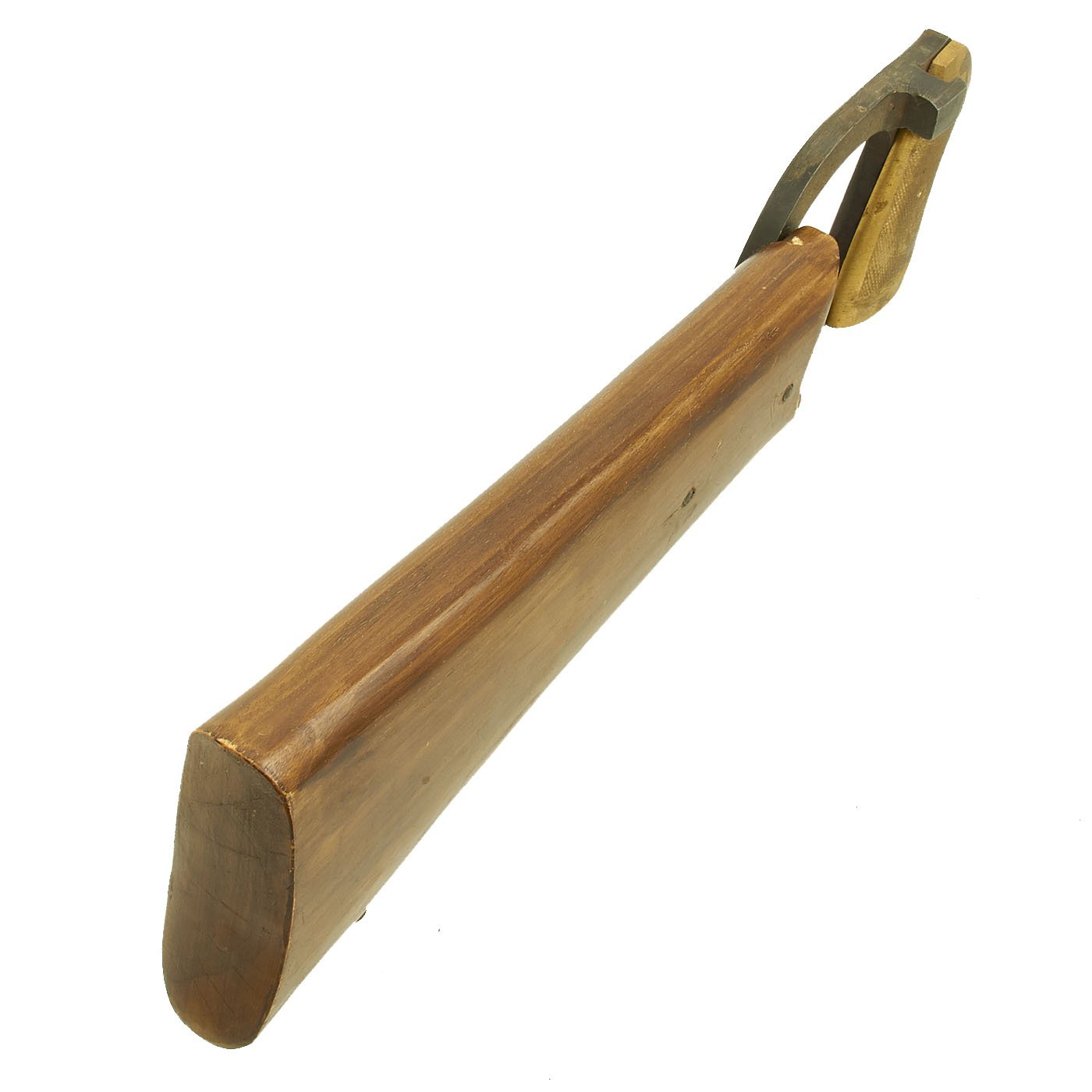Original Item: Only One Available. This does not look to have been issued but has been in long term storage, certainly 40 years that we know of, and may well date to 1917 or post World War One, as these were used into WW2. Heavy iron frame with wood Should stock attached with a brass right hand revolver grip panel. Overall length is just over 15 inches.