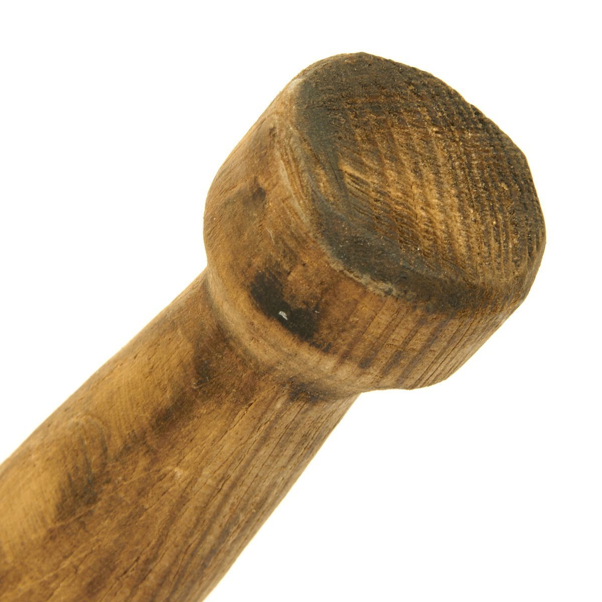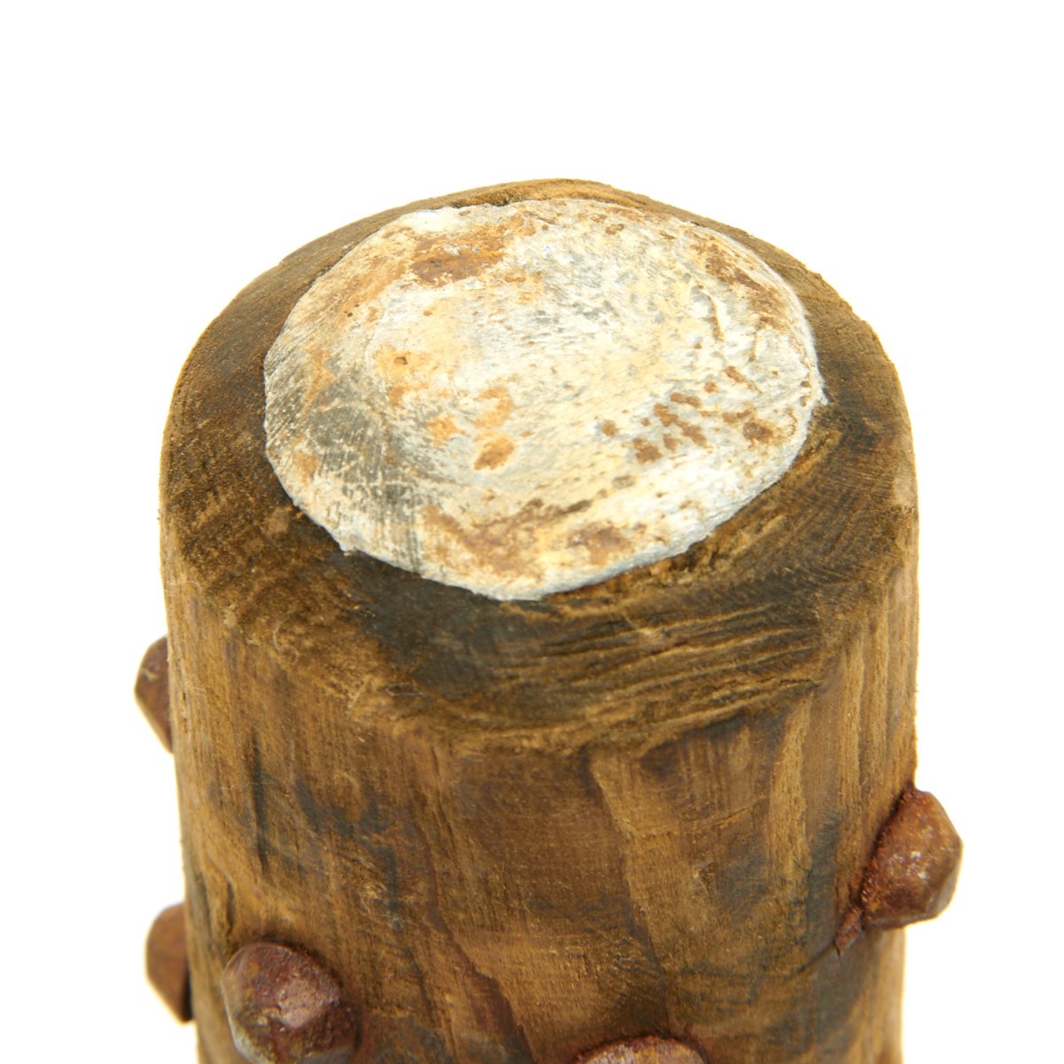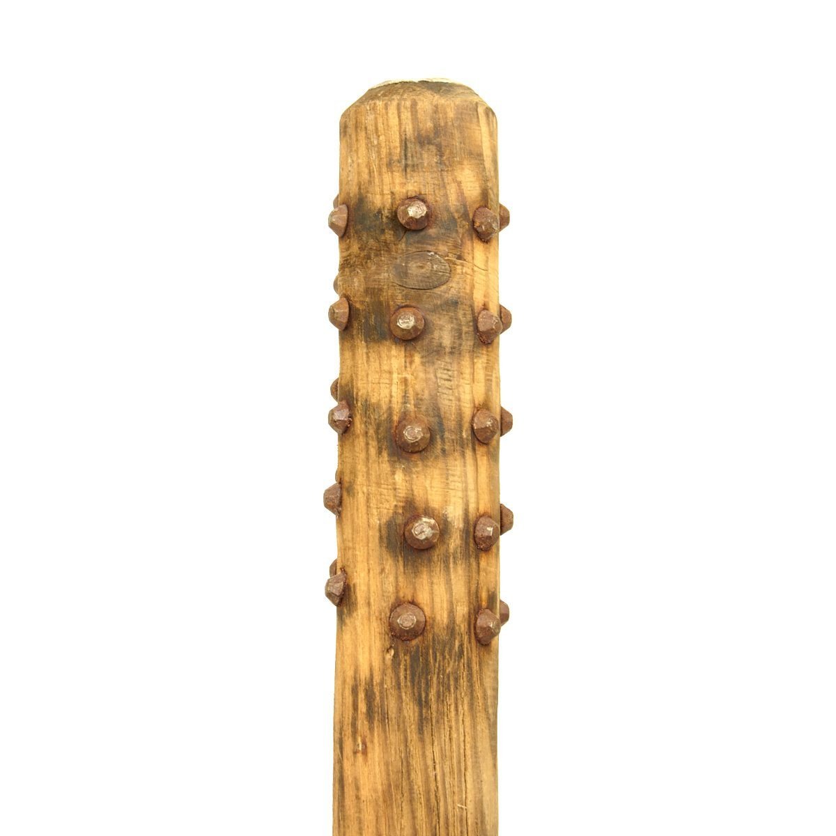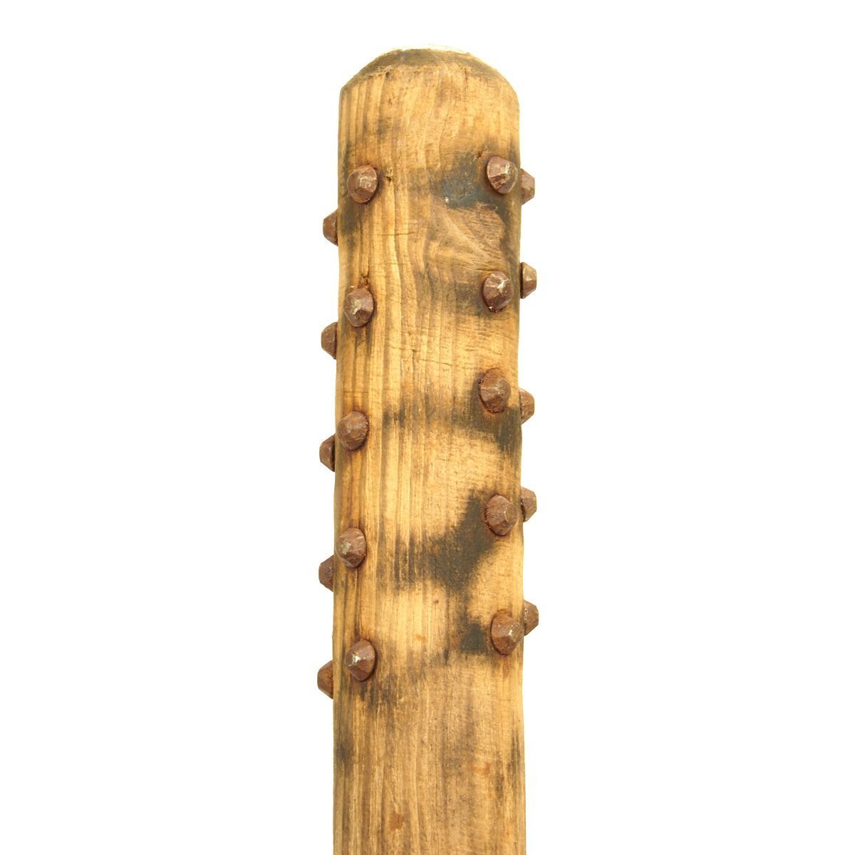 This example has a 16 wood shaft with a LEAD core to what feels like the upper 4 or 5 inches of the head. The head of the club is encircled with five rows of iron hobnails or studs, which would shatter a soldier's skull with ease. Clearly made up in field workshops, these proved highly effective.