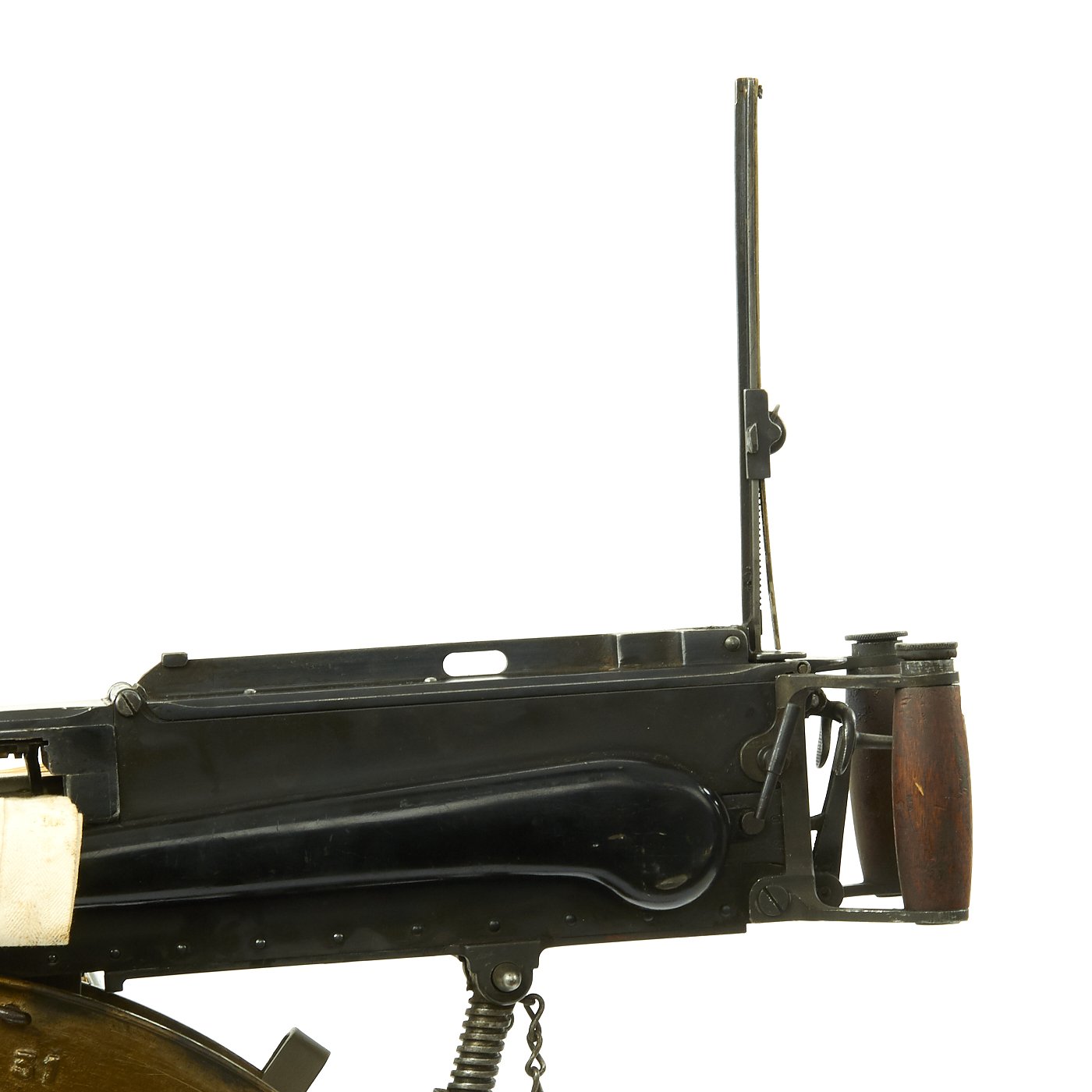 Original Items: Only One Available. This is an original fluted jacket Vickers Gun made and used during WW1 1914 - 1918. The gun comes with the correct WWI steel feed tray and has multiple WWI era parts. The fluted barrel jacket is also marked with serial number C249 and multiple British proof marks.