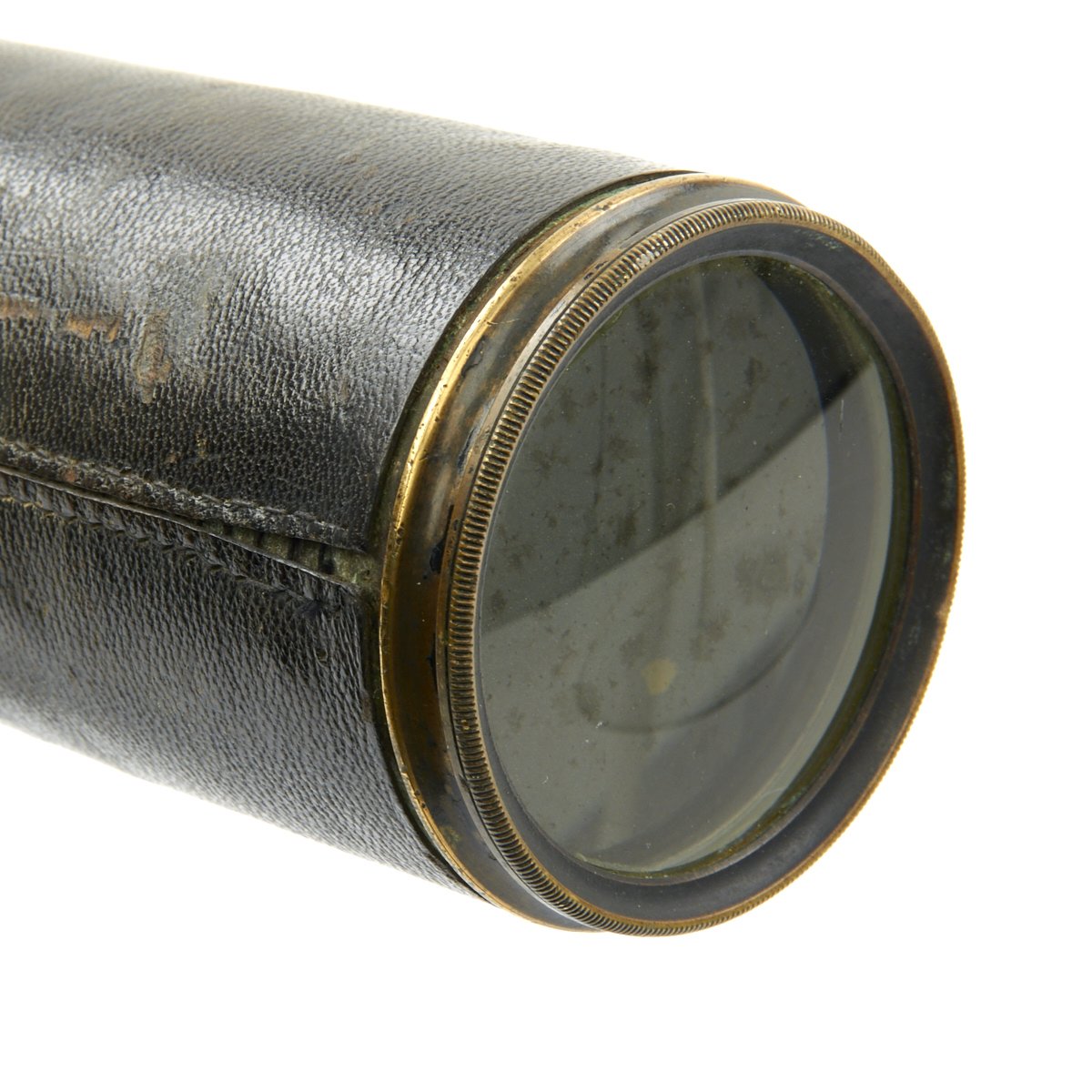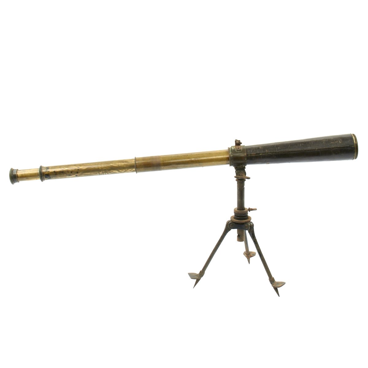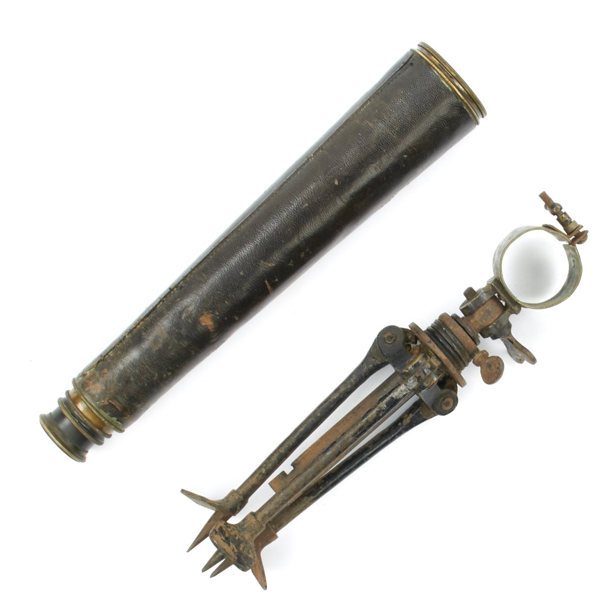 Original Item: One of a Kind. We have never seen a telescope setup quite like this before! It consists of a very fine leather covered Three Draw brass telescope, measuring 32" when fully extended and only 13" when fully collapsed. The brass barrel has the French makers name as well as British acceptance markings: