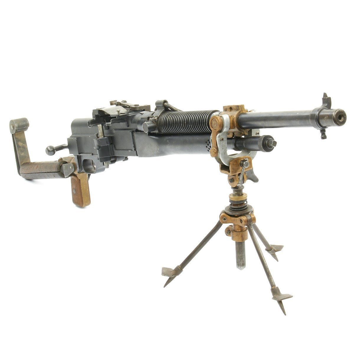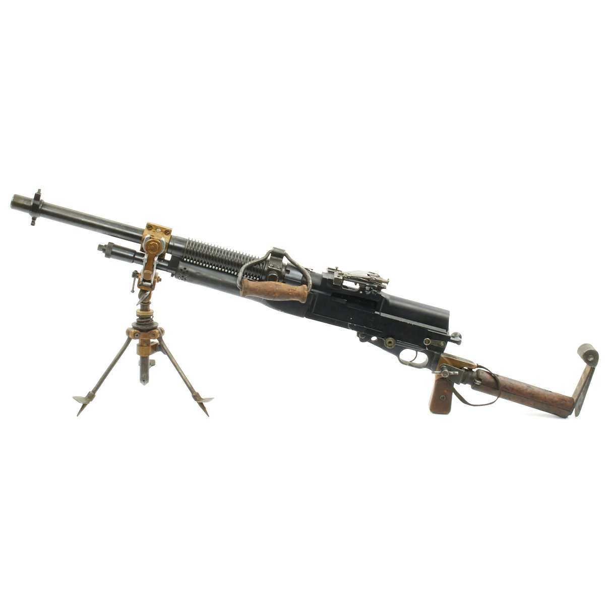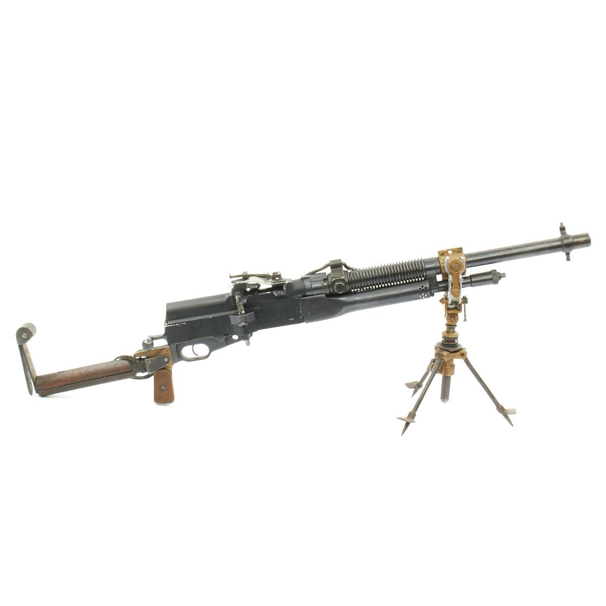 Original Item: Only One Available. This is an excellent Museum Grade Condition British WWI manufacture Hotchkiss .30 Caliber pattern Portative cavalry Display Machine Gun constructed from all original parts on a machined solid display BATF receiver. Complete with markings, Crows Foot Tripod and detachable "L" shoulder stock. These were extensively used in WWI, being the first portable machine gun. Very intricate and very rare.