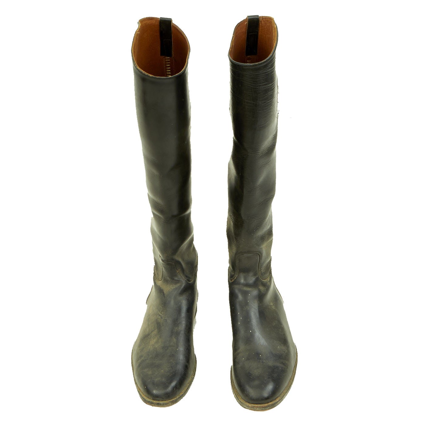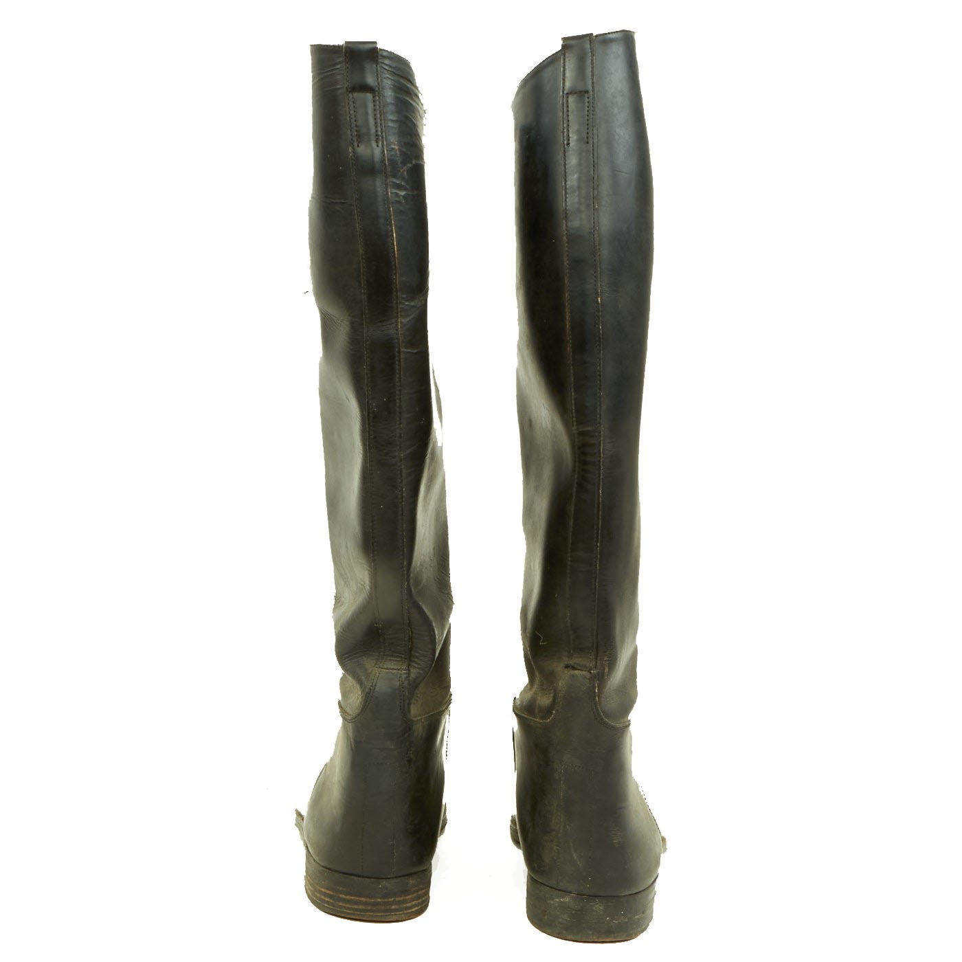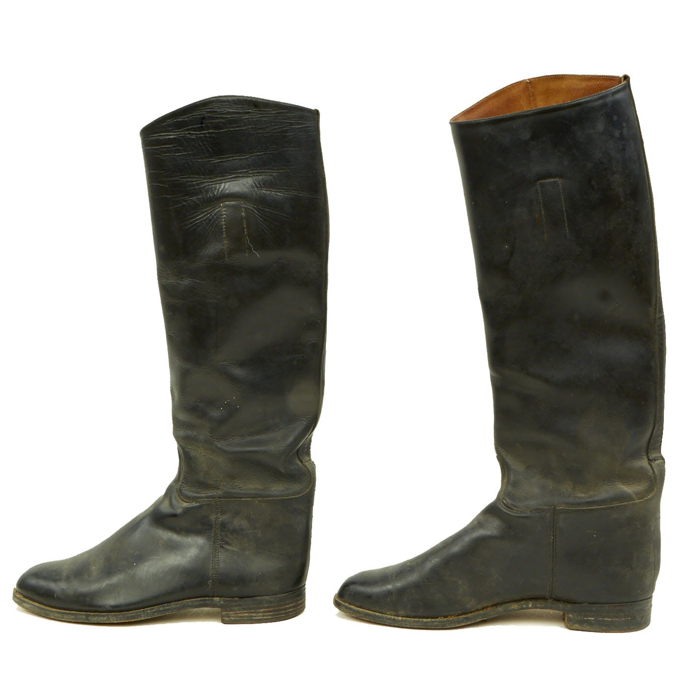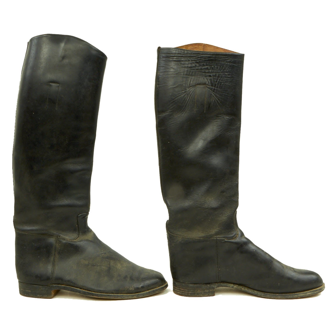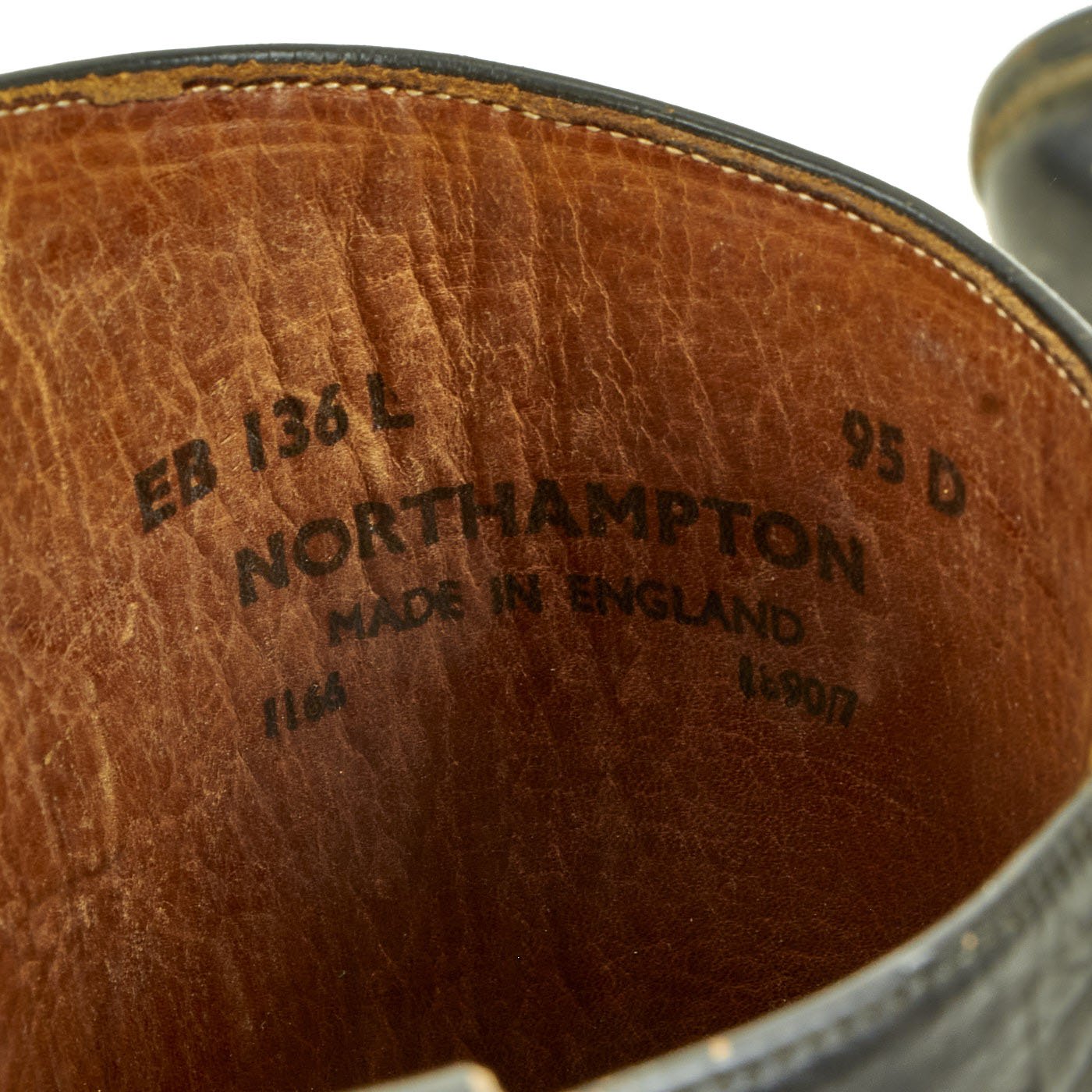 - Northampton Made in England tall black leather officer riding boots. These are post WWII manufactured. Size is 9 1/2 UK