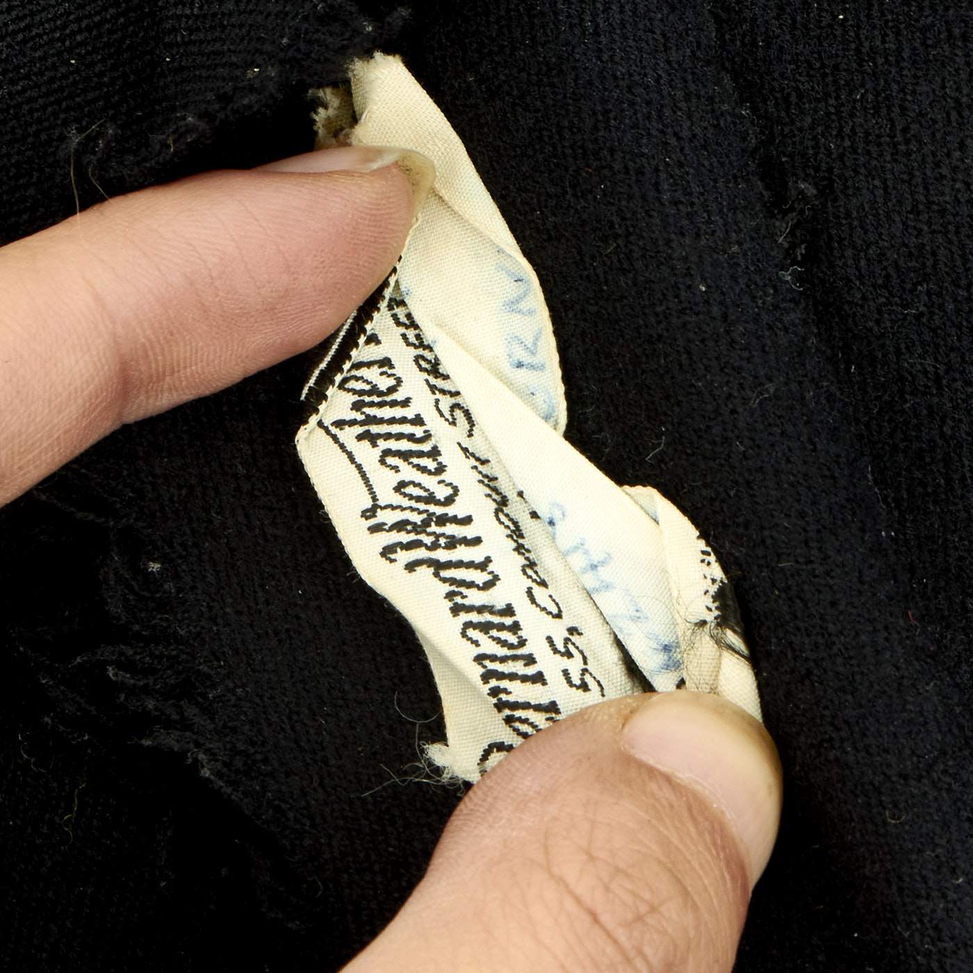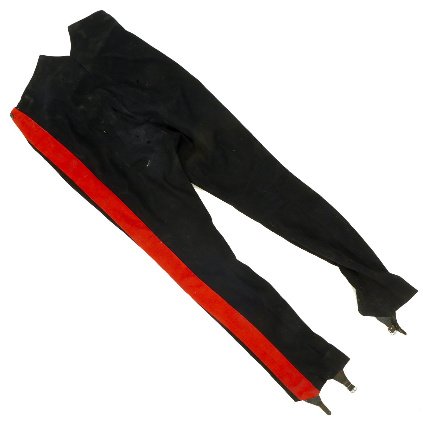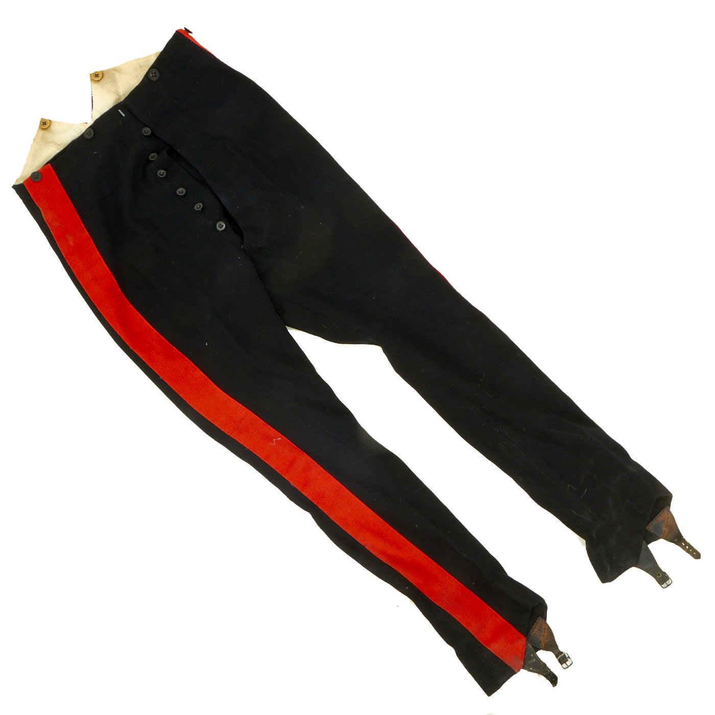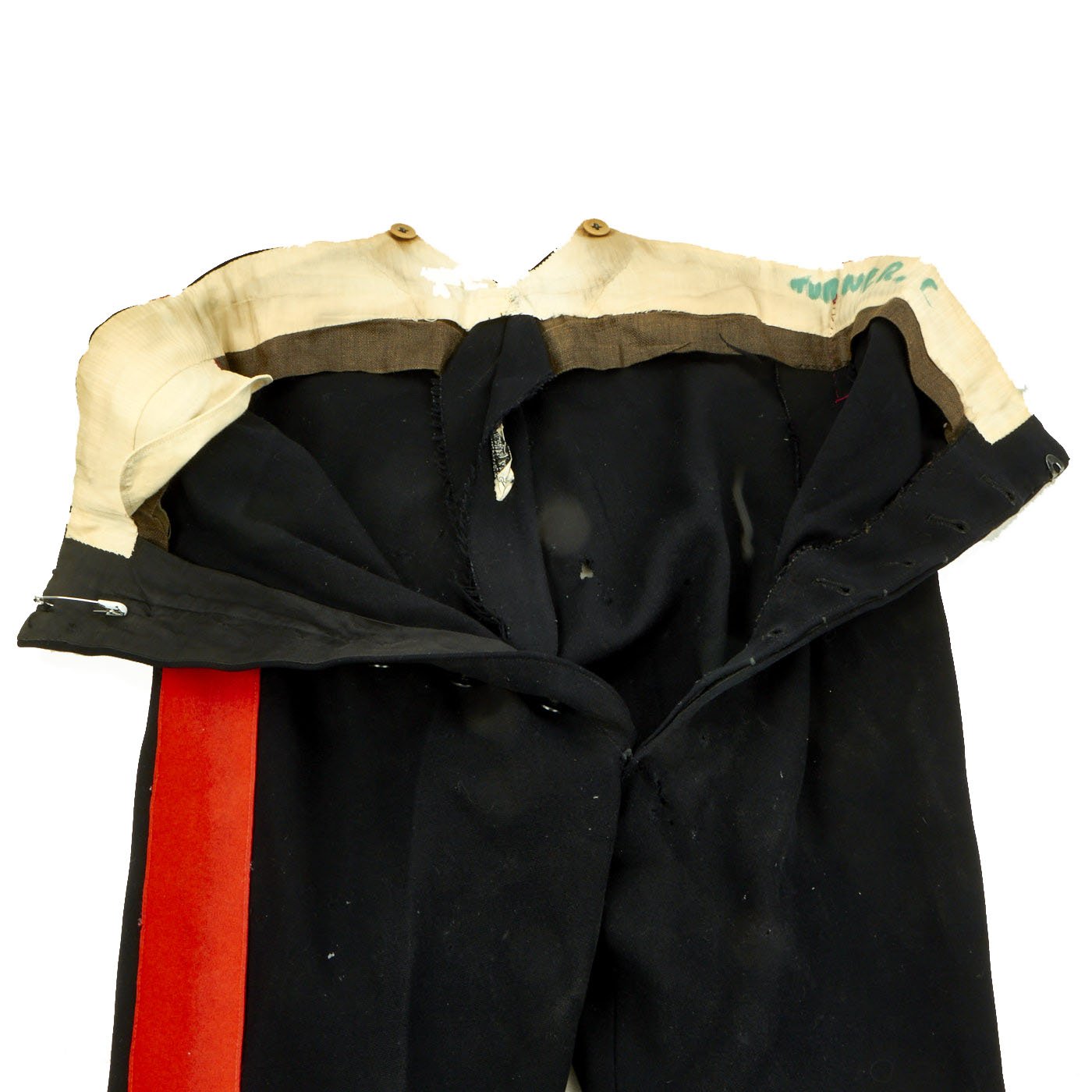 - Post WWII red striped trousers with tailor label and hand written 1962 date.
