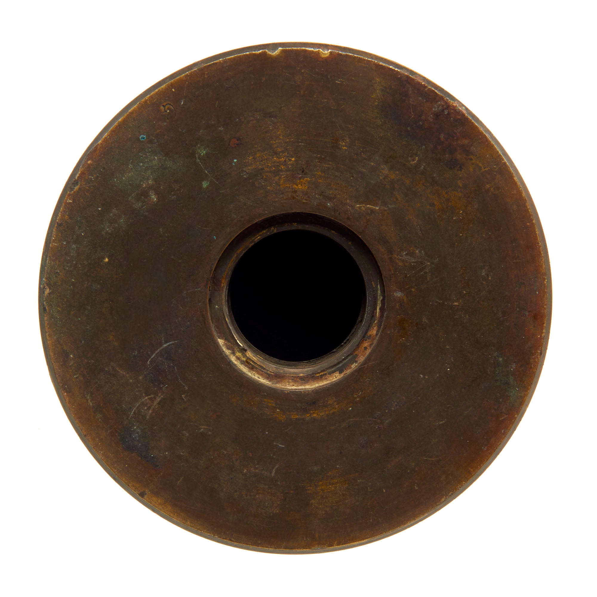 Original Item: Only One Available. This is a fantastic example of a rather hard to find British artillery round from WWI. The round itself is for the “18 Pounder” field gun and is offered in “complete” condition without a primer but still has a few shrapnel balls inside of the projectile! The round is totally inert and void of any explosive content. It is in total compliance with the current BATF standards governing ordnance.
