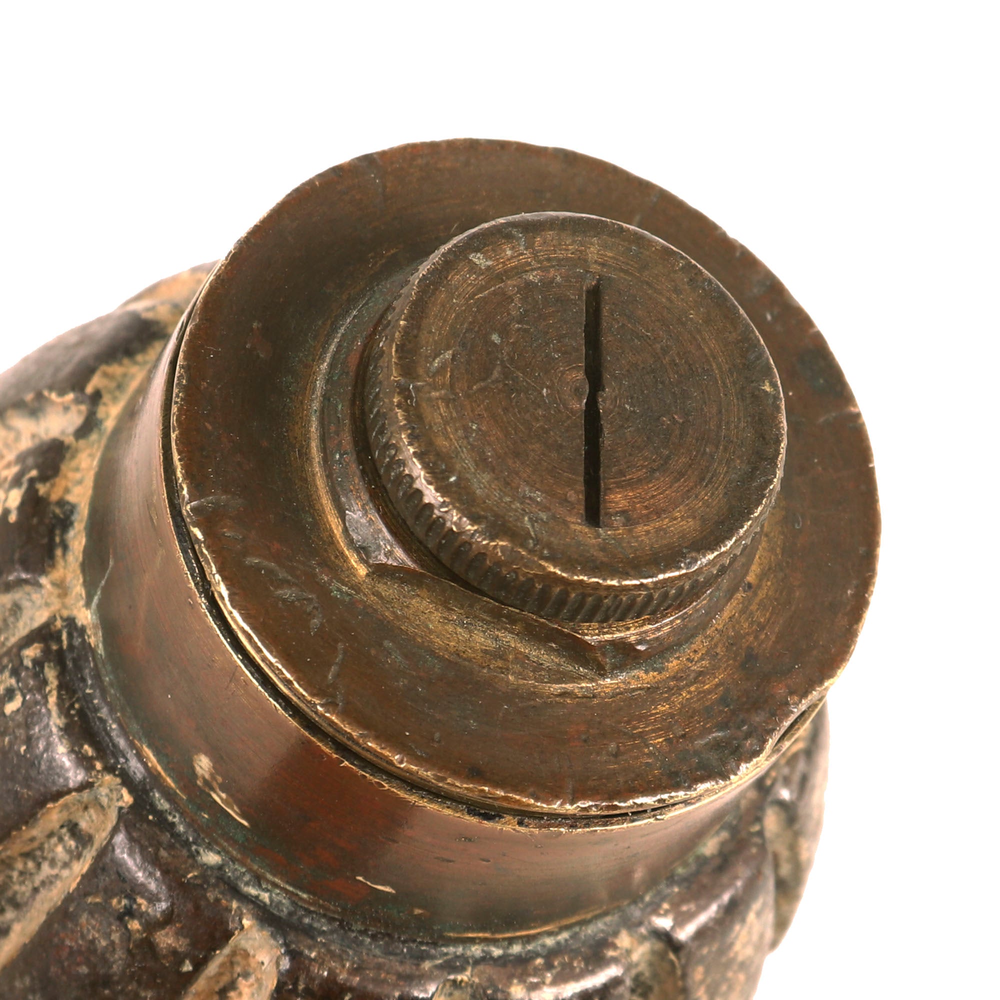 Original Item: Only One Available. Now this is something RARELY encountered and only the second one we have ever had! This little beauty is the British WWI No. 2 grenade, also known as the “Hales Pattern” or “Mexican Pattern, a percussion cap fragmentation and rifle grenade. Not only is this our second example but it is honestly one of the best we have seen so far on the market, if you can even find any.