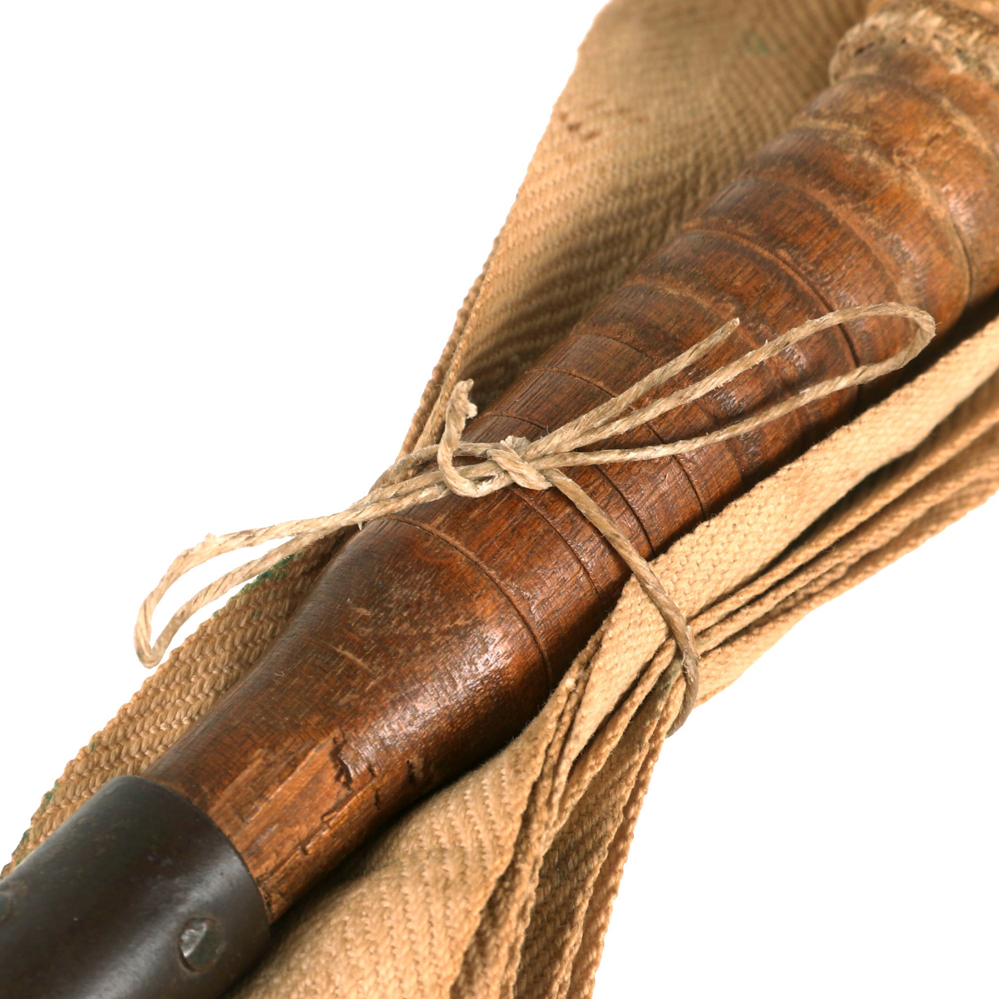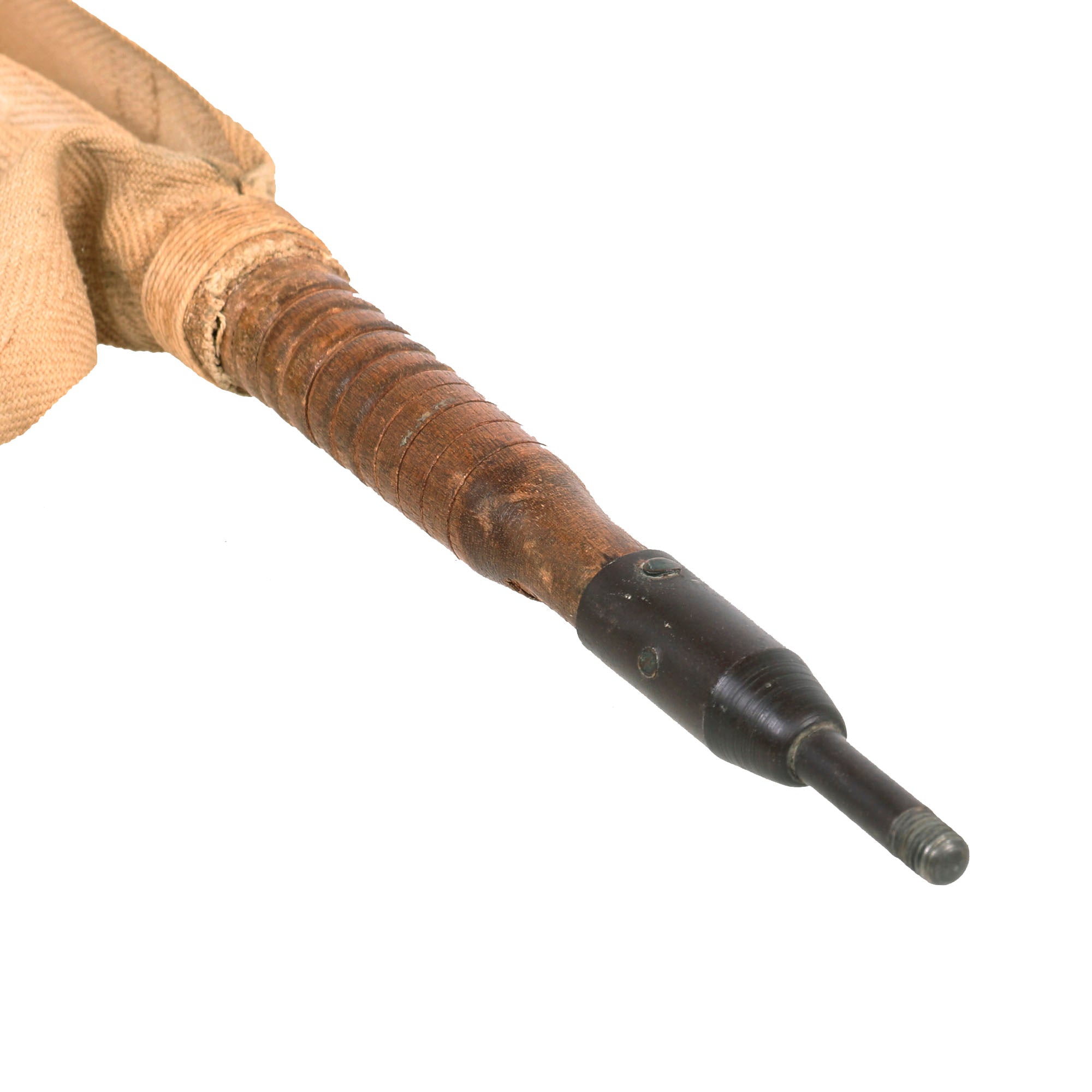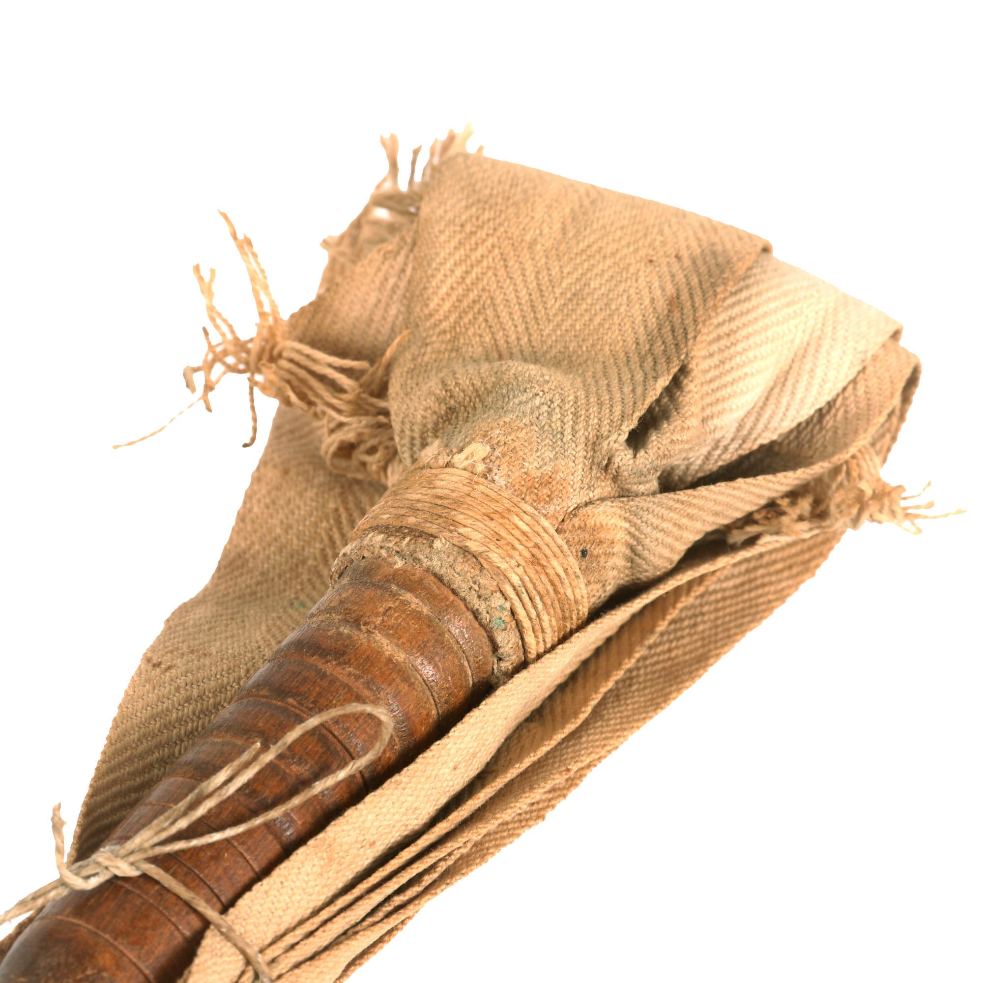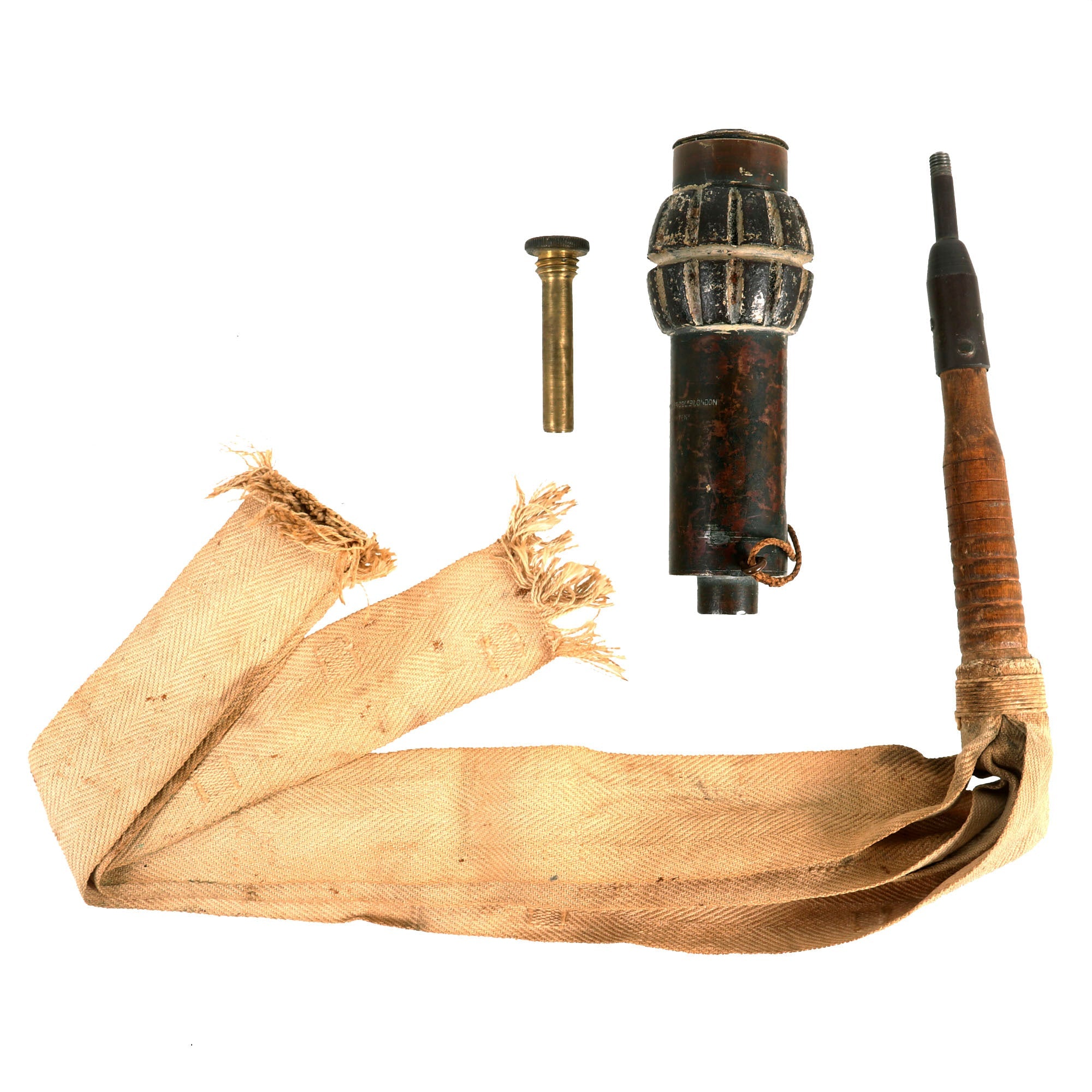 The overall condition is close to excellent with the only “issue” being the lack of paint. All components appear to be original and present, aside from a live fuse and explosive content. The wood handle is still solid with great appearance.