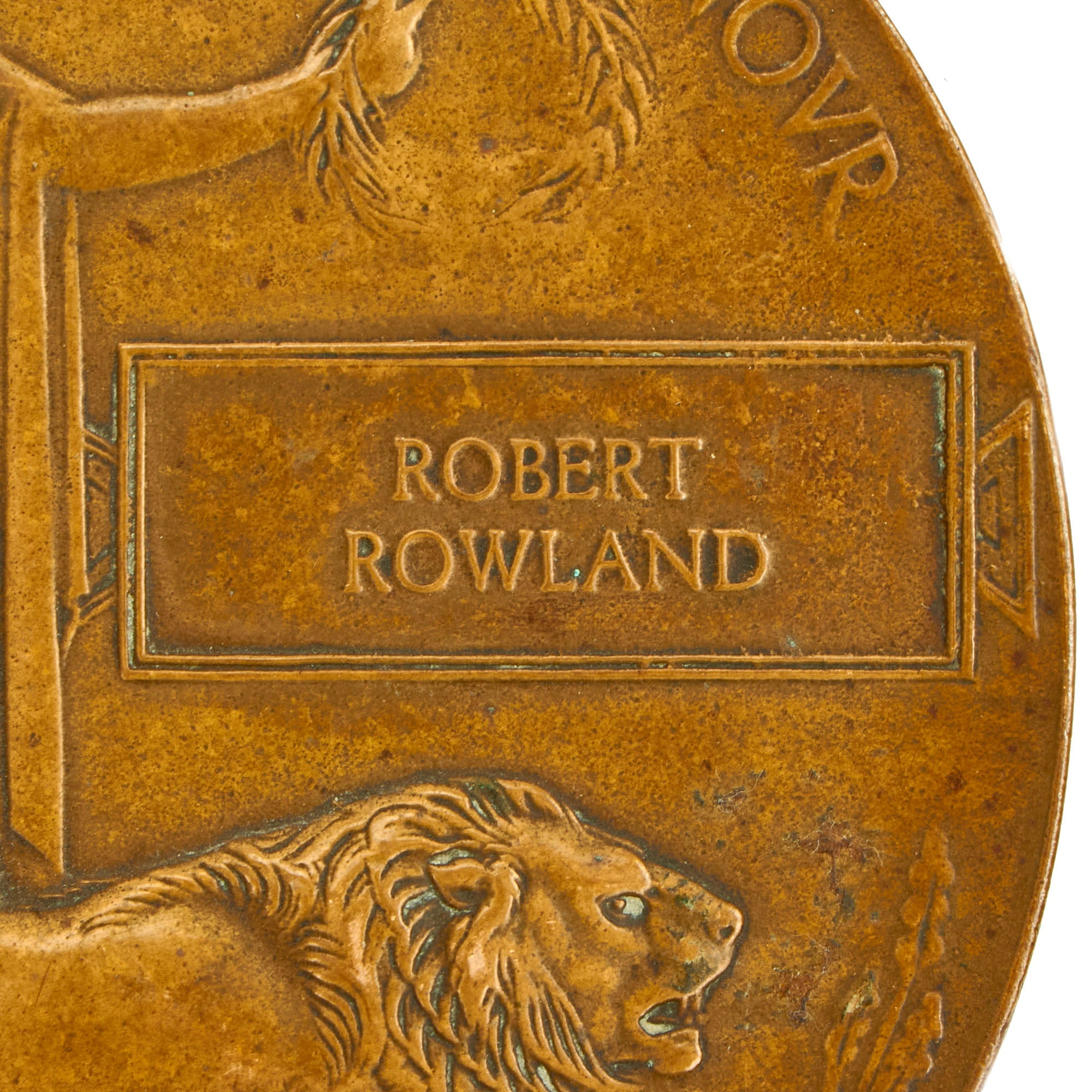 Original Item: Only One Available. This is a lovely WWI Memorial Plaque commemorating the life and service of Walter Brown, a British soldier who fell on an unknown battlefield with an unknown unit. Due to how common his name is, there were a few “Robert Rowlands” that came up in multiple databases, most Killed In Action. It would be nearly impossible to determine which specific Robert Rowland it was, but in all reality anyone you pick would be “correct”.