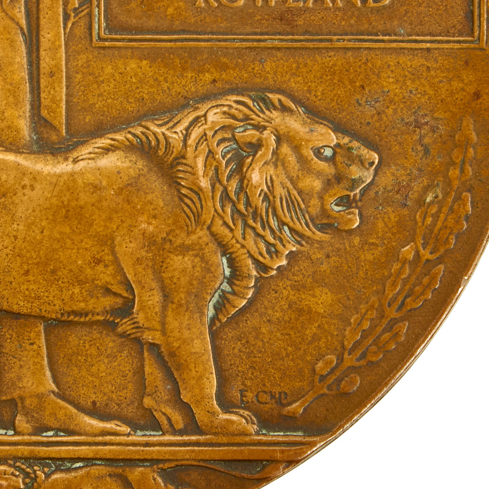 The Memorial Plaque was issued after the First World War to the next-of-kin of all British Empire service personnel who were killed as a result of the war.