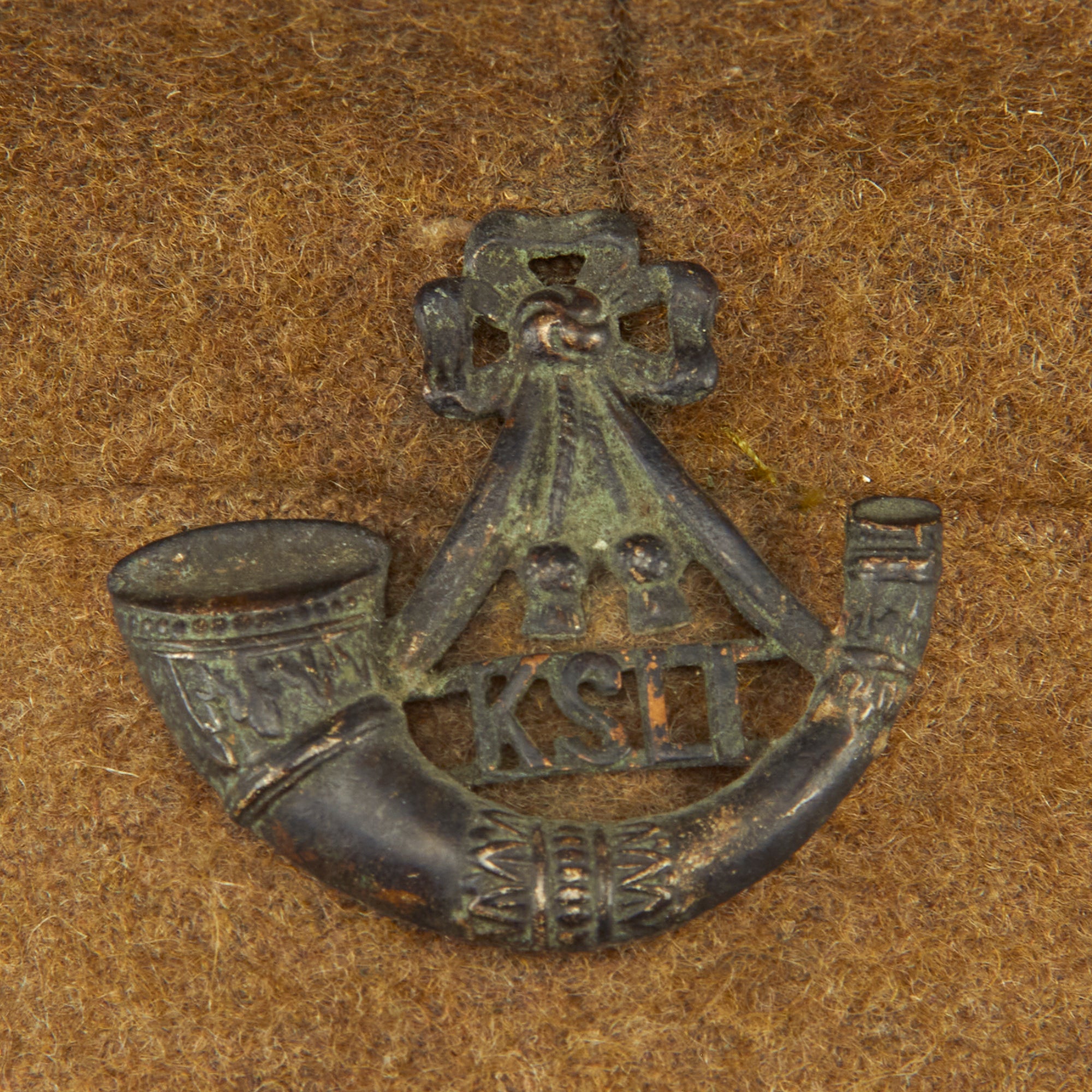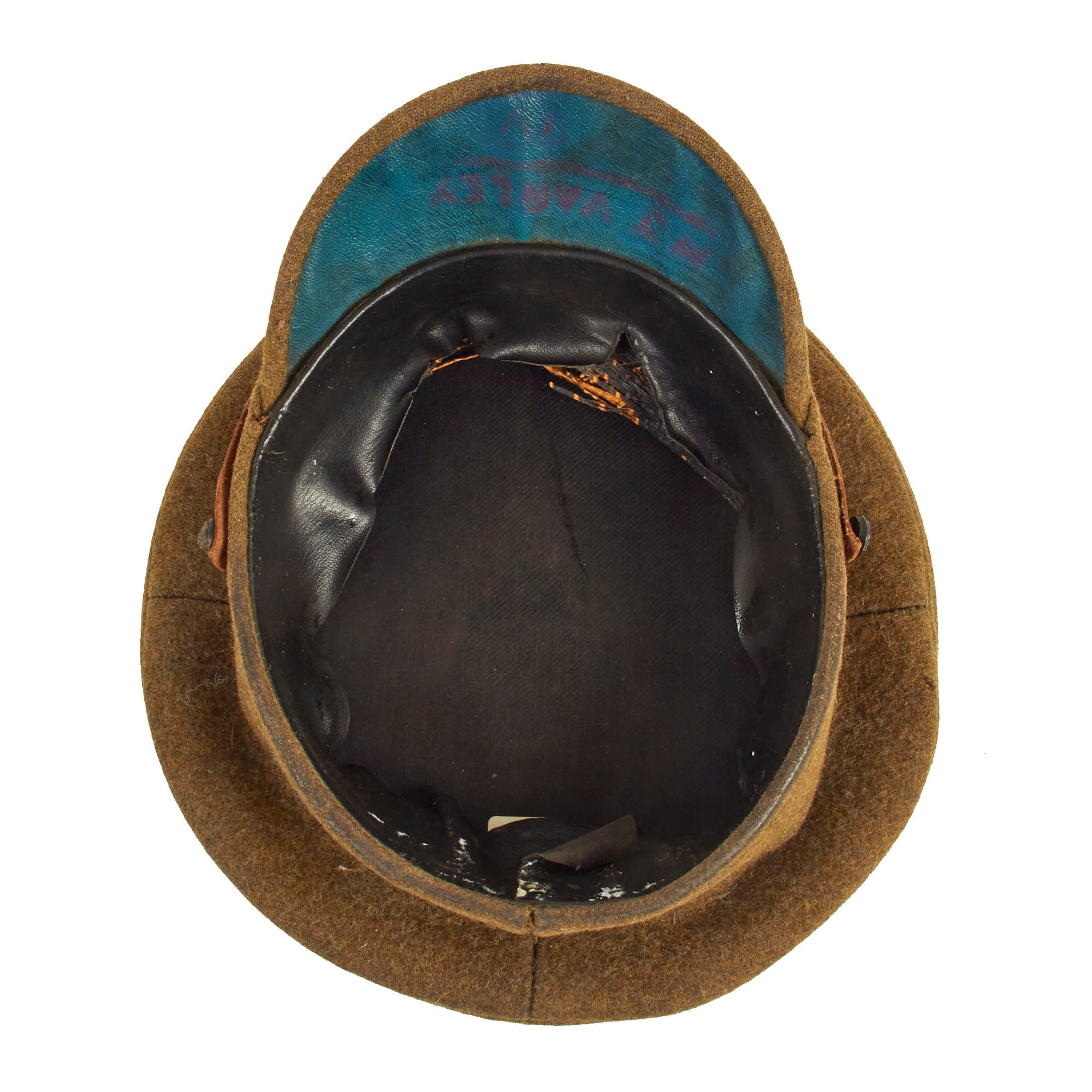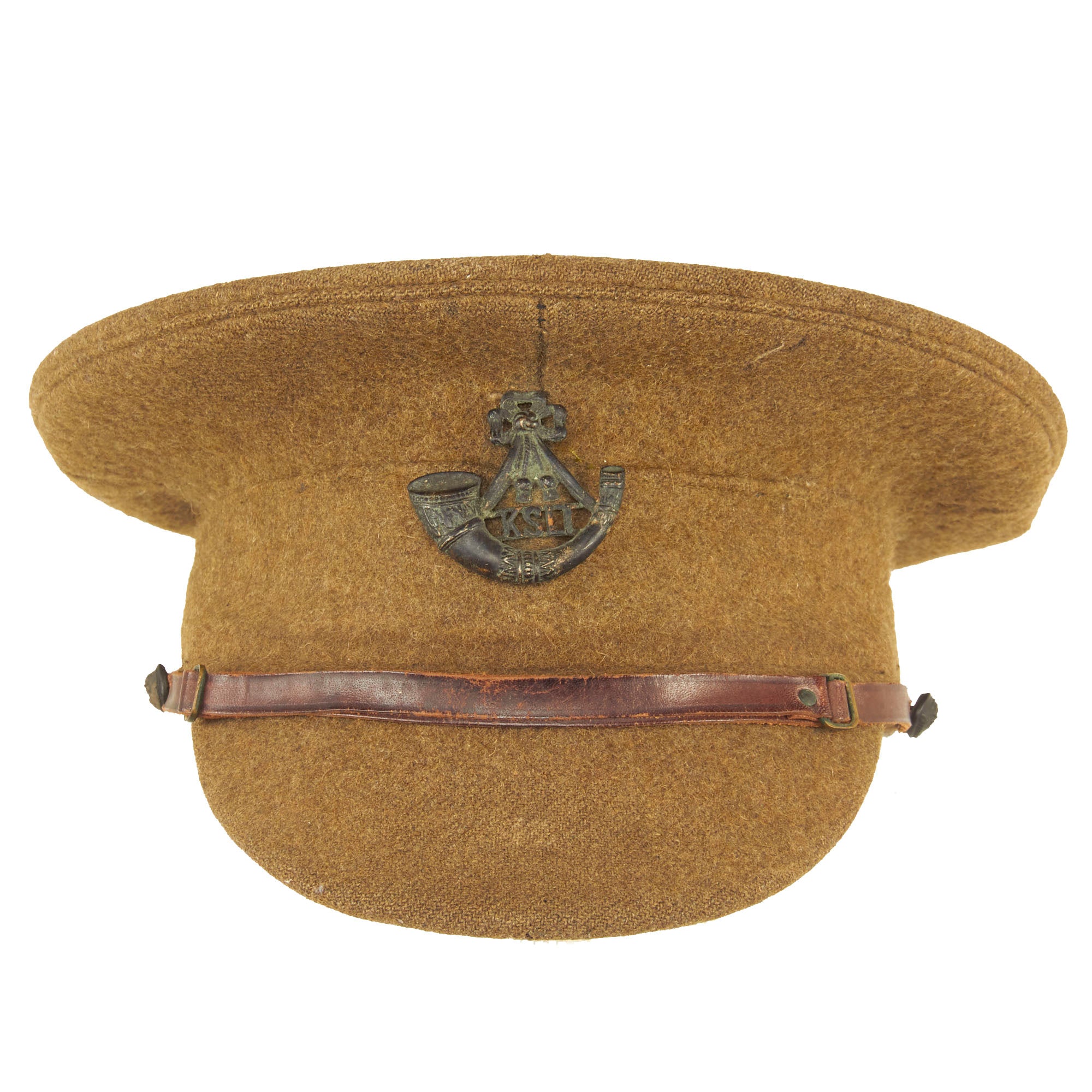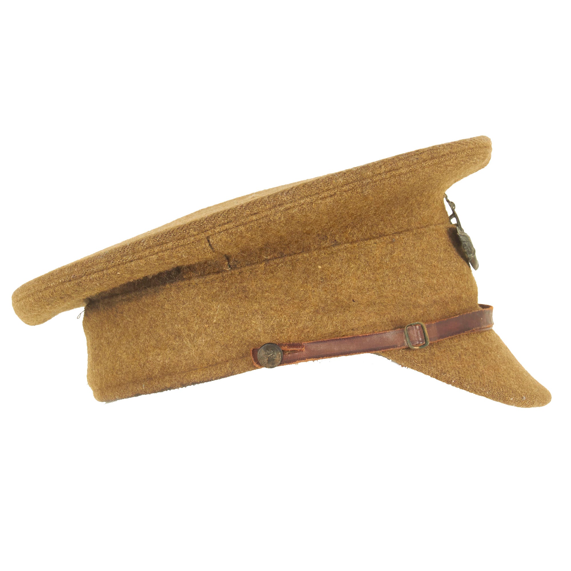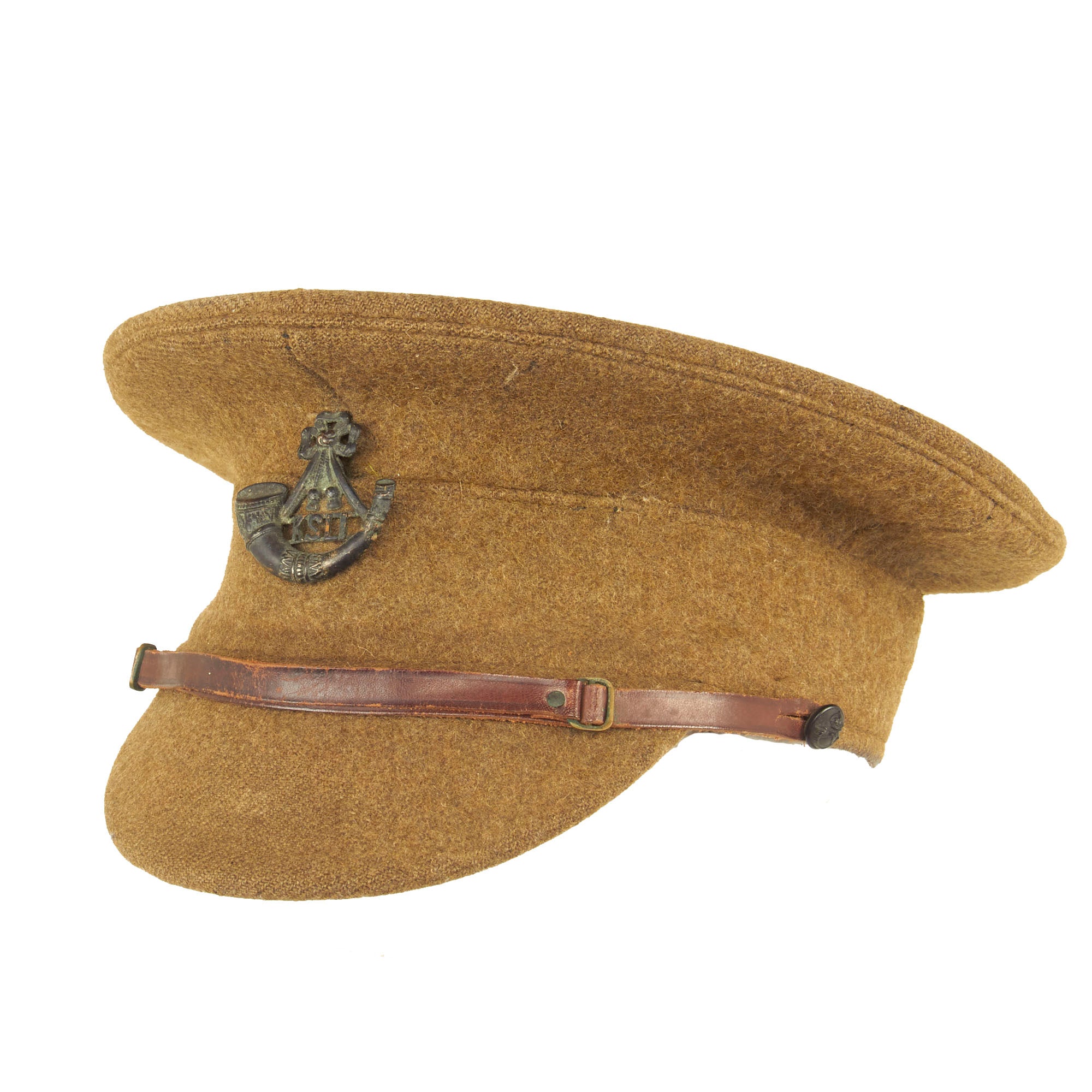 Original Item: Only One Available. This is a stunning example of an original wool serge constructed Trench Cap as used by Great Britain in WW1. Black cotton lining with oil cloth type sweatband. Affixed to the front is the cap badge for the Shropshire Light Infantry.