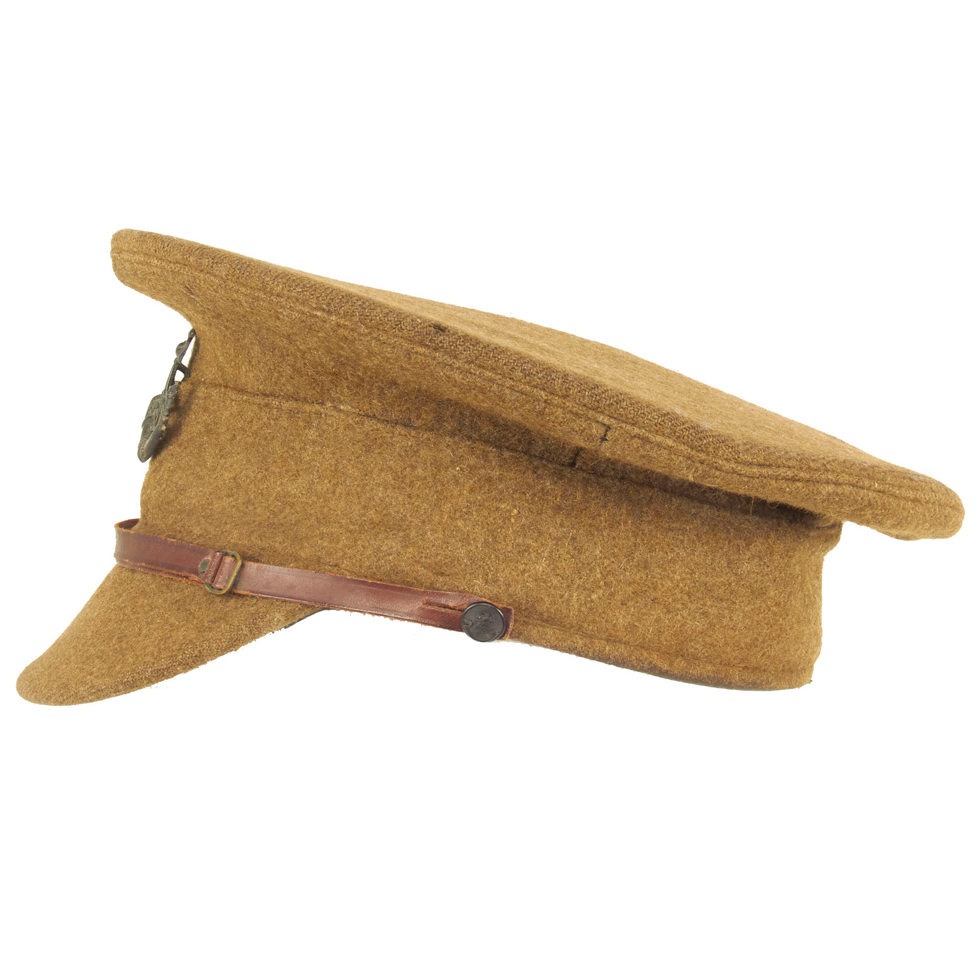 The Trench Cap, such as our example, was a compromise between the Gor Blimey and the SD Cap. It has a non stiffened crown and visor. It was easily packable, and the oilcloth lining kept the wearer warm and dry. The neck flap was omitted. A leather chinstrap was added to the design. As helmets would now be worn at all times in the front lines, and allowed the wearing of a balaclava underneath, the need for a front-line winter cap was redundant. Although never manufactured in Canada, it was popular with Canadian troops.