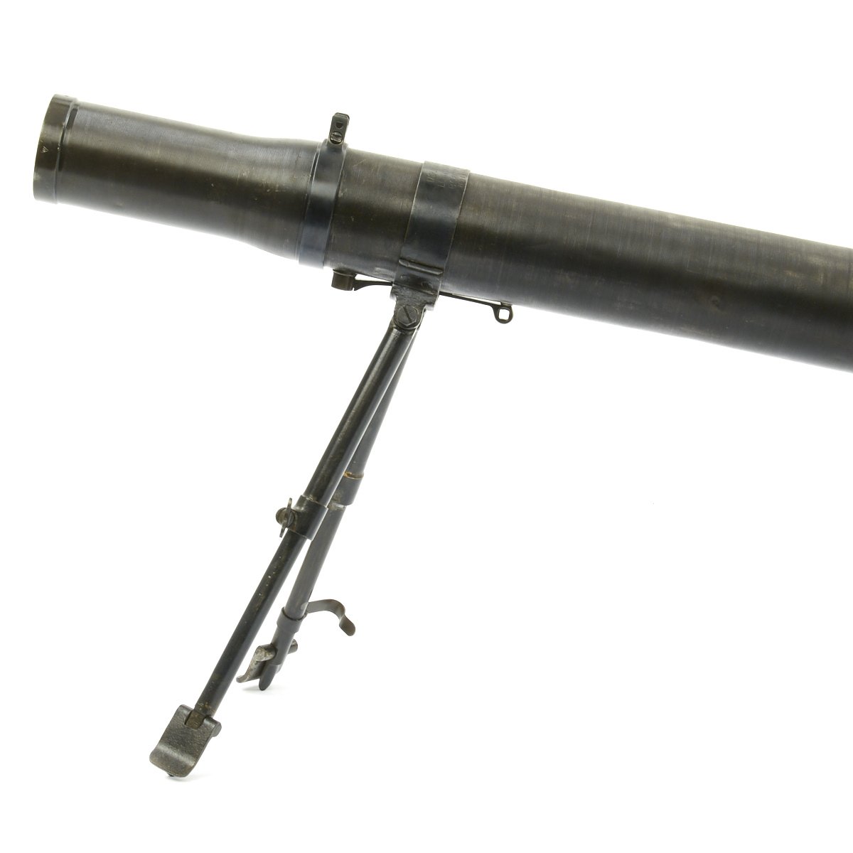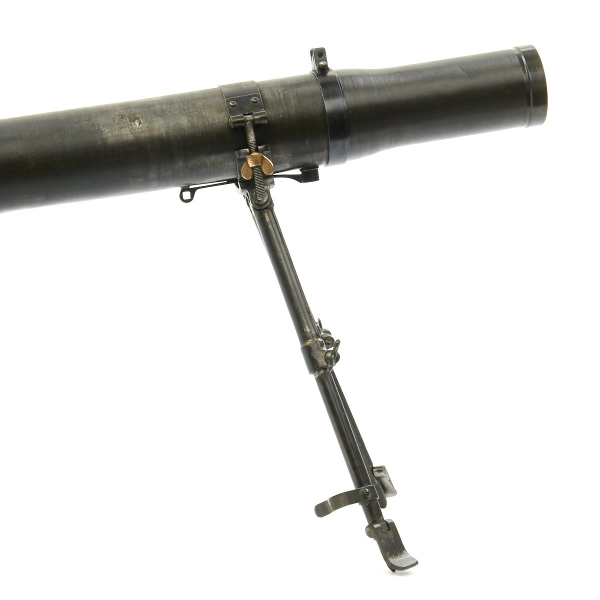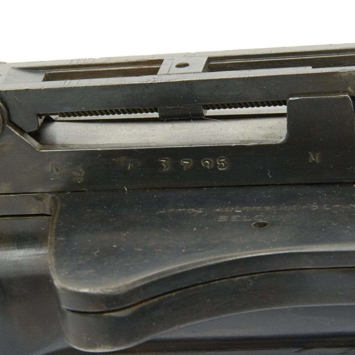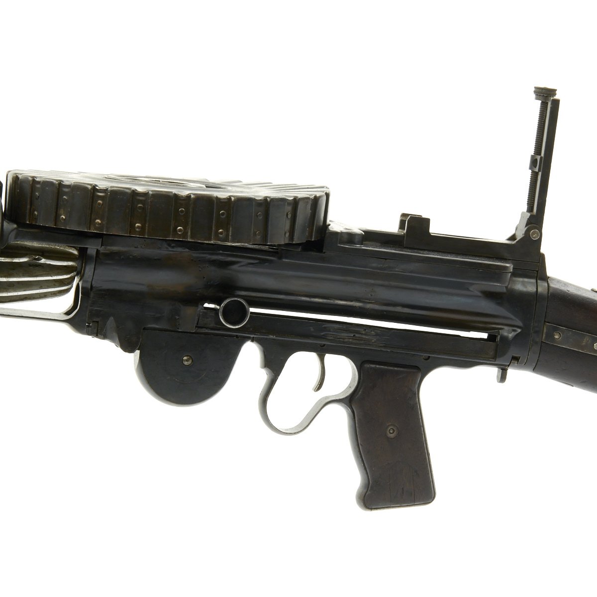 Developed in 1914, this example is clearly marked Lewis Auto Gun and shows the manufacturer The Birmingham Small Arms Co. Ltd., ENGLAND. It also bears the marking of Armes Automatique Lewis, BELGIUM. It is mounted with a well-marked original bipod, and would be the centerpiece of any WWI collection it becomes part of.