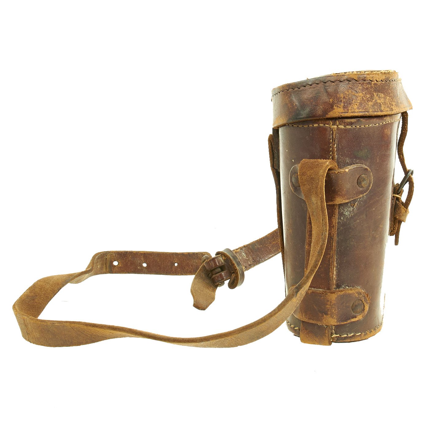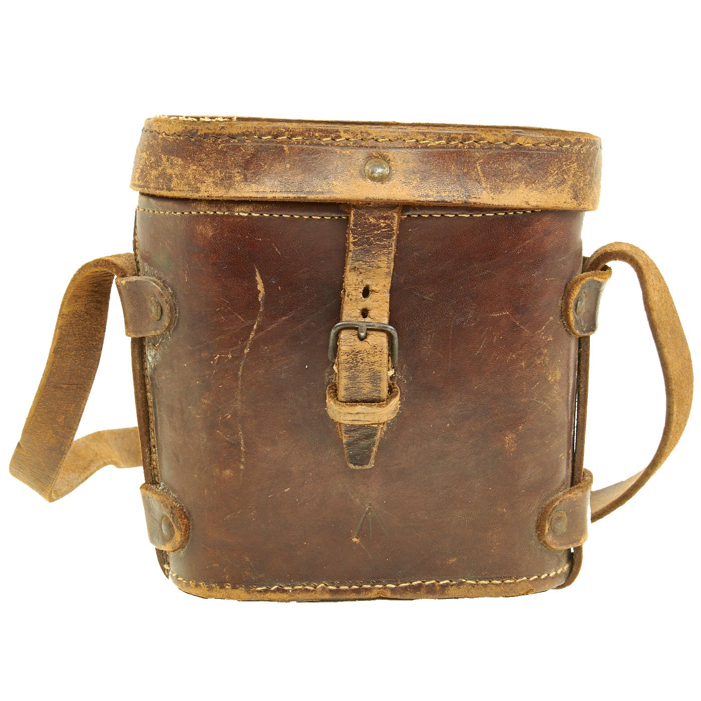 The included case is made from brown leather, and has a British Broad Arrow marking on the bottom front. The interior is lined with paper as well as black velvet. There is also a name written on the bottom under the shoulder strap, but we cannot read it. The shoulder strap itself is a bit short, so it may have been reduced in length at some point. It is however in good condition, with an intact working buckle.
