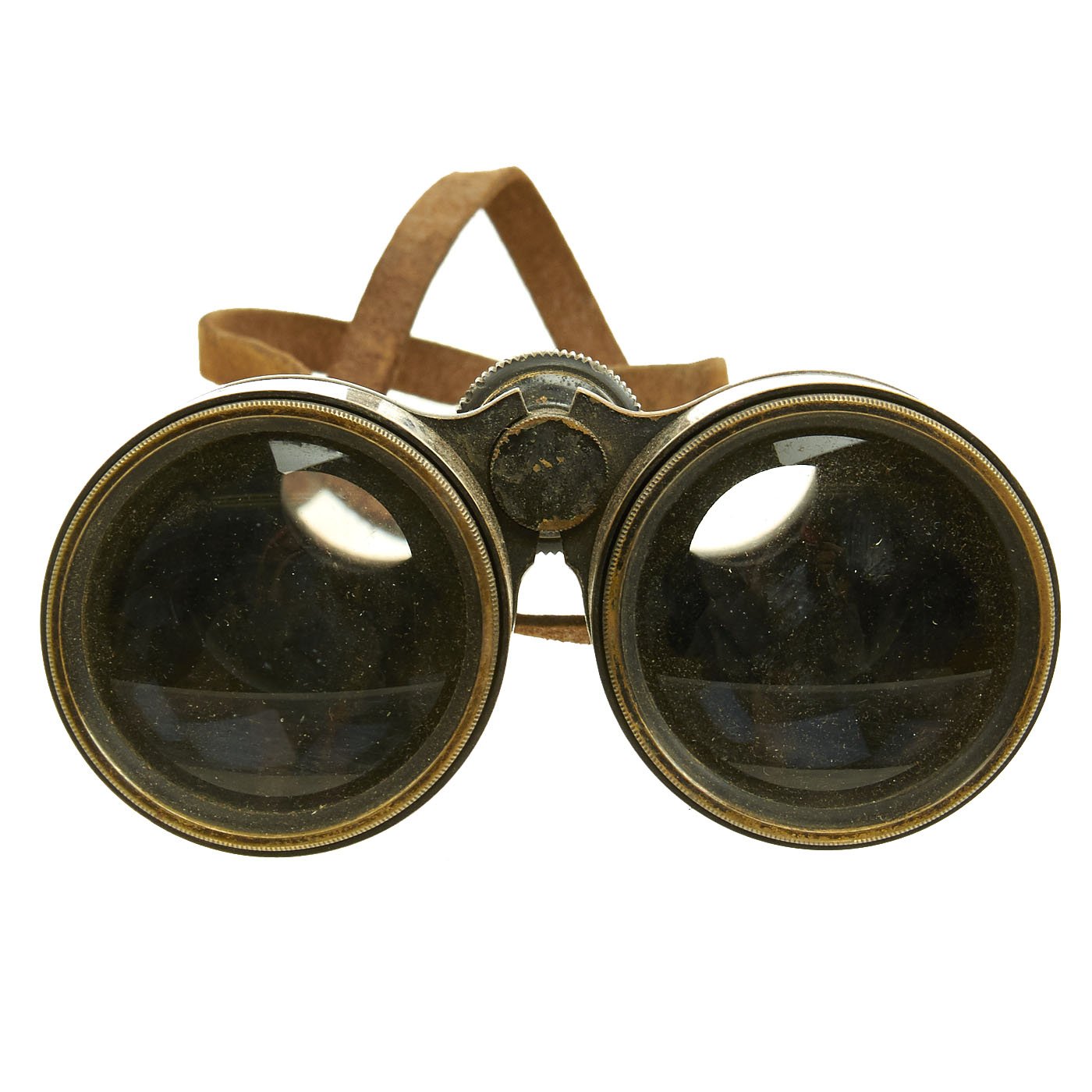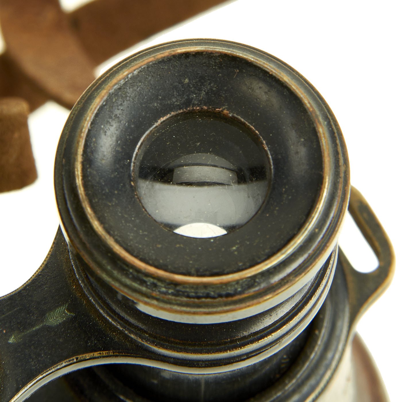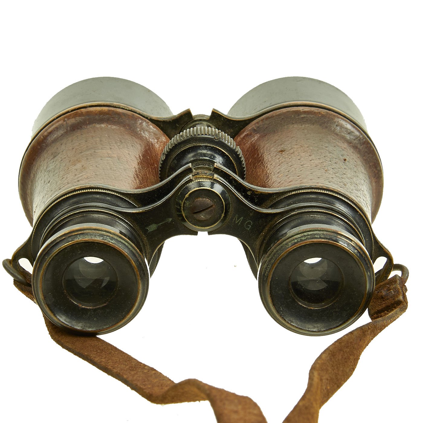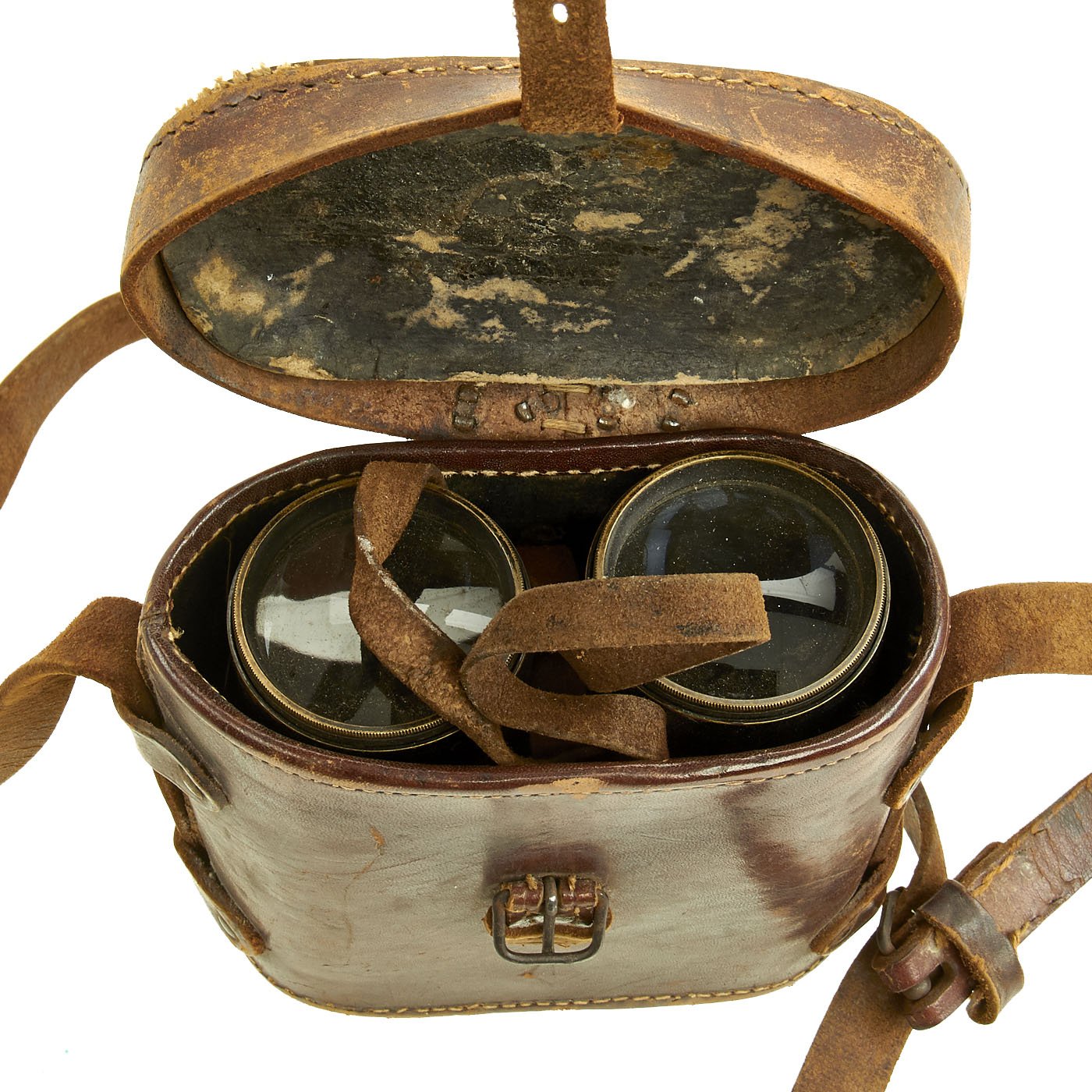 Original Item: Only One Available. This is a very nice pair of British WWI Officers Field glasses, complete with their original brown leather case. During WWI, there were definitely supply issues with regards to optics, as the U.K. had long imported quality optics from Germany. With the outbreak of war, that was definitely no longer possible. Many sets of field glasses were then purchased in France, though this set seems to be original Manufacture.