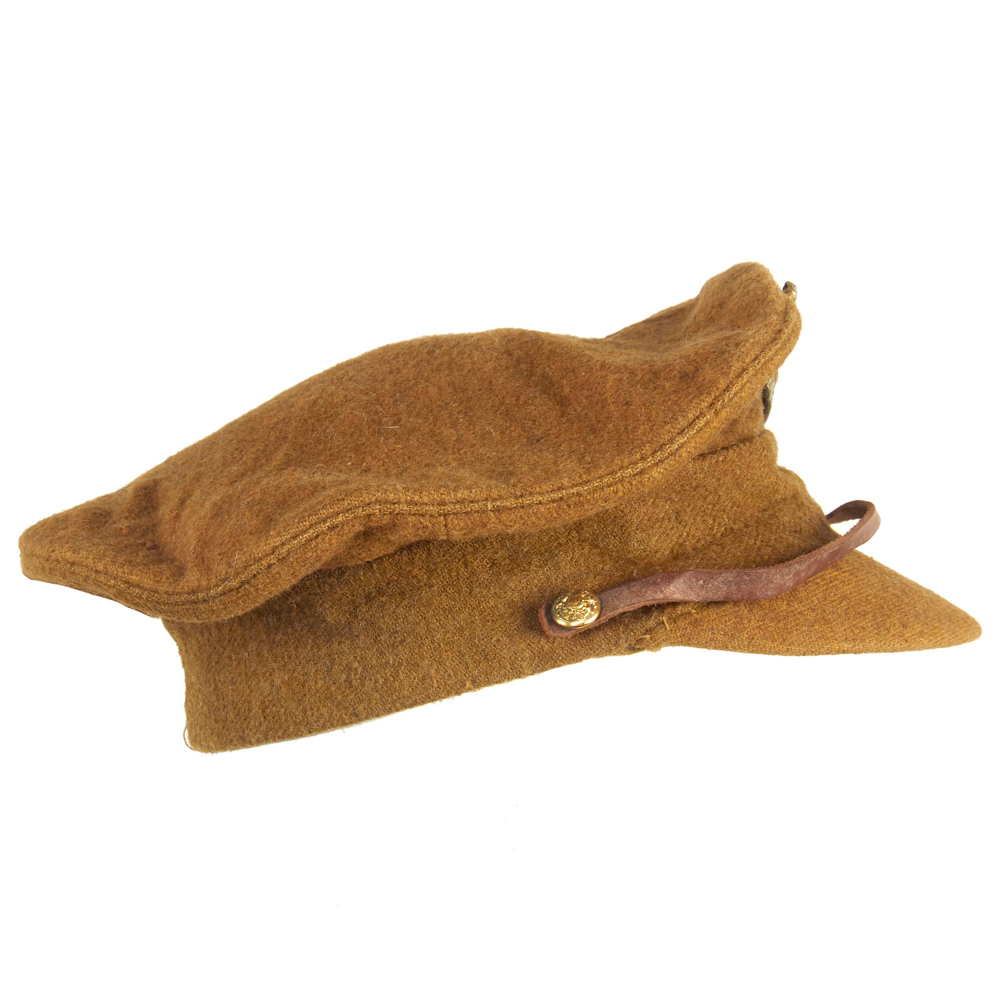This genuine WW1 cap is extremely rare with only a handful of genuine known examples on earth. This one appears to have undergone a modification and had the entire lining and ear flaps removed with a reinforced visor attached to the front. It is offered in very good condition with minimal wear. The size is approximately 56cm (US 7).