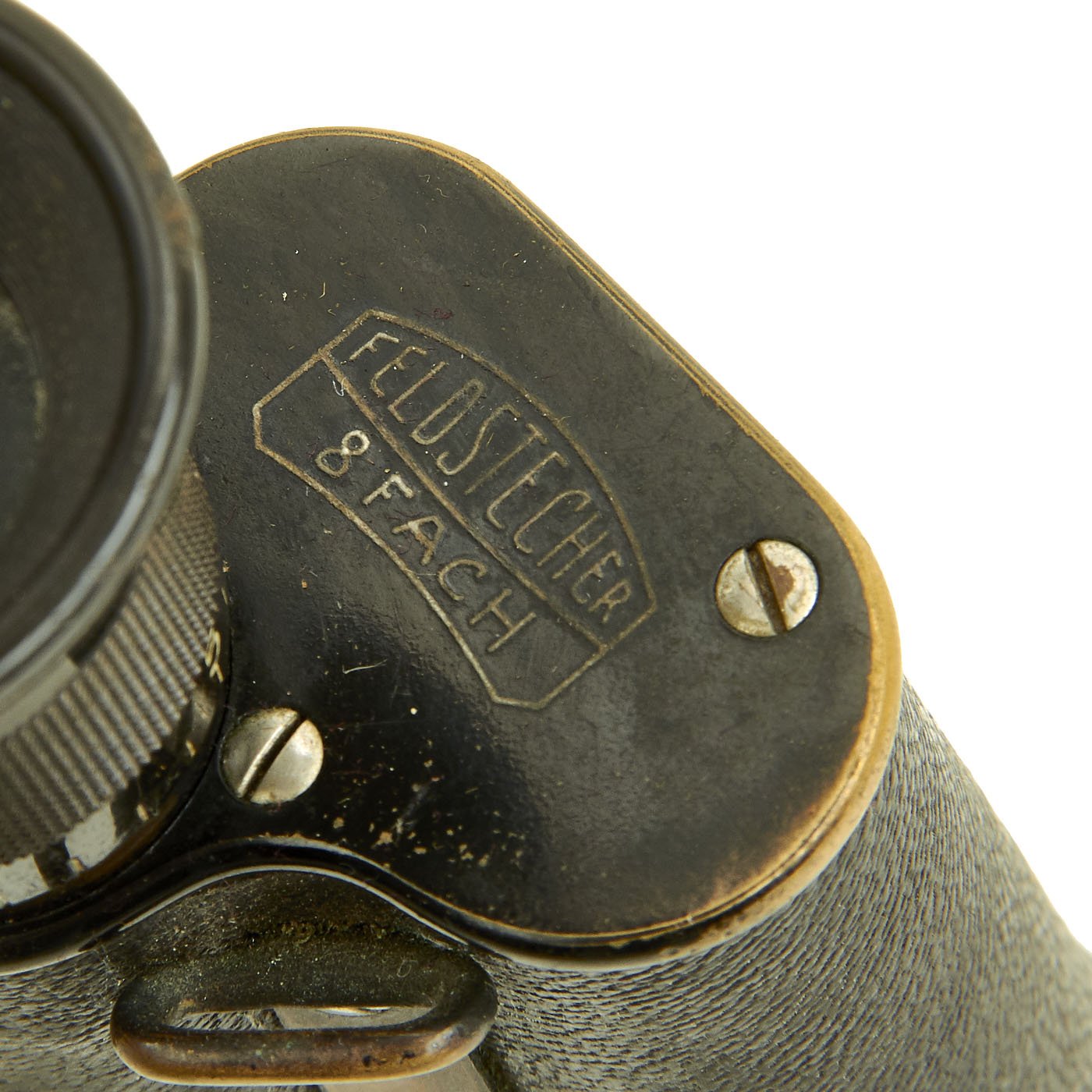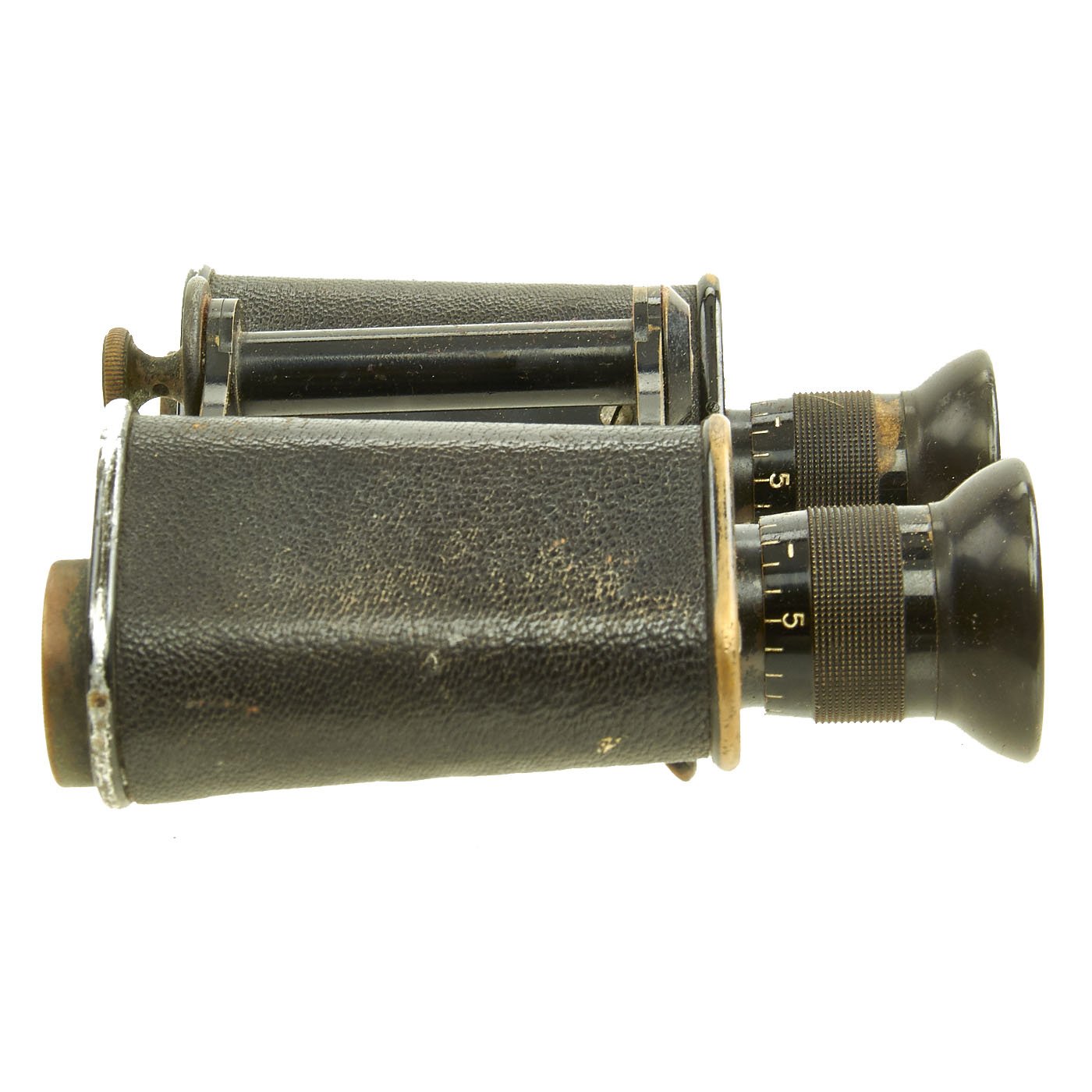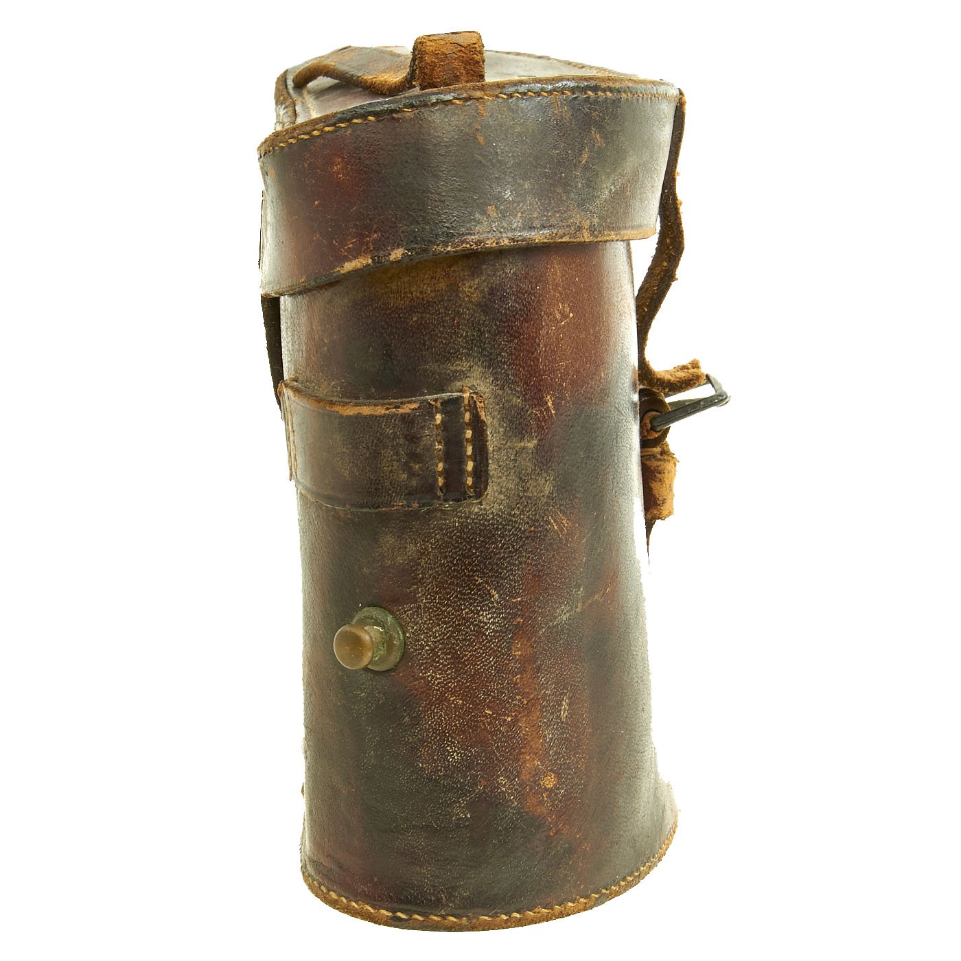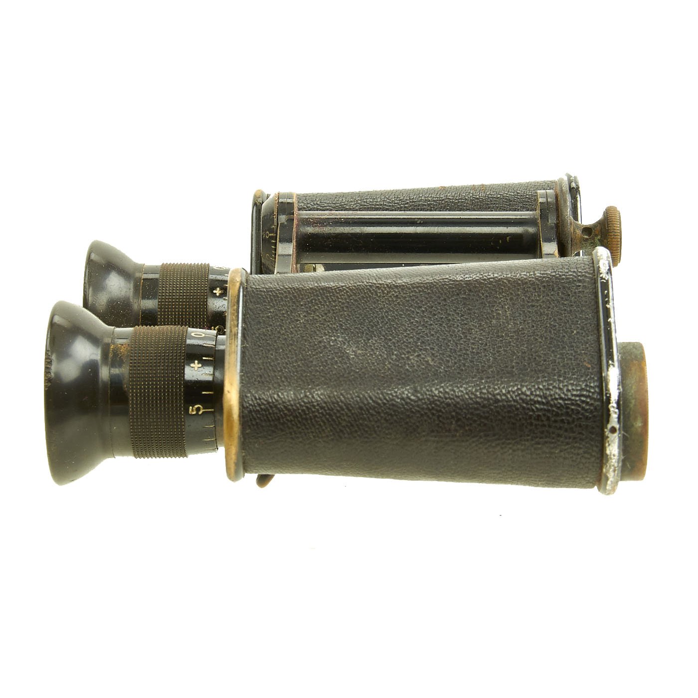 Original Items: One of a Kind. This is a very nice set of Early style British WWI Feldstecher (Field Glass) Binoculars, made by the legendary optical company Carl Zeiss of Jena, Germany. British forces had long imported quality optics from Germany, so at the start of WWI, many officers were equipped with this type of binocular. They complete with their original brown leather carry case with burgundy velvet lining. The back of the barrels are marked with the maker information: