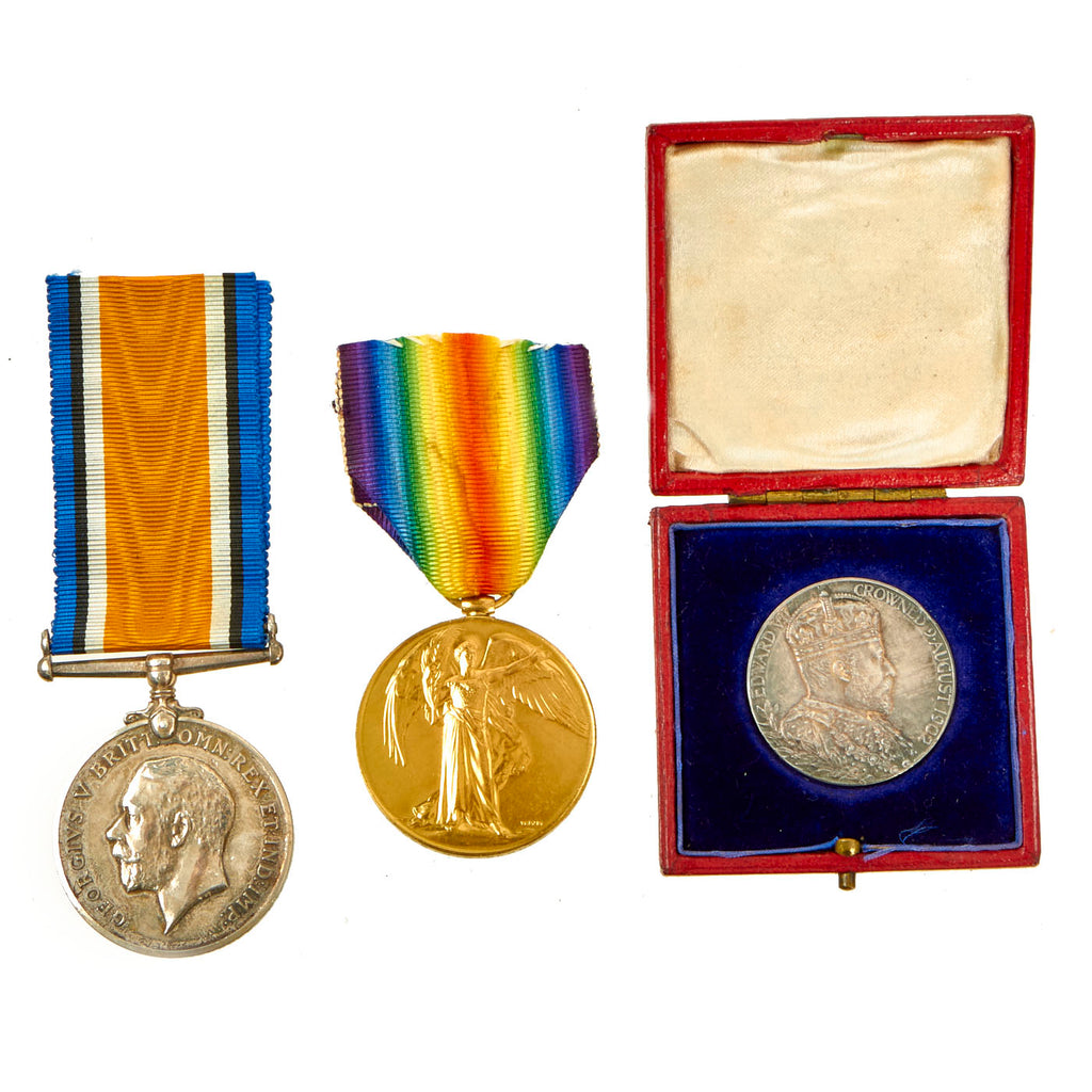Original Items: Only One Lot of 3 Available. Now this is a rare opportunity! There are 2 genuine British medals which happen to be engraved to the same soldier! The third item in this grouping is a gorgeous cased 1902 Coronation medal, a fantastic trio of items.