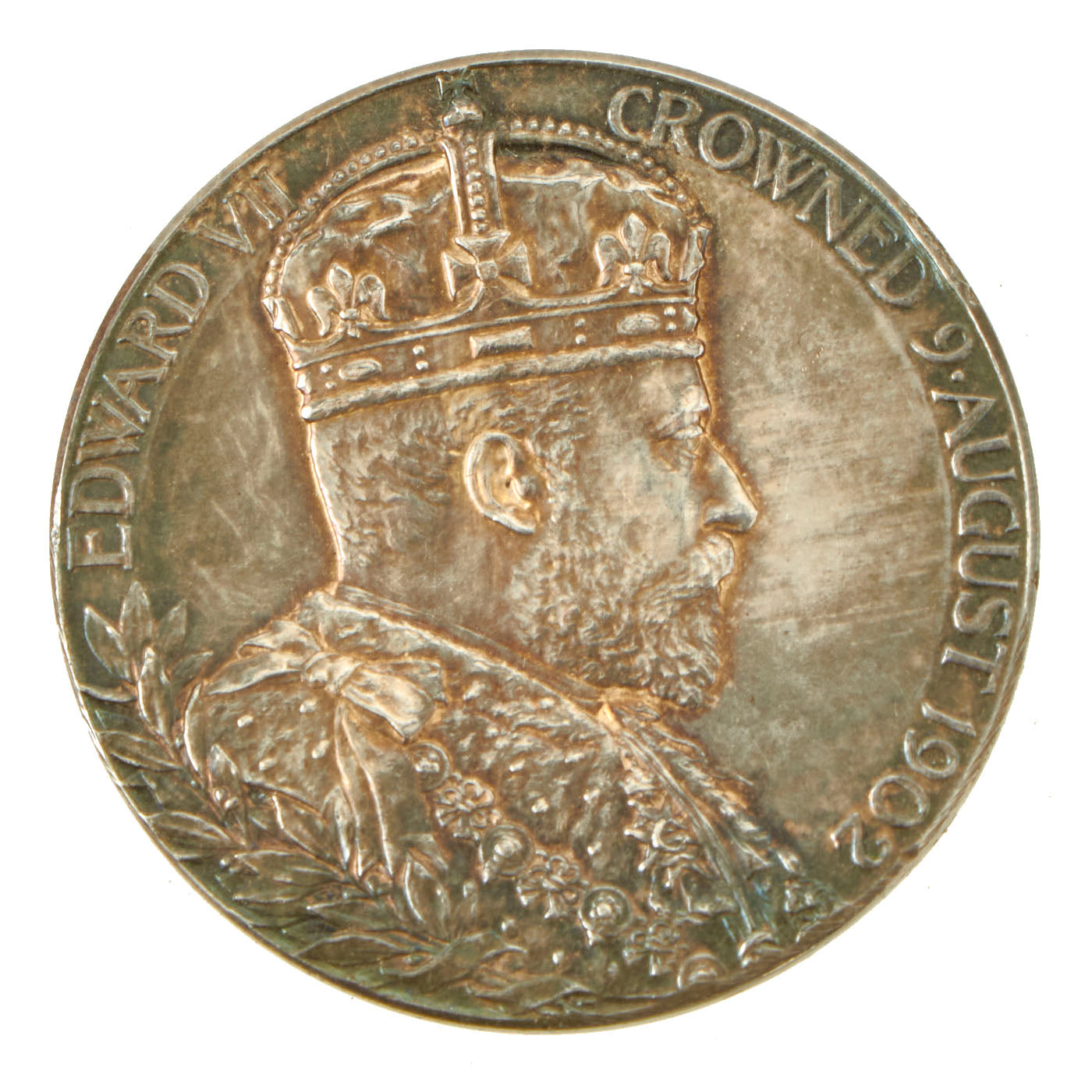 The third and final item in this grouping is the beautiful cased 1902 Coronation Medal. In 1901 Edward VII became king following the death of Queen Victoria. The king only reigned for nine years, in contrast to his mother who held the title of Britain's longest reigning monarch until Her Late Majesty The Queen surpassed the record in September 2015. Although Edward became king in 1901, his first coins weren't struck until 1902.