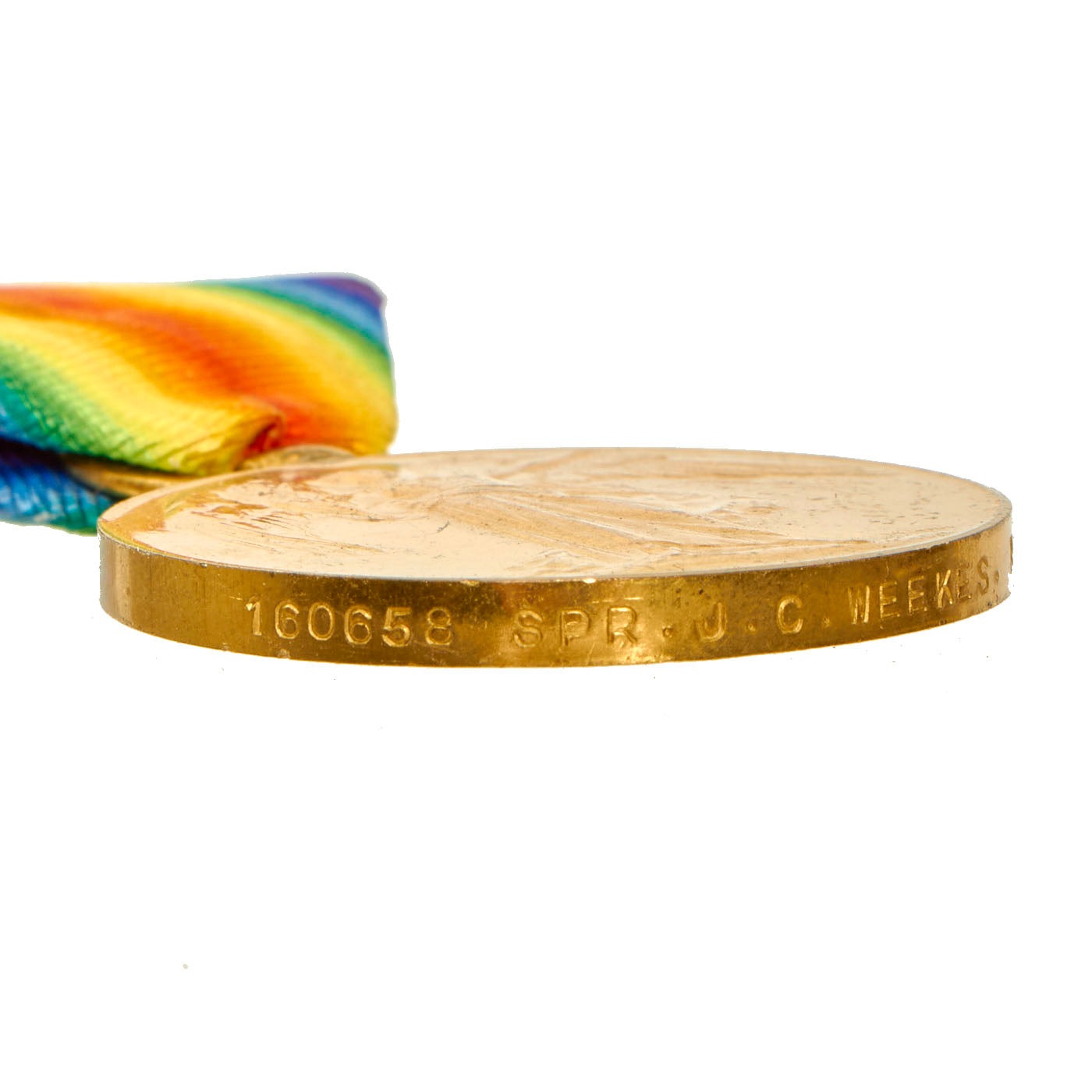 We have not been able to locate any service information for Sapper J. C. Weekes and we do know that he was Royal Engineers due to the rim engraving.
