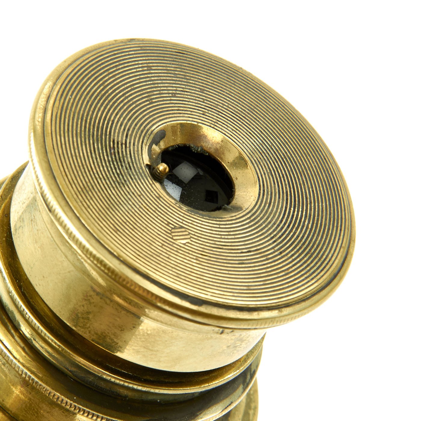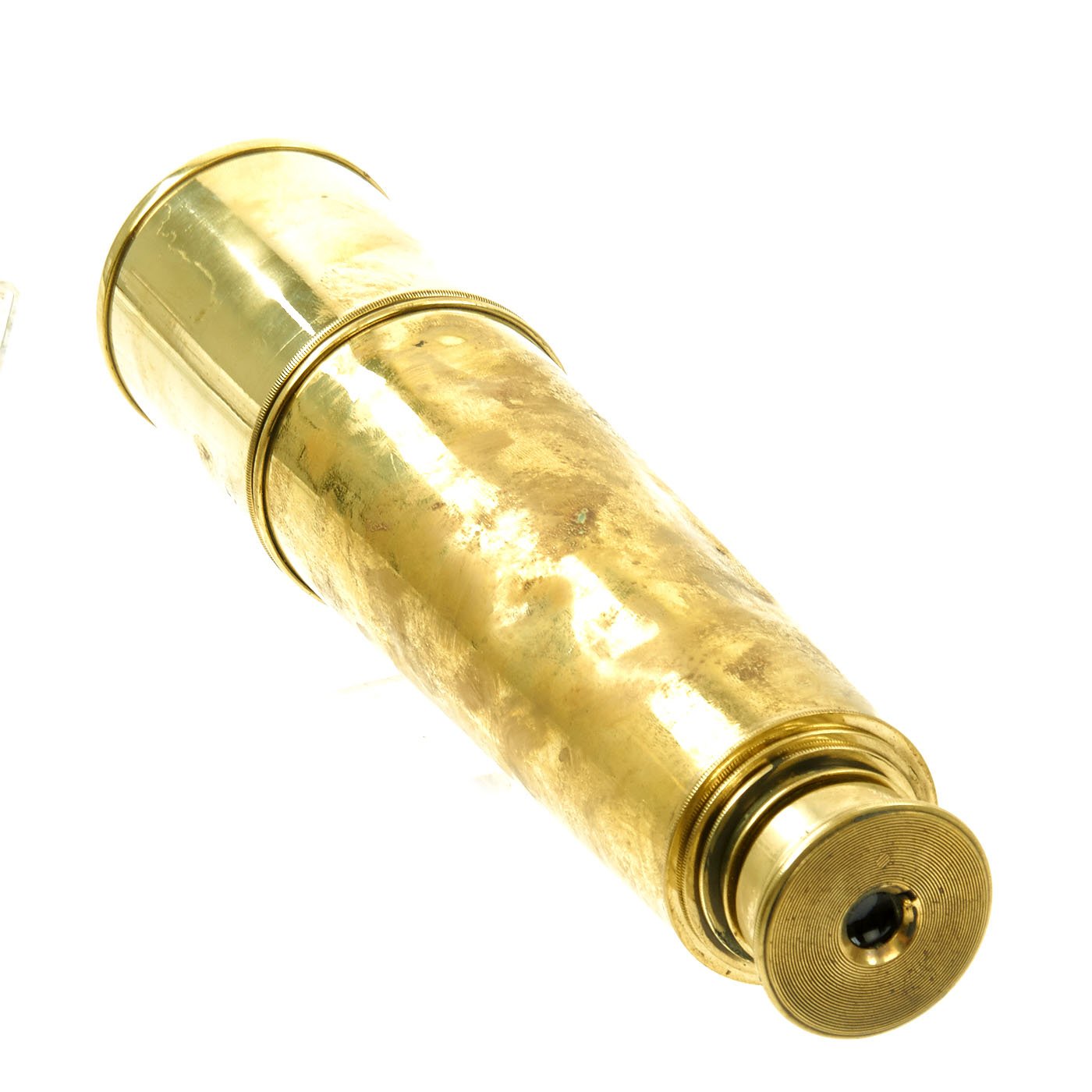 Original Item: One of a Kind. We received this out of long time storage in our large Optic's buy of 2017 in England. This is a very nice ALL BRASS four drawer telescope, which features an extending front sun shield and has a shutter on the eyepiece as well. It measures 10 1/2" closed and opens to 34 1/2" when fully extended with the sunshield. Appears to be good working order with nice optics. The innermost draw by the eyepiece is marked with ranges of 25 / 30 / 35 / 40.