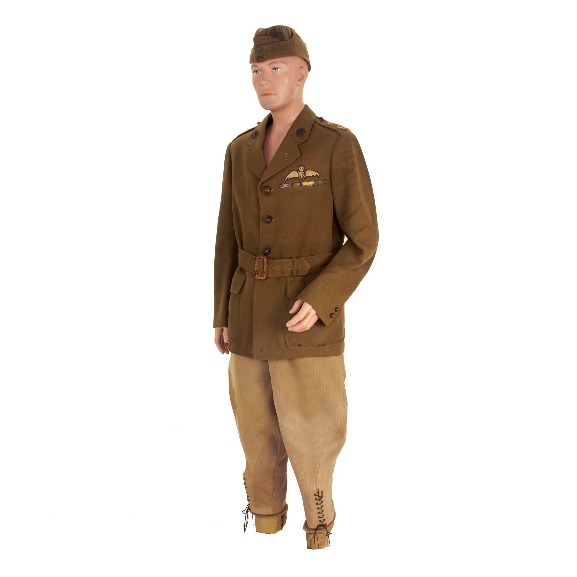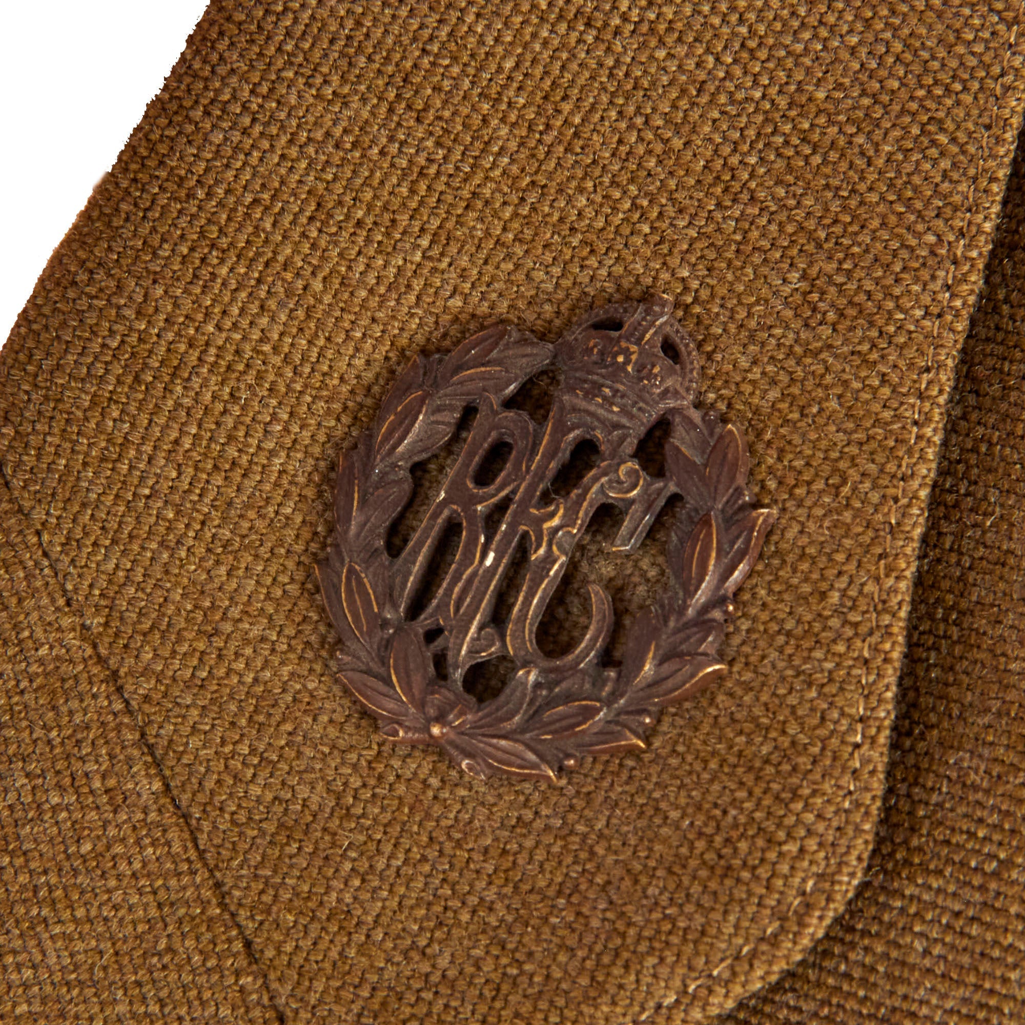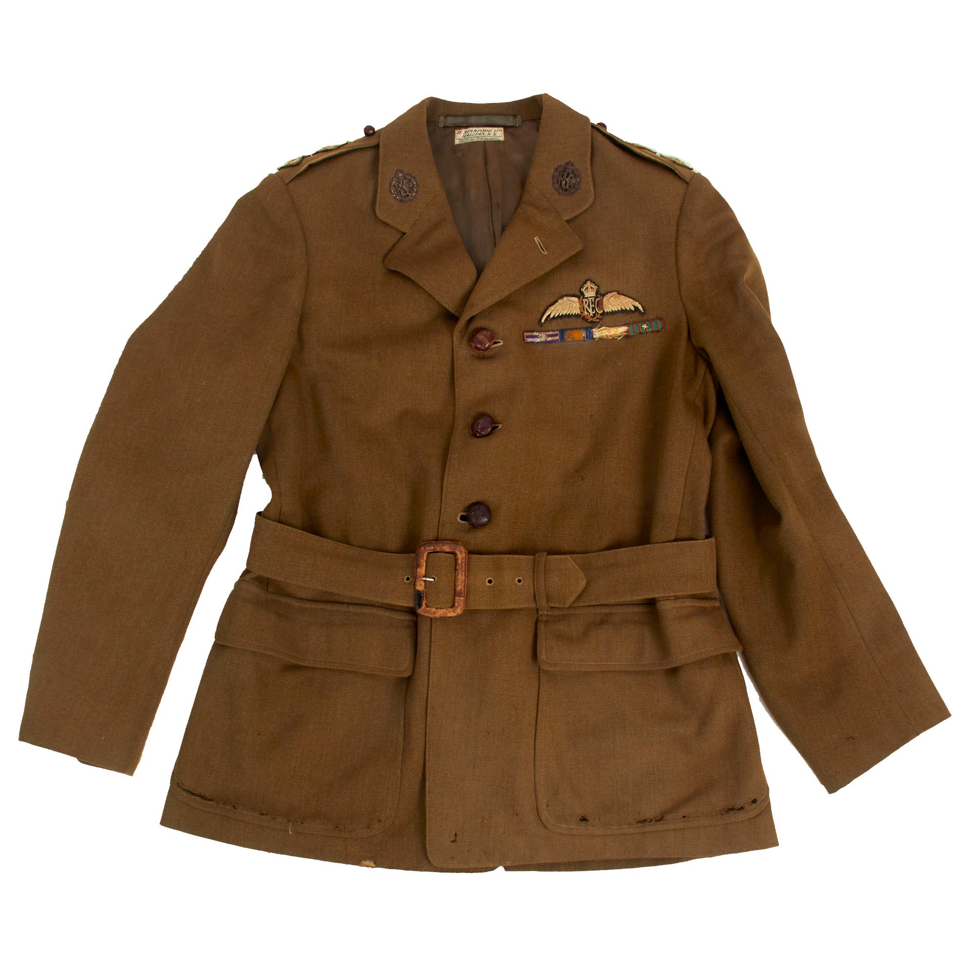 Original Items: Only One Set Available. This is a lovely dress style WWI era British Officers uniform set for the Royal Flying Corps. The Royal Flying Corps (RFC) was the air arm of the British Army before and during the First World War until it merged with the Royal Naval Air Service on 1 April 1918 to form the Royal Air Force. During the early part of the war, the RFC supported the British Army by artillery co-operation and photographic reconnaissance. This work gradually led RFC pilots into aerial battles with German pilots and later in the war included the strafing of enemy infantry and emplacements, the bombing of German military airfields and later the strategic bombing of German industrial and transport facilities.