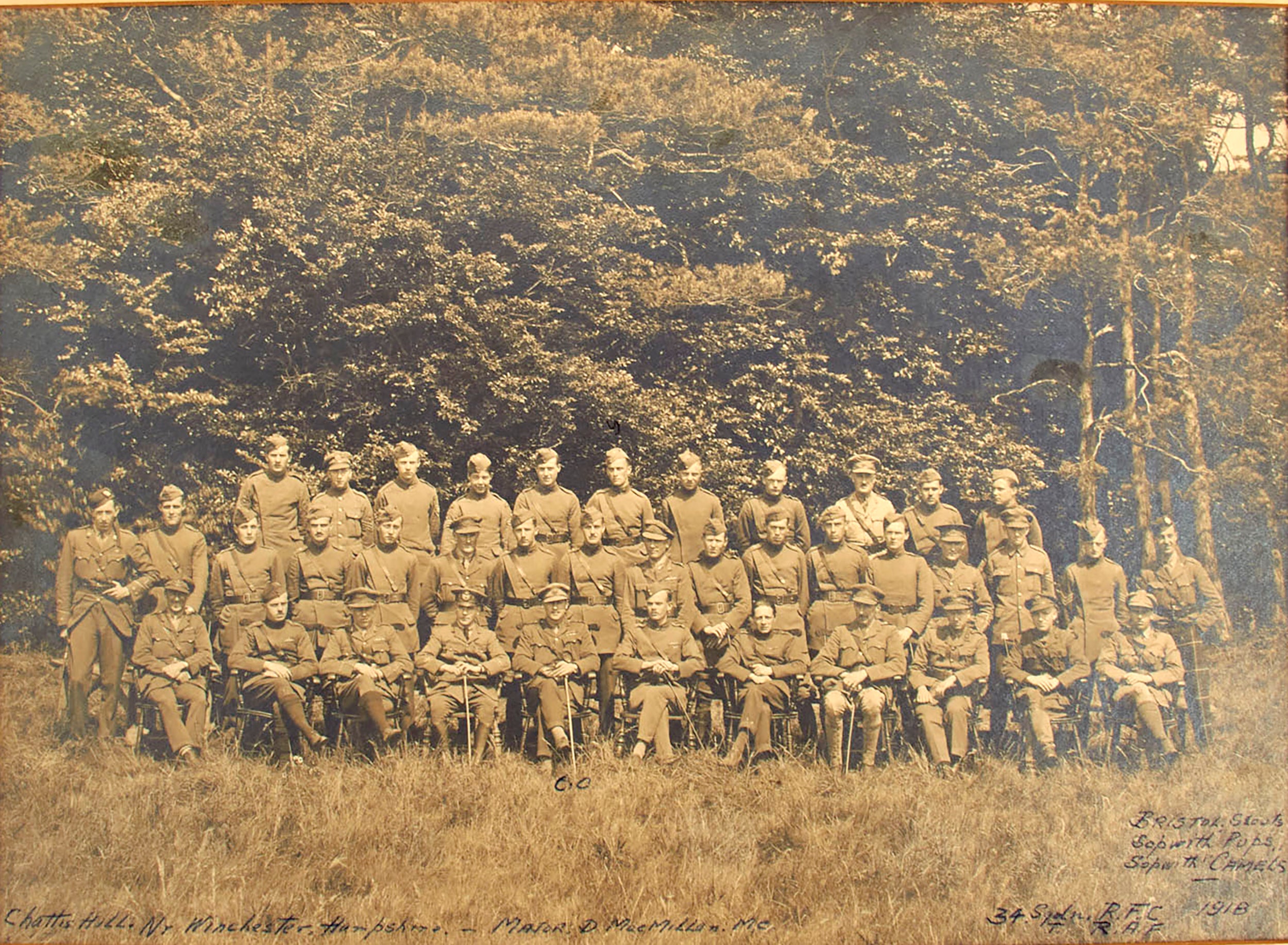 The picture that was paired with the uniform set is of the 34th Squadron RFC in 1918. The picture measures approximately 14” x 11” and is in wonderful condition. No. 34 Squadron RAF was a squadron of the Royal Air Force. During the First World War it operated as a reconnaissance and bomber squadron and in the 1930s operated light bombers. It was re-equipped with fighter-bombers in the later half of the Second World War and in the post-war period was reformed four times; first as a photo-reconnaissance unit, then anti-aircraft co-operation, then as a jet fighter squadron through the 1950s. It was last active in the 1960s, as a Blackburn Beverley transport squadron.