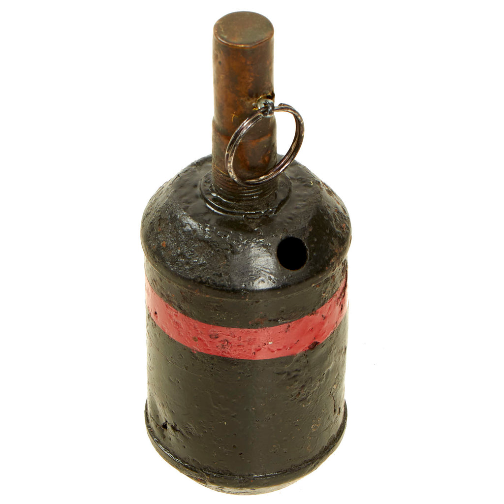This is grenade that is difficult to find in any condition, so to come across one that is intact is incredible, even if it was repainted. The pull pin is a replacement but does not subtract from the displayability of it!