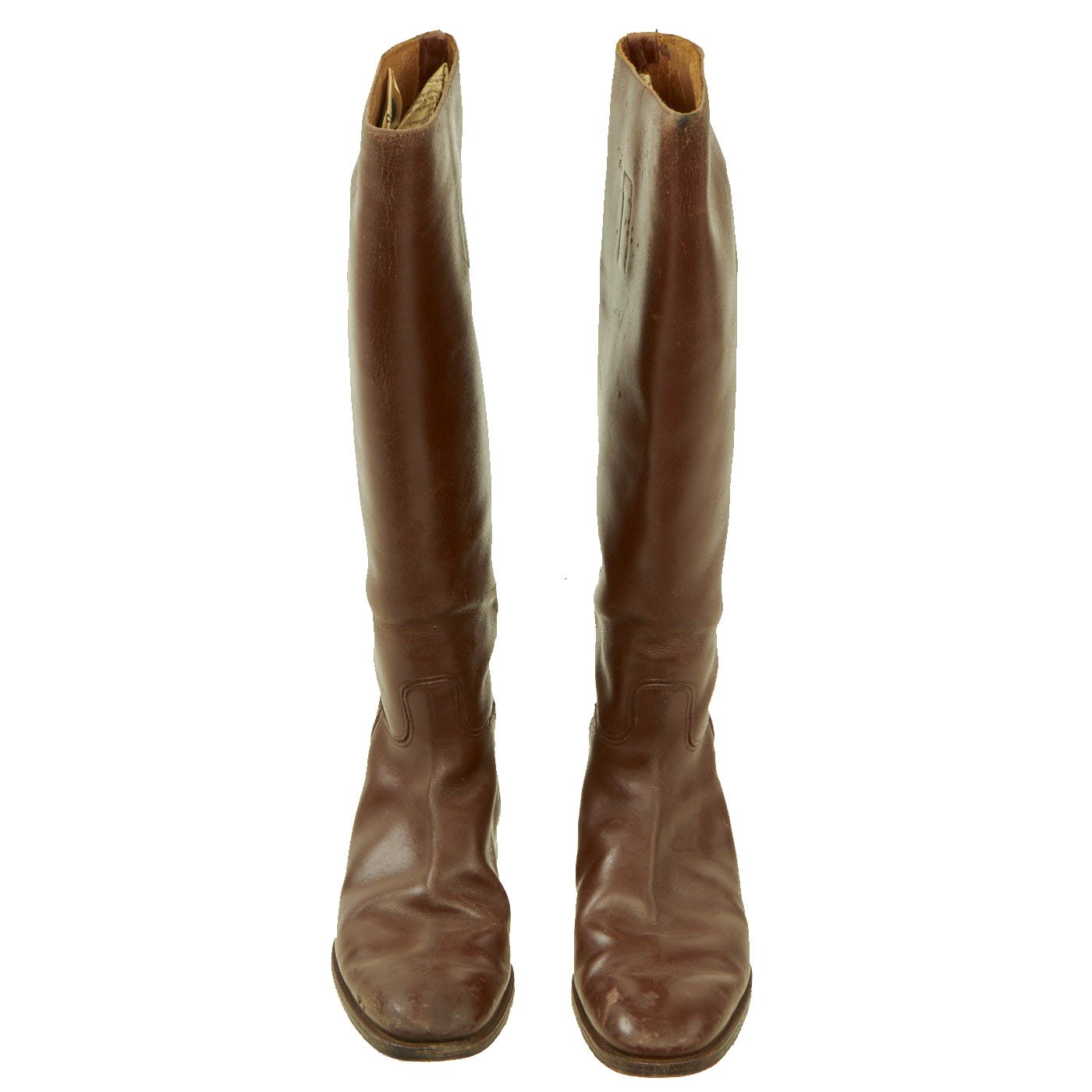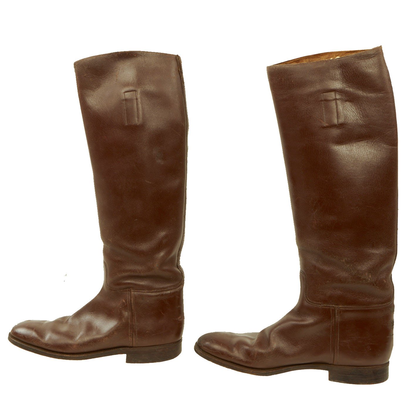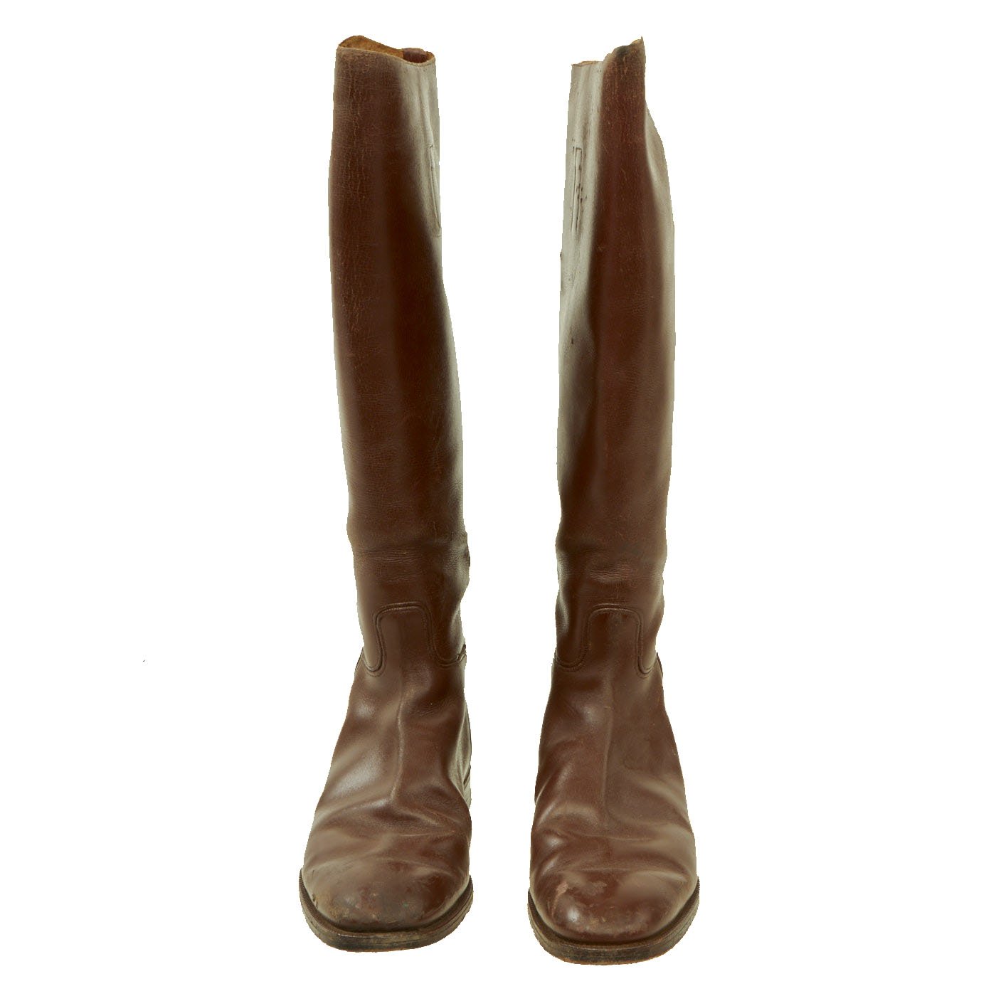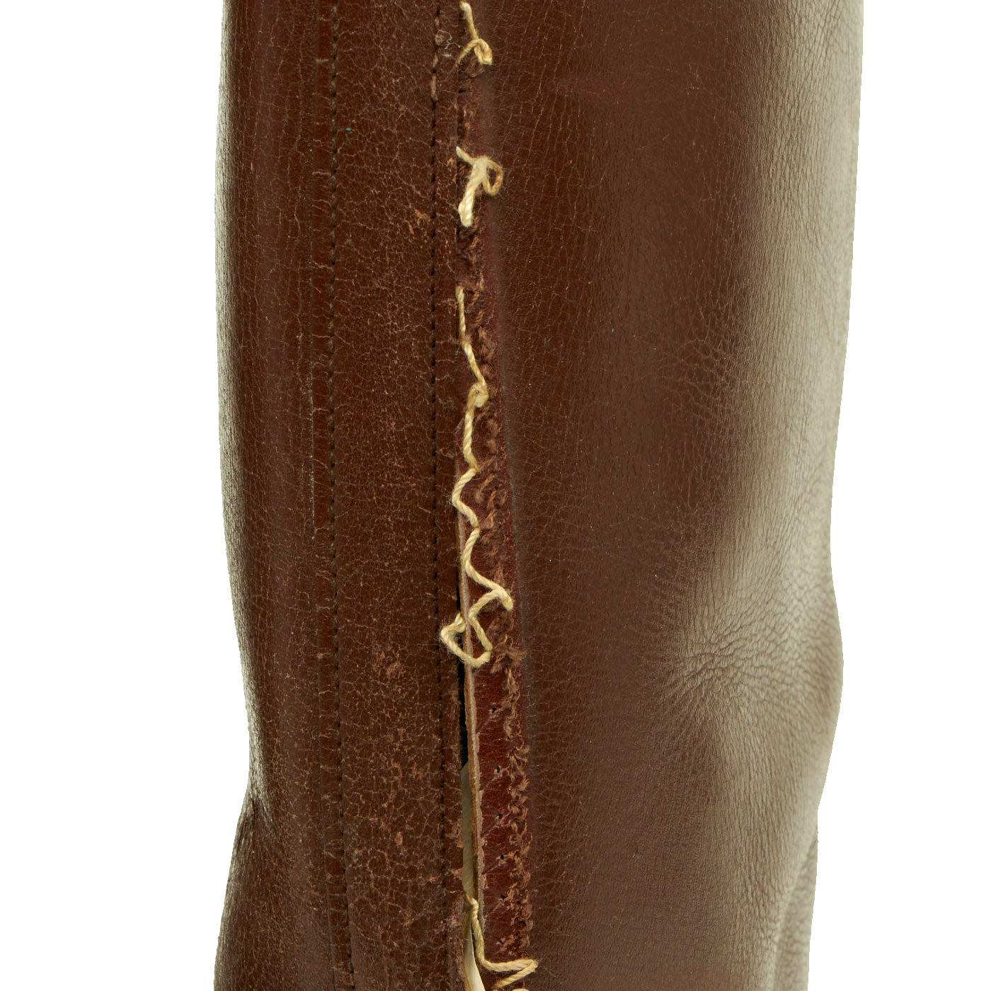 Original Items: Only One Set Available. This is a fine pair of World War One vintage high quality knee high boots in brown leather in size 10 1/2 UK manufactured by MANFIELD & SONS of LONDON - PARIS and BRUSSELS. The makers logo is embossed on the inside of both boots, and was originally gold, but that has mostly faded. There are further specifications written below the maker mark in ink.