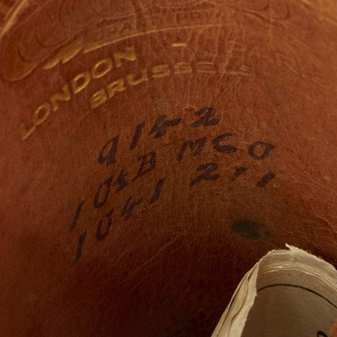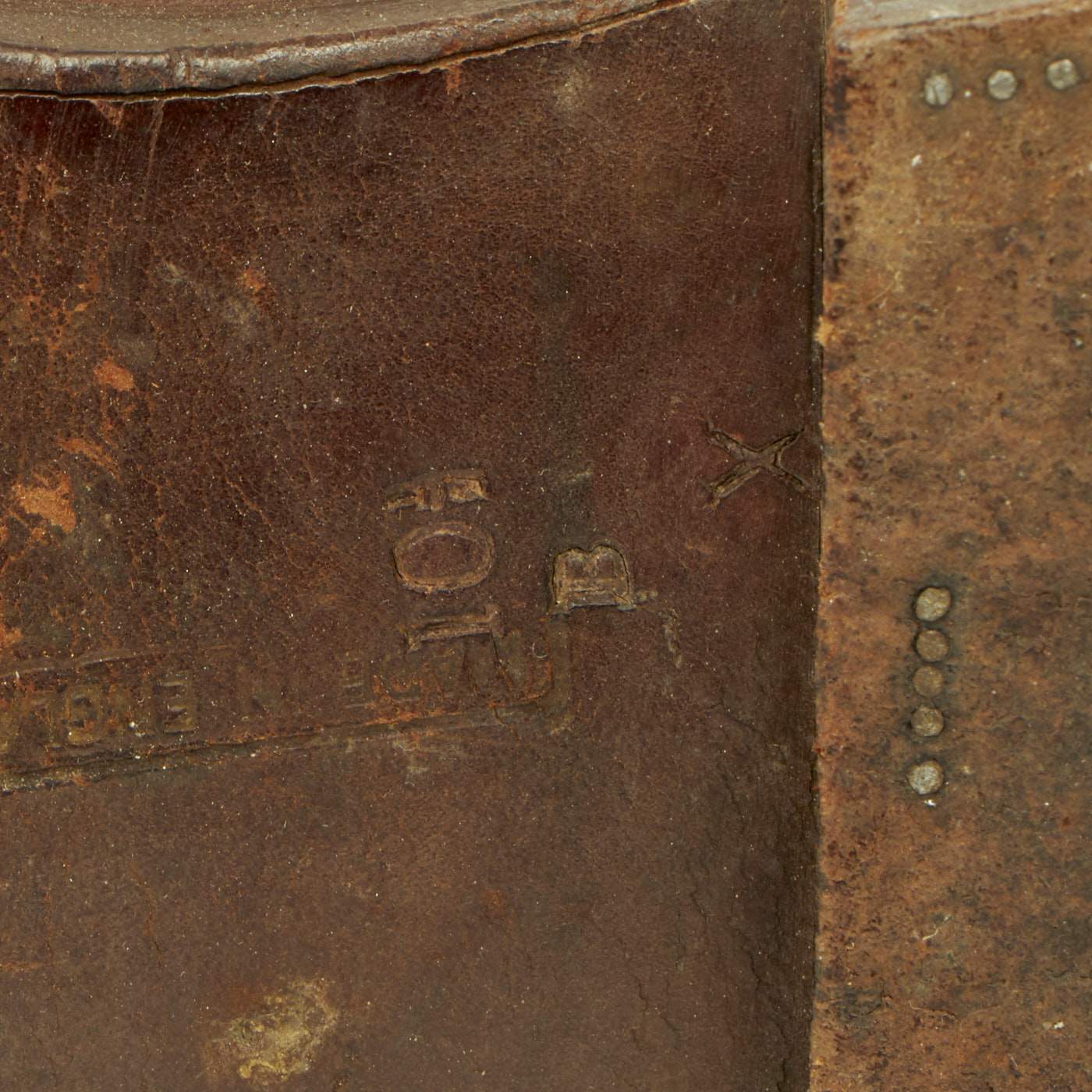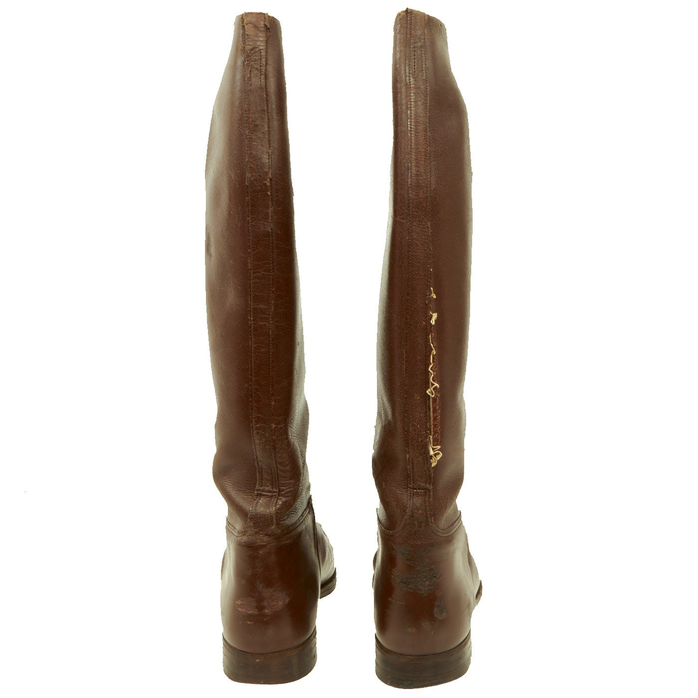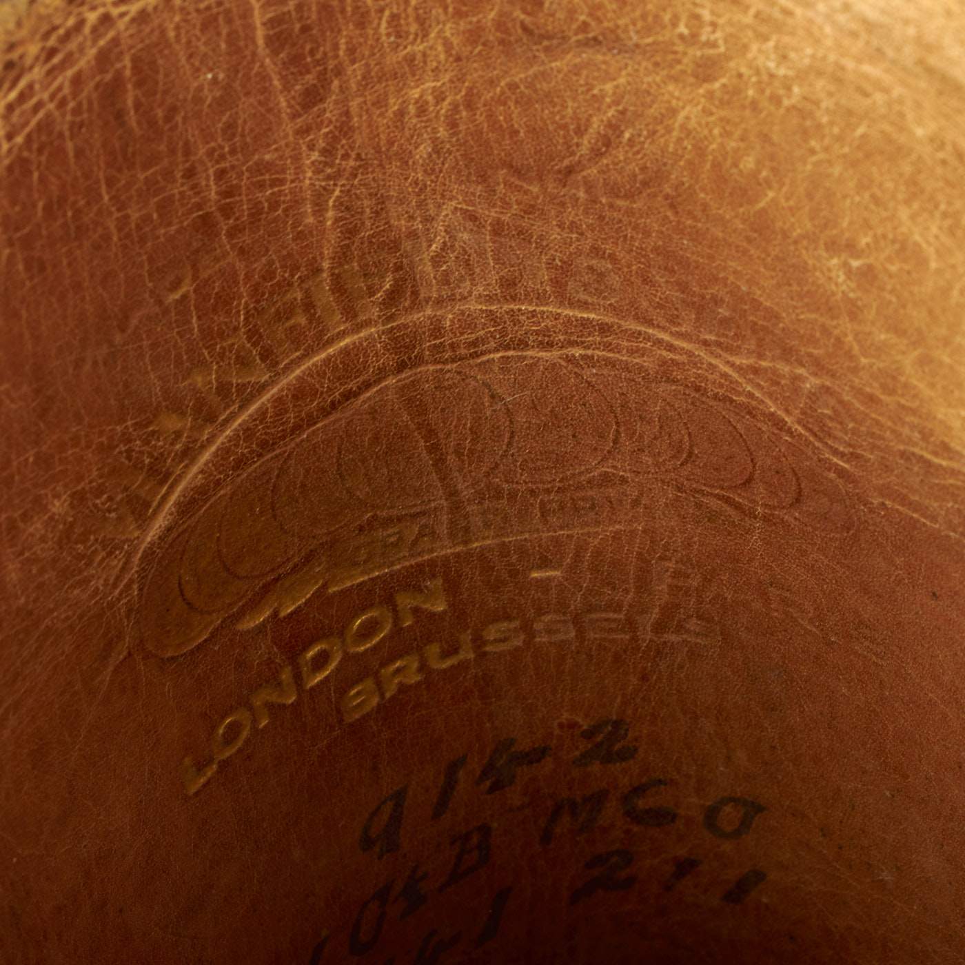 Original Items: Only One Set Available. This is a fine pair of World War One vintage high quality knee high boots in brown leather in size 10 1/2 UK manufactured by MANFIELD & SONS of LONDON - PARIS and BRUSSELS. The makers logo is embossed on the inside of both boots, and was originally gold, but that has mostly faded. There are further specifications written below the maker mark in ink.