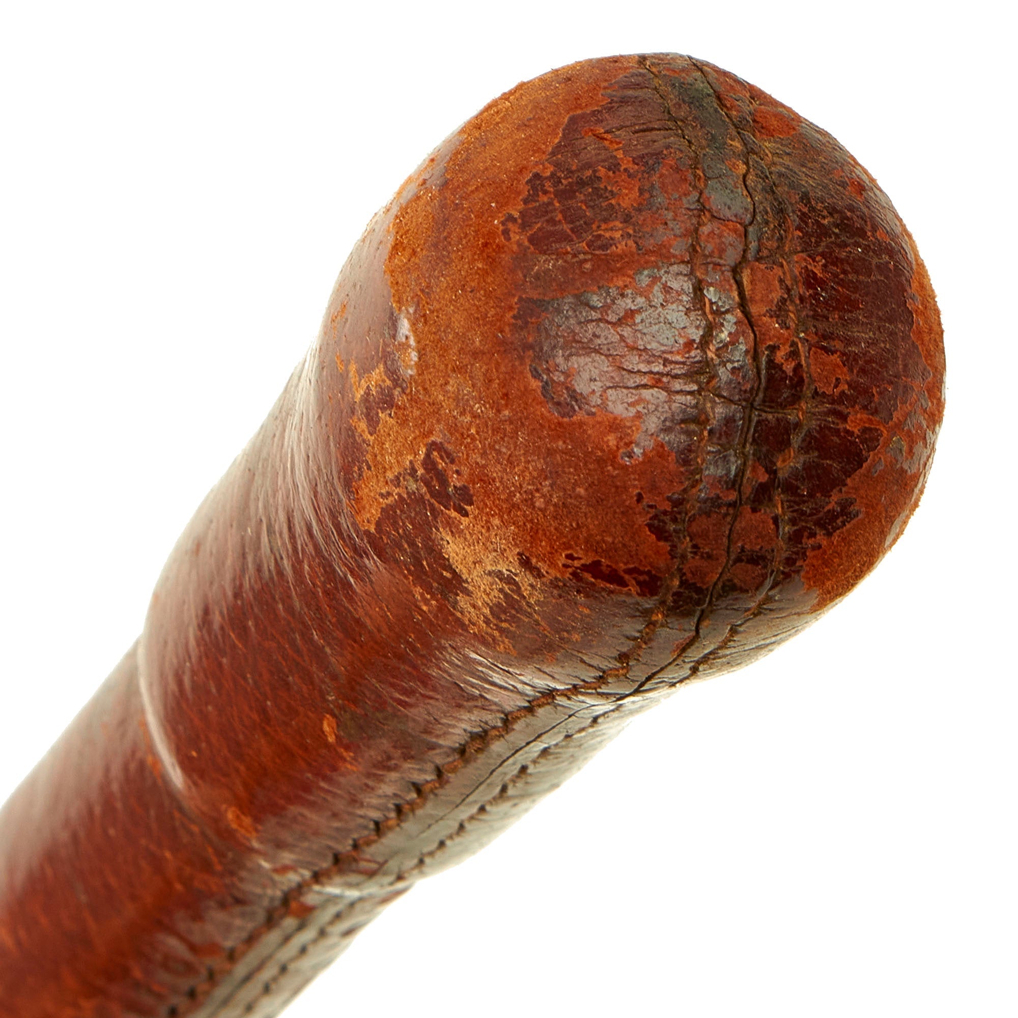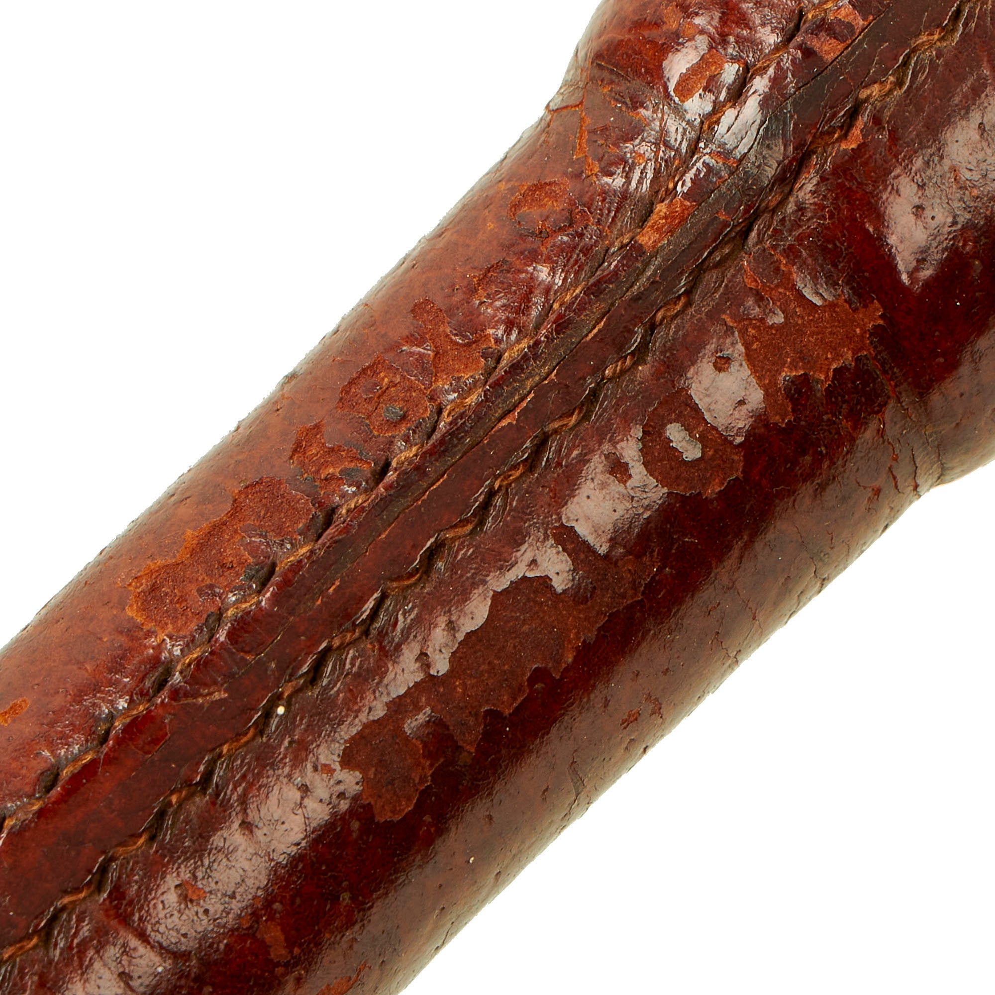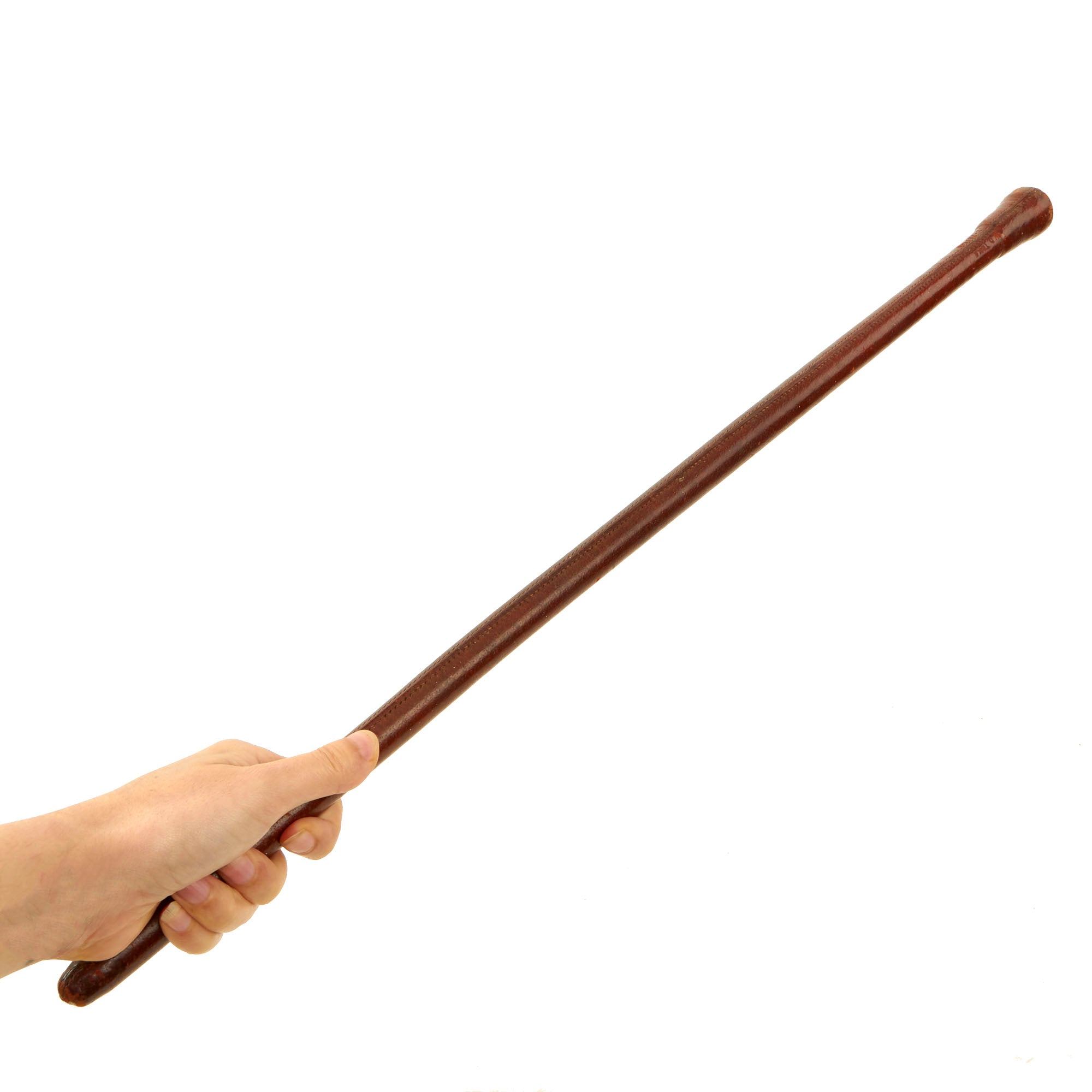 Original Item: Only one Available. This is a genuine early WW1 British Officer's leather covered Swagger stick carried by the upper crust of the Officer Corp. These were introduced late in WW1 to replace officer's carrying the metal topped cane Regimental sticks. It is a fact that common even soldiers were issued cane swagger sticks when going on leave in WW1, so that they had something to occupy their hands. Early in the war delicate old ladies had bitterly complained that Tommies were often seen on Rail Road either "picking their noses or scratching their privates". The result from an outraged War Office was to give the officers something else to carry around with them.