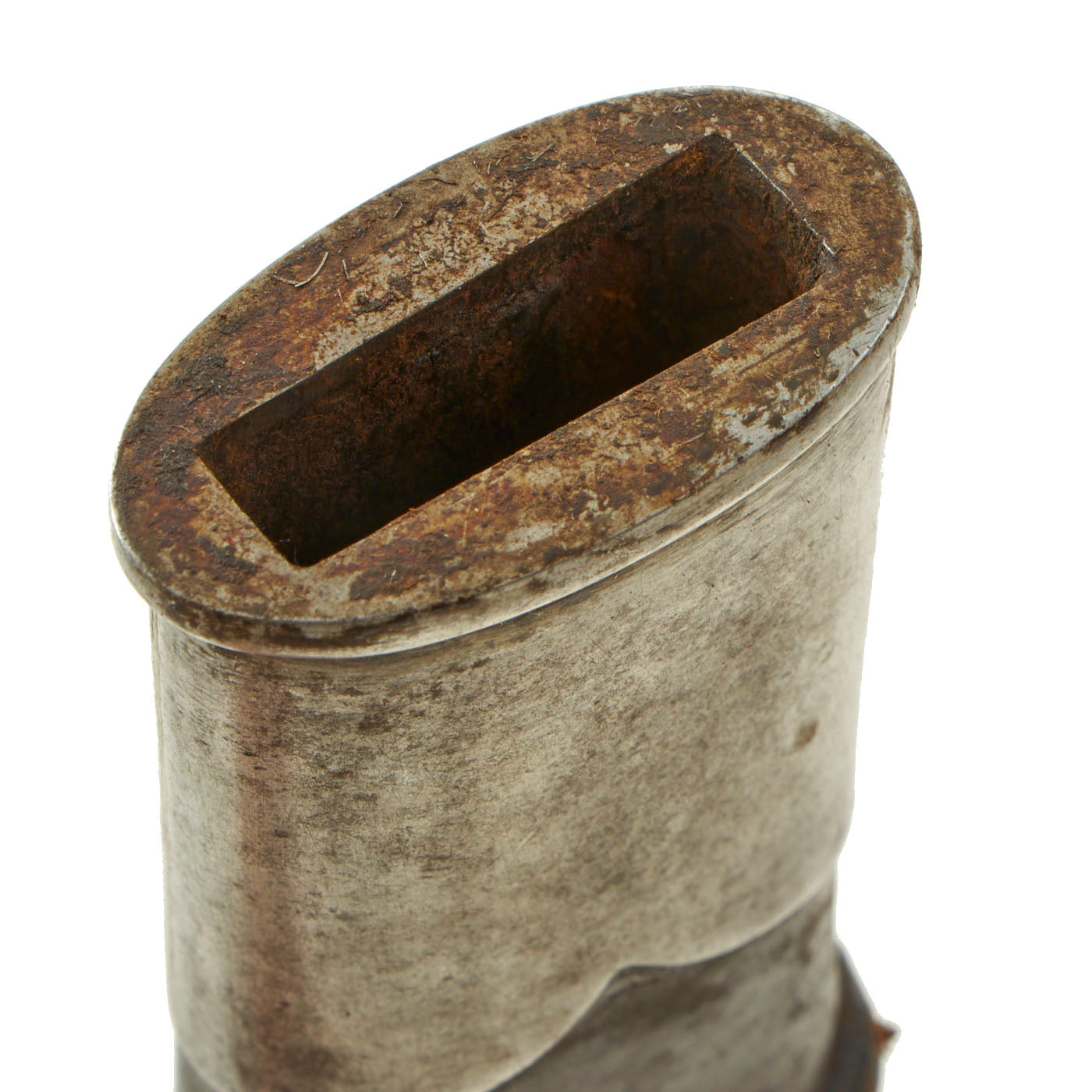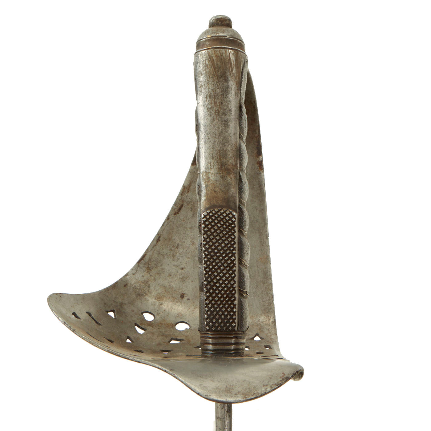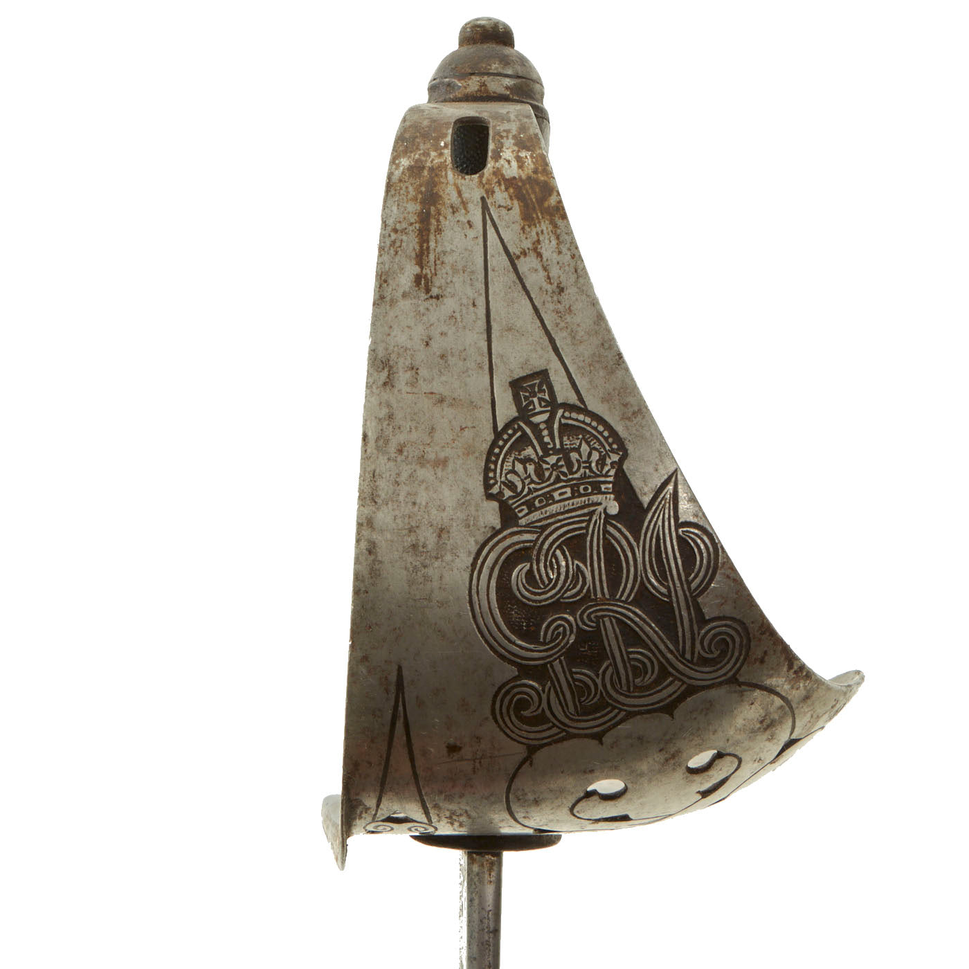 The steel hilt guard bears a Royal Cypher of King George V, showing intertwined GRI standing for Georgivs Rex Imperator. These swords were almost certainly carried by British Officers leading Gurkha troops in World War One. Each sword was originally issued with two scabbards, one all steel that was sometimes even nickel plated for parade use as well as a steel mounted dark leather scabbard referred to as a field scabbard that was intended for use in battle. Only a field scabbard is included with the purchase of this sword.