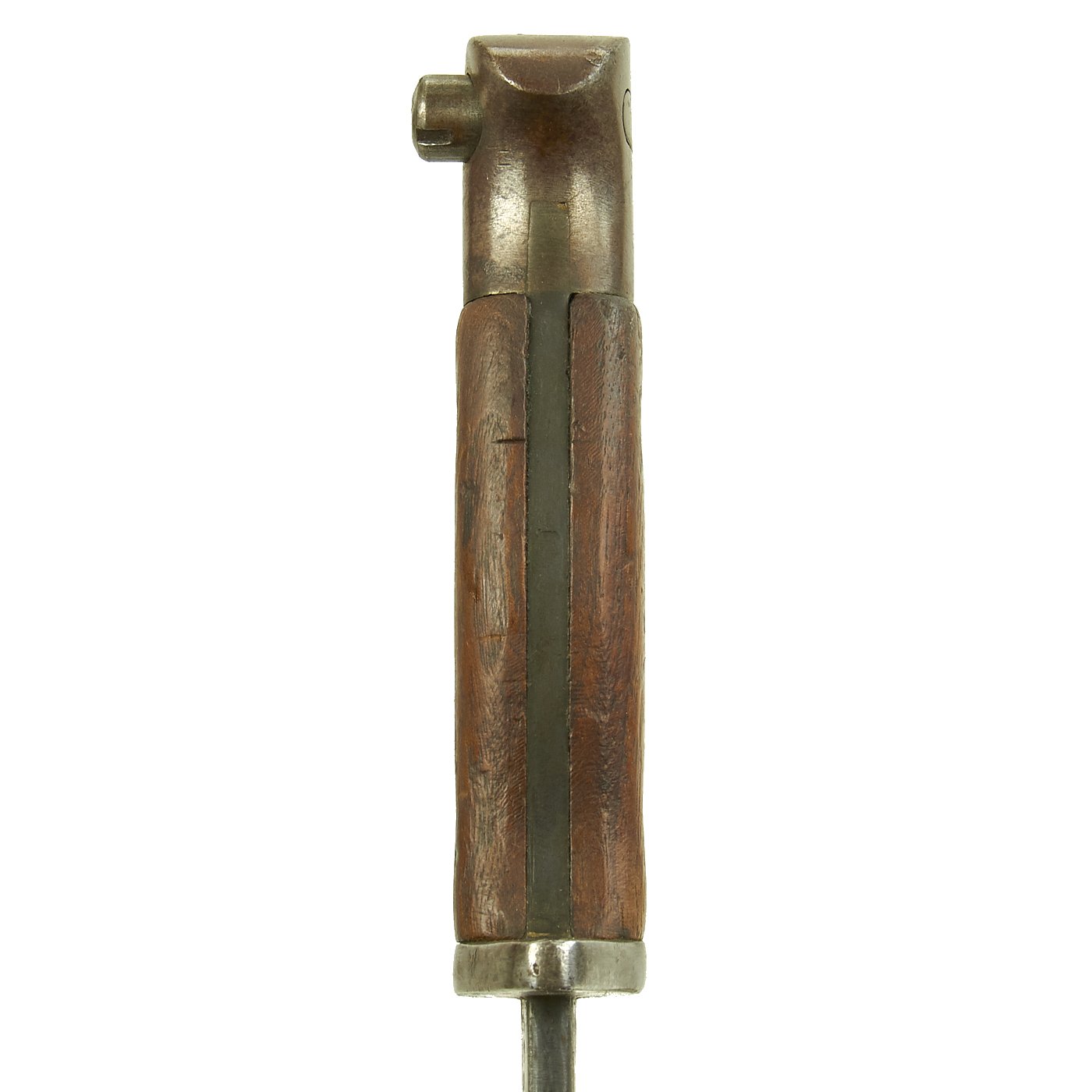 In it's original form, the P-1907 had a hooked guard (quillon), which was then removed from the pattern in early WWI due to the questionable use and increased production time. Unlike the 1903, the 1907 had a single edged blade that was less wide, but made of thicker stock.