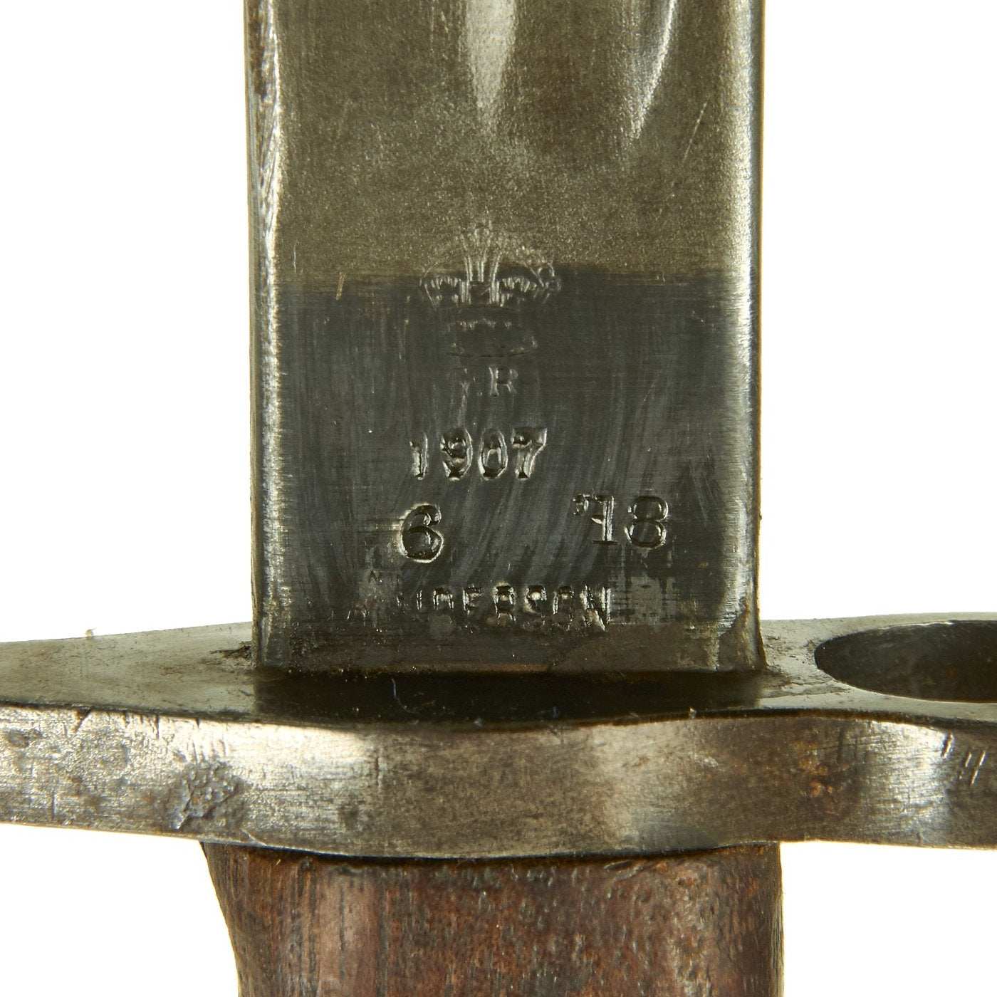 Original Item: Only One Available. This is a standard British WWI P-1907 bayonet, which is marked SANDERSON on the ricasso, together with the correct King's Crown G.R. over 1907, together with all the usual acceptance marks and proofs. The bayonet is also stamped 6 and '18, indicating manufacture in June of 1918. This bayonet probably was issued during WWI to British forces.