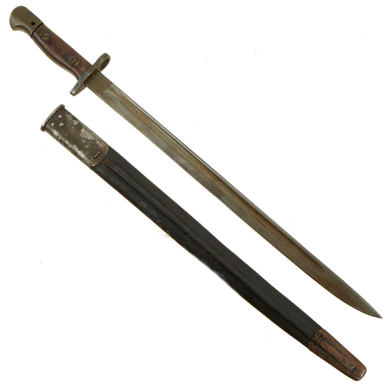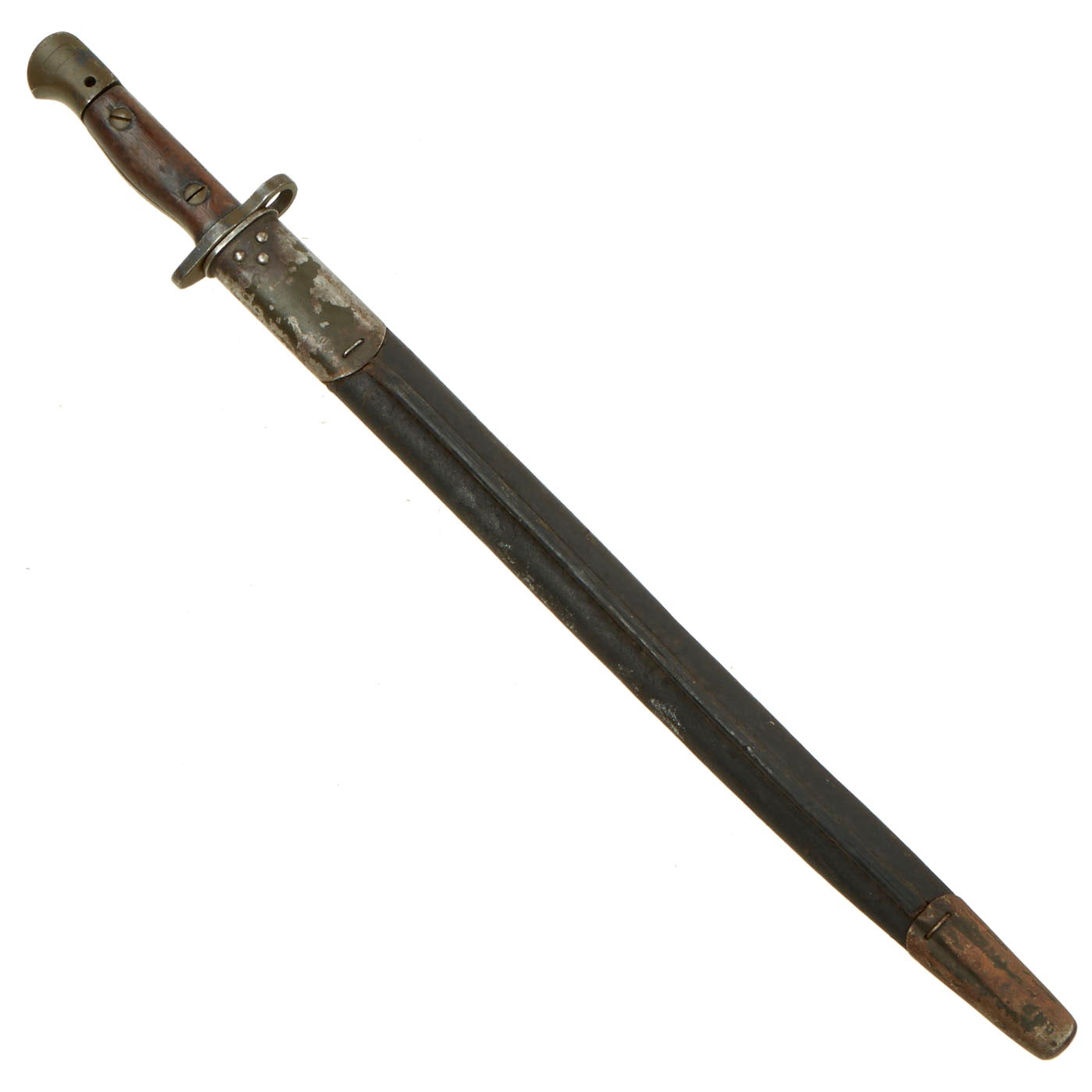 Original Item: Only One Available. The British "Pattern of 1907" Bayonet was developed for the No.1 MkIII Enfield rifle, often called the SHT.LE, SMLE, S.M.L.E., "Smelly" etc. The P-1907 replaced the earlier P-1903 bayonet, which was a double edged bayonet based on the P-1888 bayonet of the Lee-Metford rifle. The P-1903 had been developed for the "Long" Magazine Lee-Enfield, which was 49.6 inches in overall length. With the introduction of the Short Magazine Lee-Enfield in 1904, the 12 inch bayonet was no longer considered long enough for the 44.6 inch SMLE, so the 17 inch bladed 1907 was developed.