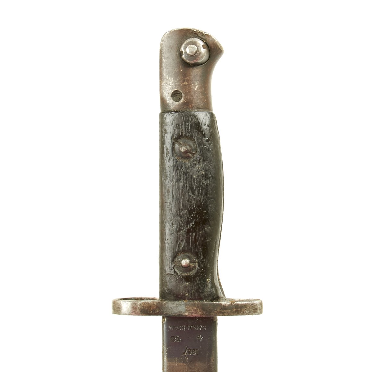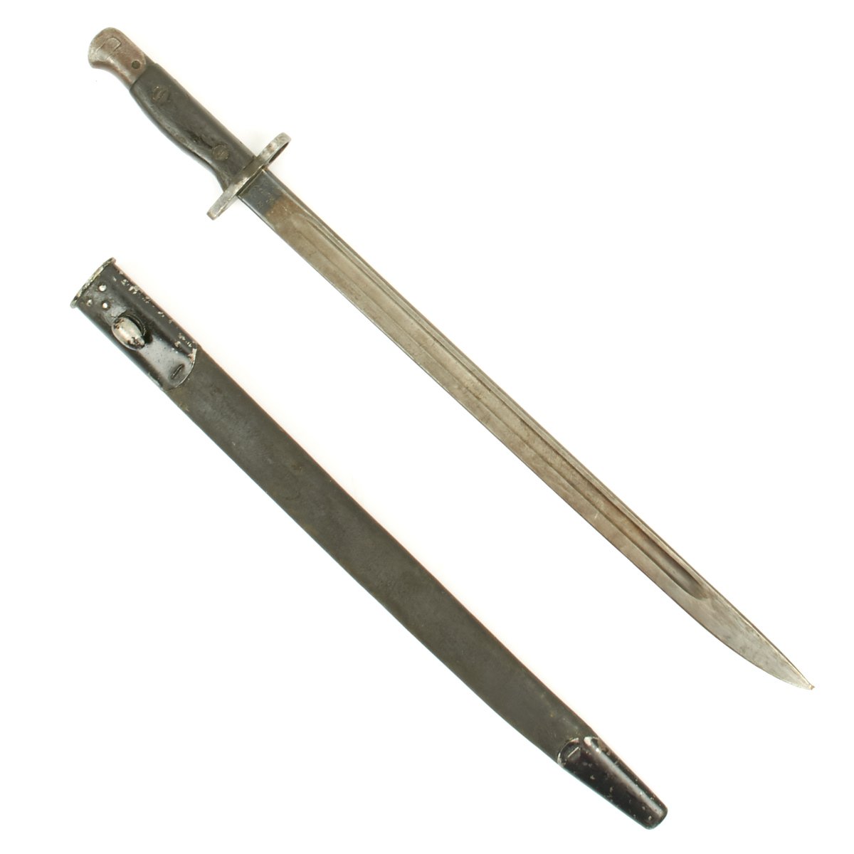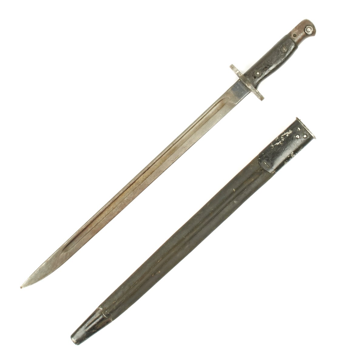 Original Item: Few Available. IMA has received a small delivery of these hard to find British WW1 P-1907 Bayonets for the No.1 MkIII Enfield rifle, often called the SHT.LE, SMLE, S.M.L.E., "Smelly" etc. The P-1907 replaced the earlier P-1903 bayonet, which was a double edged bayonet based on the P-1888 bayonet of the Lee-Metford rifle. The P-1903 had been developed for the "Long" Magazine Lee-Enfield, which was 49.6 inches in overall length. With the introduction of the Short Magazine Lee-Enfield in 1904, the 12 inch bayonet was no longer considered long enough for the 44.6 inch SMLE, so the 17 inch bladed 1907 was developed.