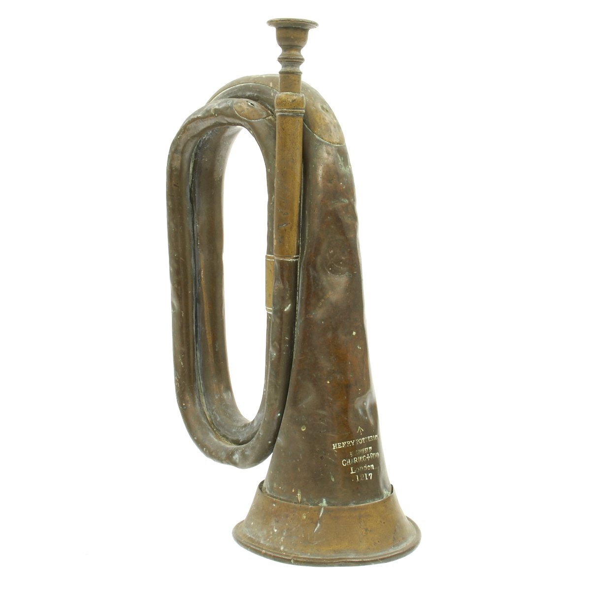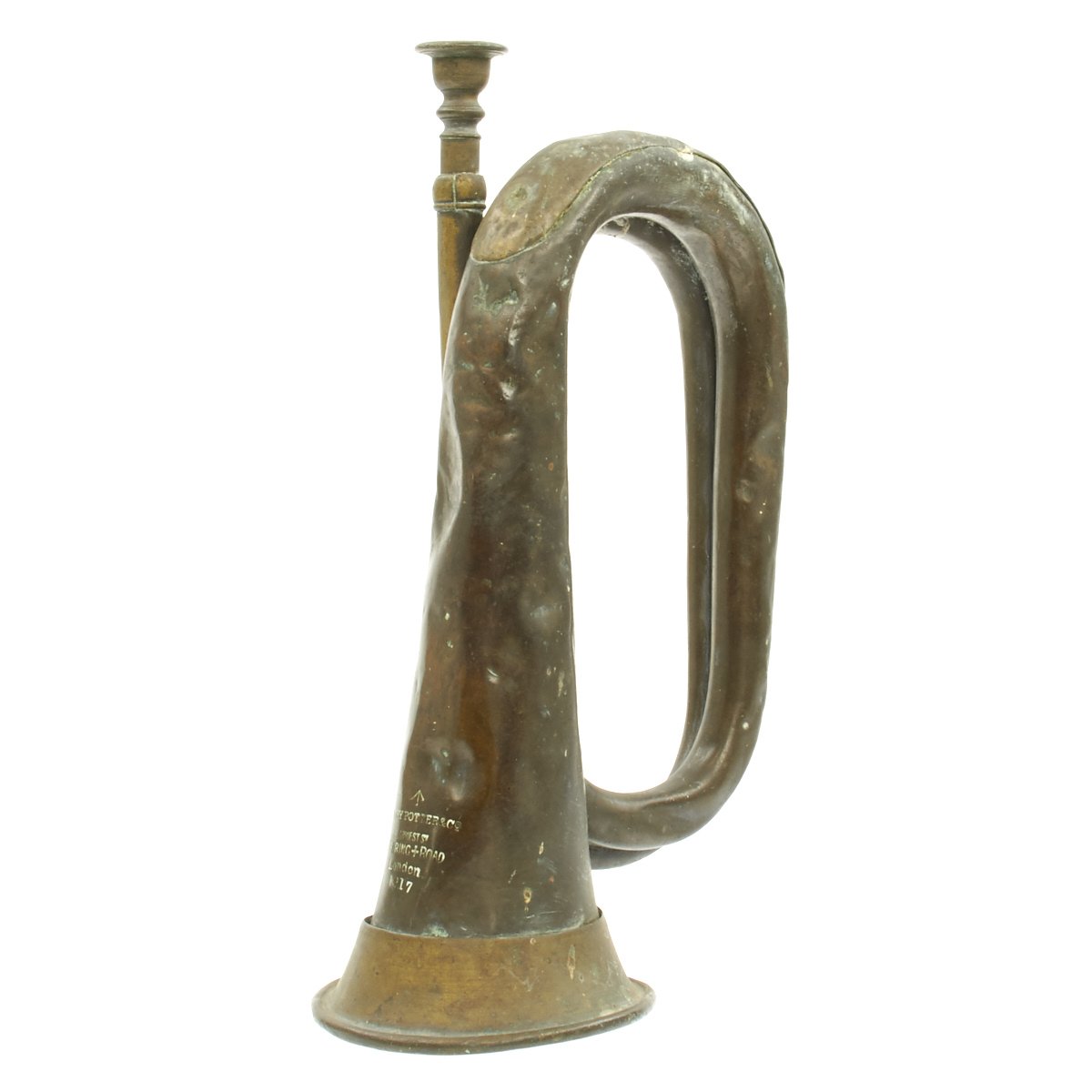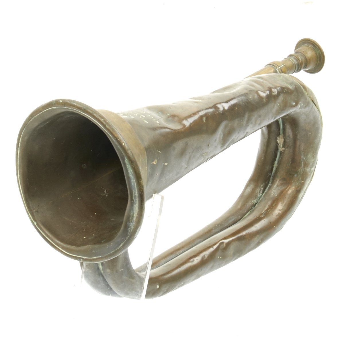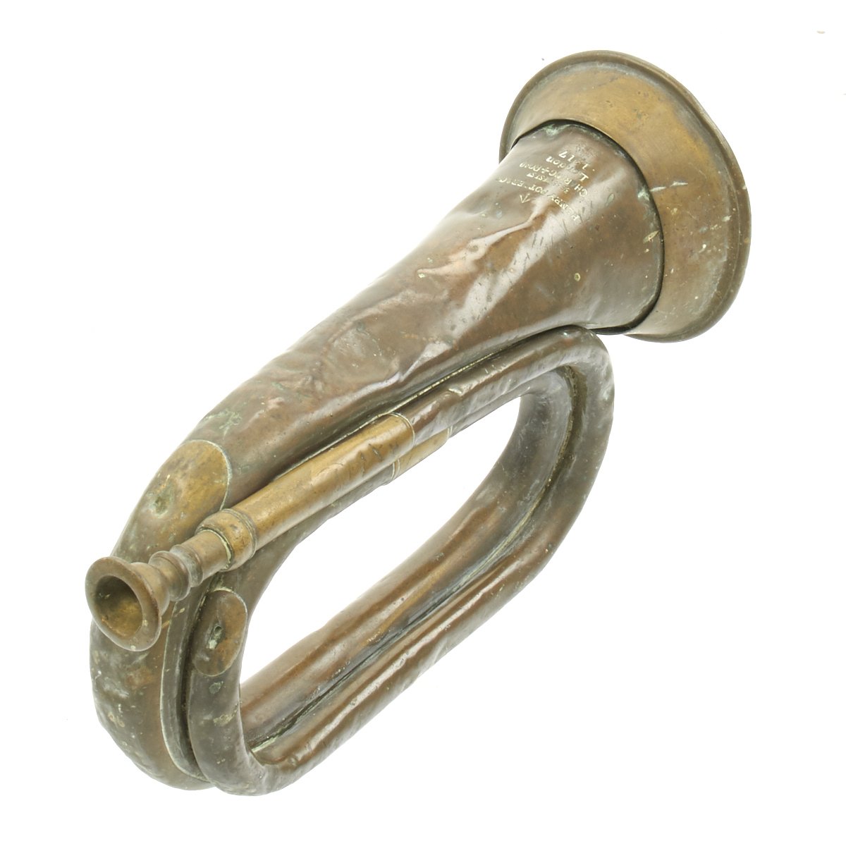 Here is a Regimental Bugle, of perfectly standard brass and copper construction made and marked by the maker on the bell with their name, address, and the date of manufacture: